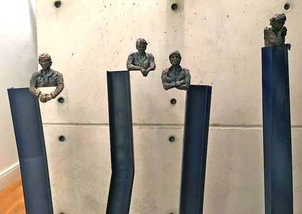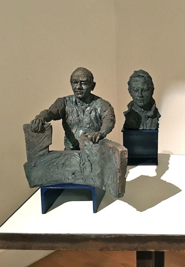 L’exposition présente également des pièces de la série Hommes d’équipage (ci-dessous), modelées durant une résidence de 90 jours sur le porte- conteneur Fort St Pierre, en 2012.