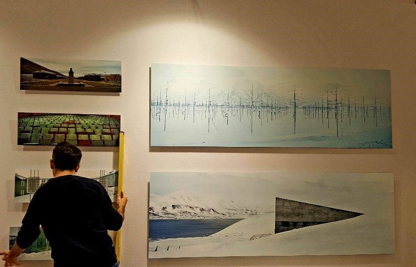 Accrochage des tirages des photographies de Gina Soden (Salon Fotofever 2016).