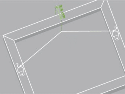 Si votre œuvre est pourvue d’un fil de fer tendu entre deux crochets, mettez-le en tension pour pouvoir calculer la bonne longueur. Pour les autres systèmes d’accrochage, mesurez simplement la distance depuis celui-ci jusqu’au haut du tableau.