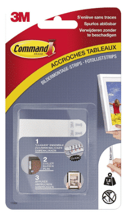Conseil : Choisissez des bandes d’accroches supportant le poids de votre tableau ! Celles-ci peuvent supporter entre 1kg et 7.5kg selon les modèles.