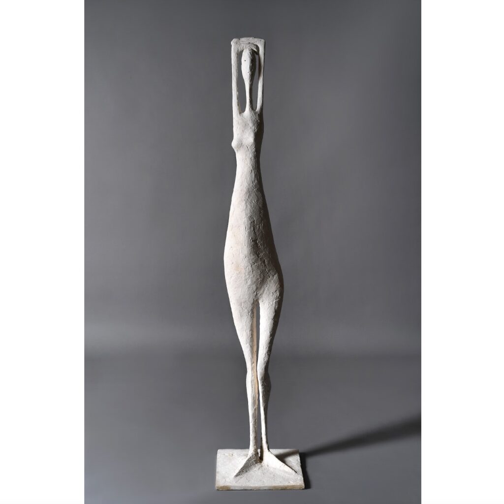 L’œuvre, une figure en plâtre représentant une femme aux bras levés, est à découvrir jusqu’au 7 janvier prochain au siège parisien de l’institution dans le cadre de l’exposition « Les Aliénés du Mobilier national ».