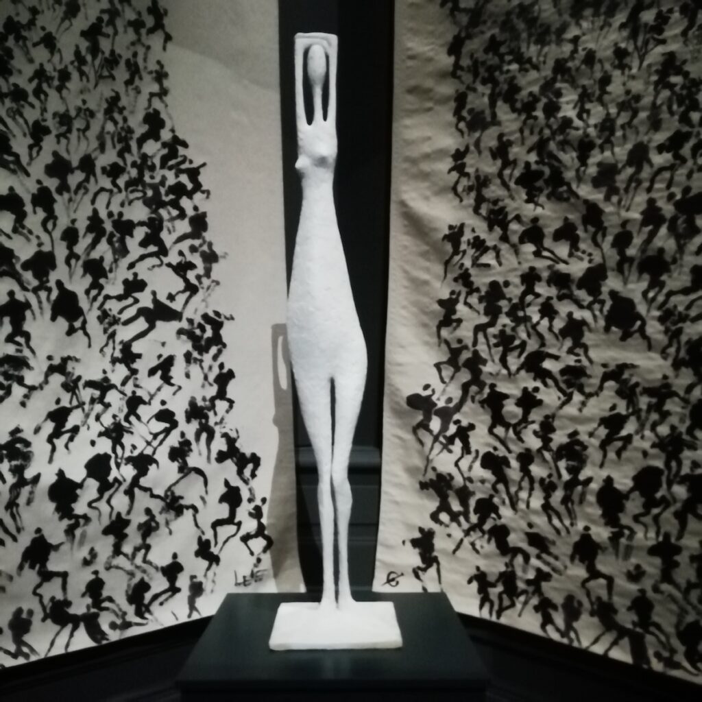 Pierre Yermia : Figure aux bras levés. Sculpture en plâtre, 150 x 30 x 30 cm. Photo : Isabelle Bideau.