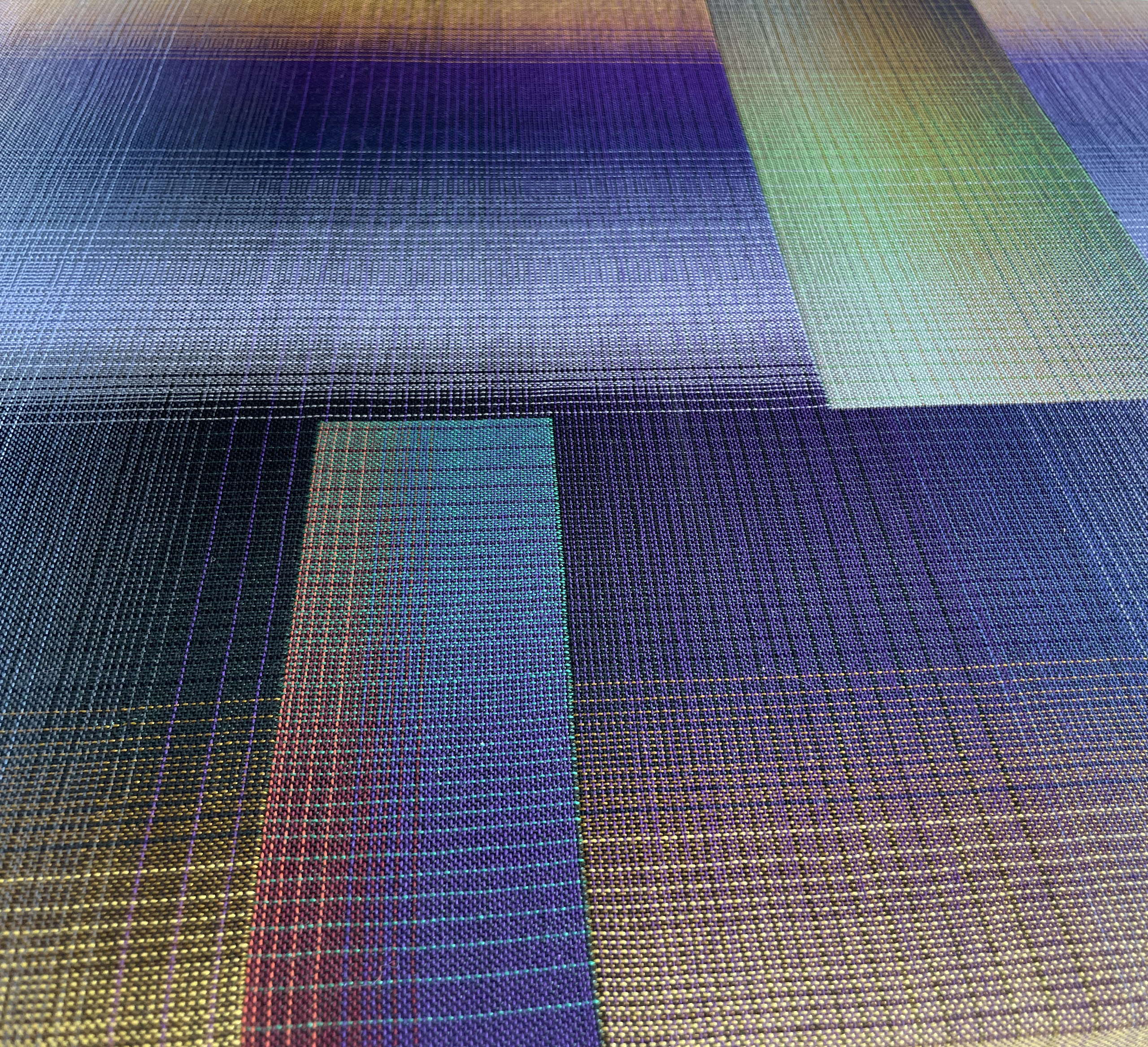 Les œuvres de Christiane Maurer, tissées à la main à l’aide d’un métier à tisser, explorent les interactions, les transitions et les combinaisons de couleurs. Le langage choisi est celui de l’abstraction : des motifs géométriques simples sont employés pour faire se croiser des lignes de différentes couleurs. Chaque série de l’artiste explore une combinaison de couleurs et de motifs différente, dans une recherche en constante évolution. Ses œuvres, aux tonalités chromatiques très vives ou plus délicates, révèlent des nuances changeantes et de subtiles iridescences en fonction de la lumière de leur environnement ou du mouvement de l’observateur.