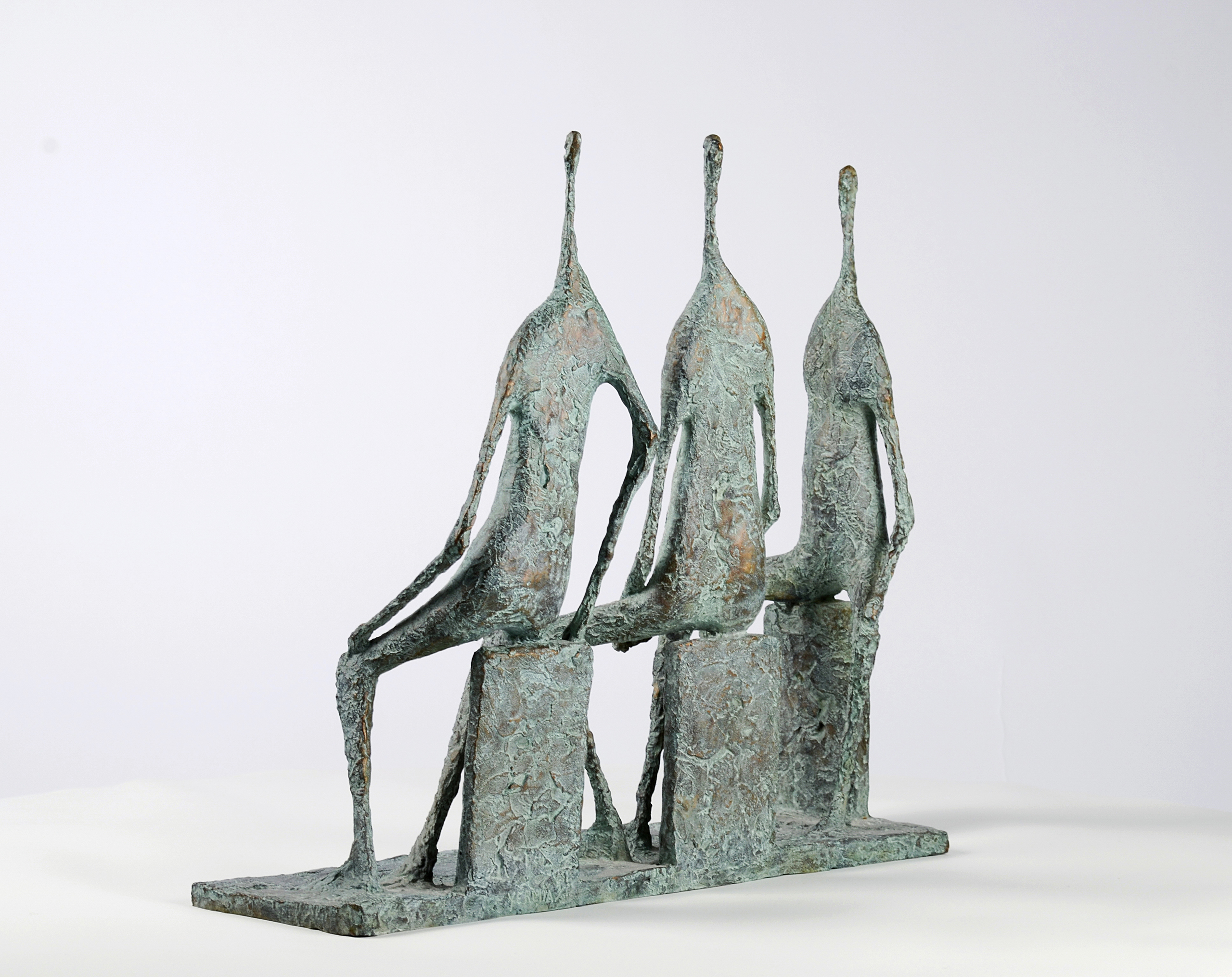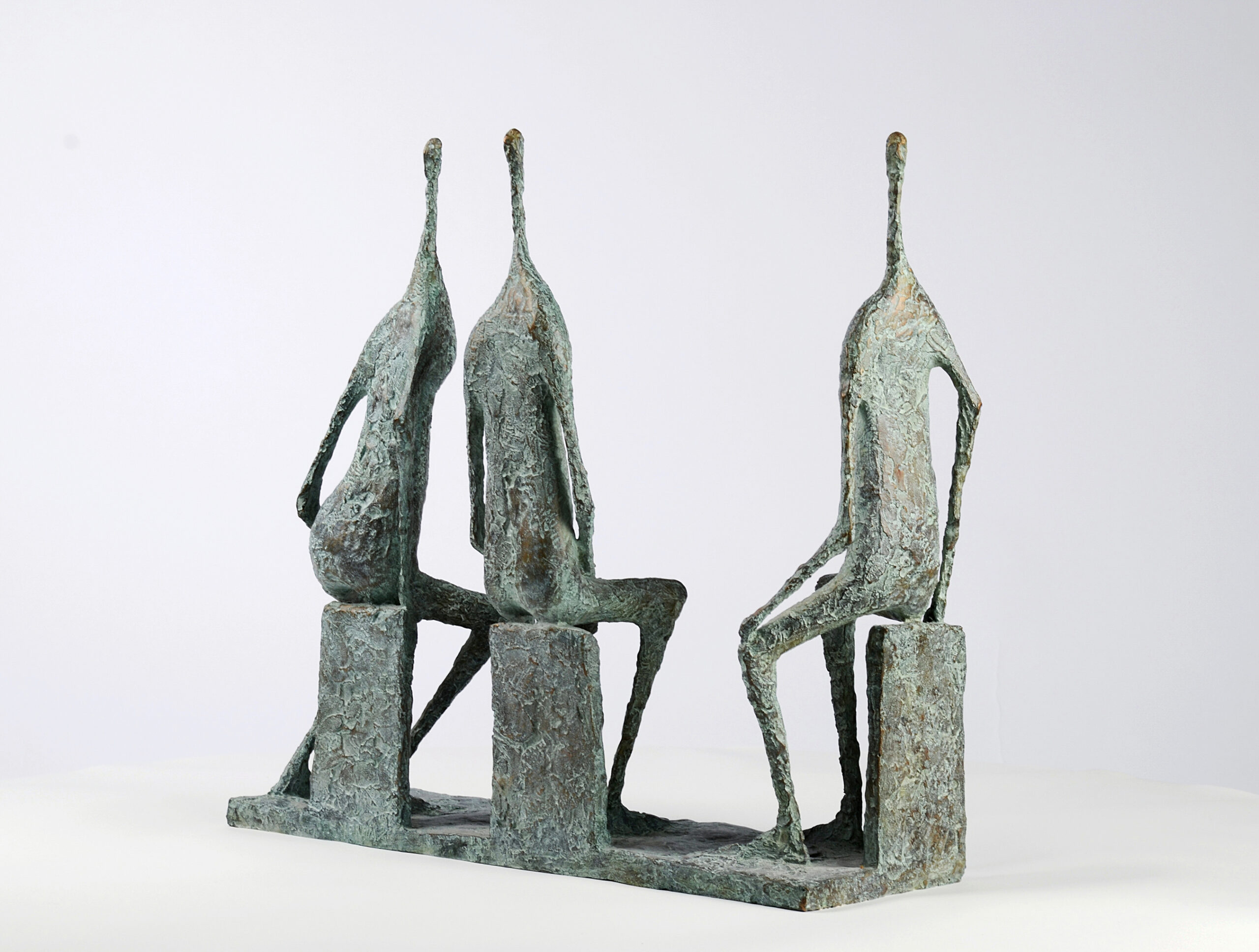 3 Figures assises I est une sculpture en bronze de l’artiste contemporain français Pierre Yermia, représentant trois figures humaines.