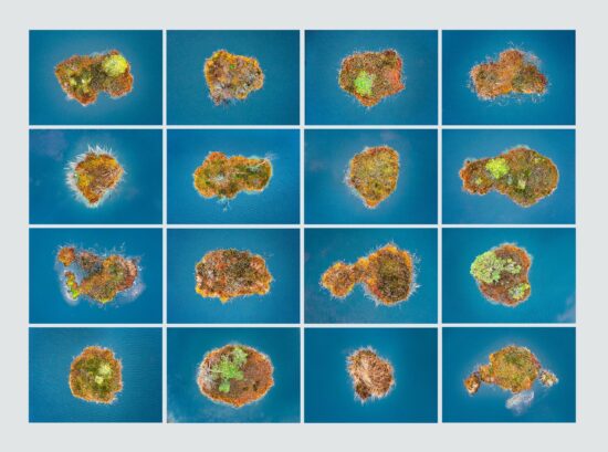 Le photographe nous fait découvrir une plage touristique sous un autre angle : les foules de vacanciers et le matériel de plage se transforment en éléments de composition colorés et géométriques et dessinent des panoramas très abstraits. Vus du ciel, les plagistes et les bateaux sur la plage ne forment que des petites tâches dispersées parmi les motifs originaux formés par les parasols et l’eau de la Méditerranée. Avec cette vue aérienne d’un bord de mer ensoleillé, Bernhard Lang nous rappelle que « la vue d’un oiseau révèle que nous sommes juste de petites créatures, pas aussi importantes que nous pensons l’être. »