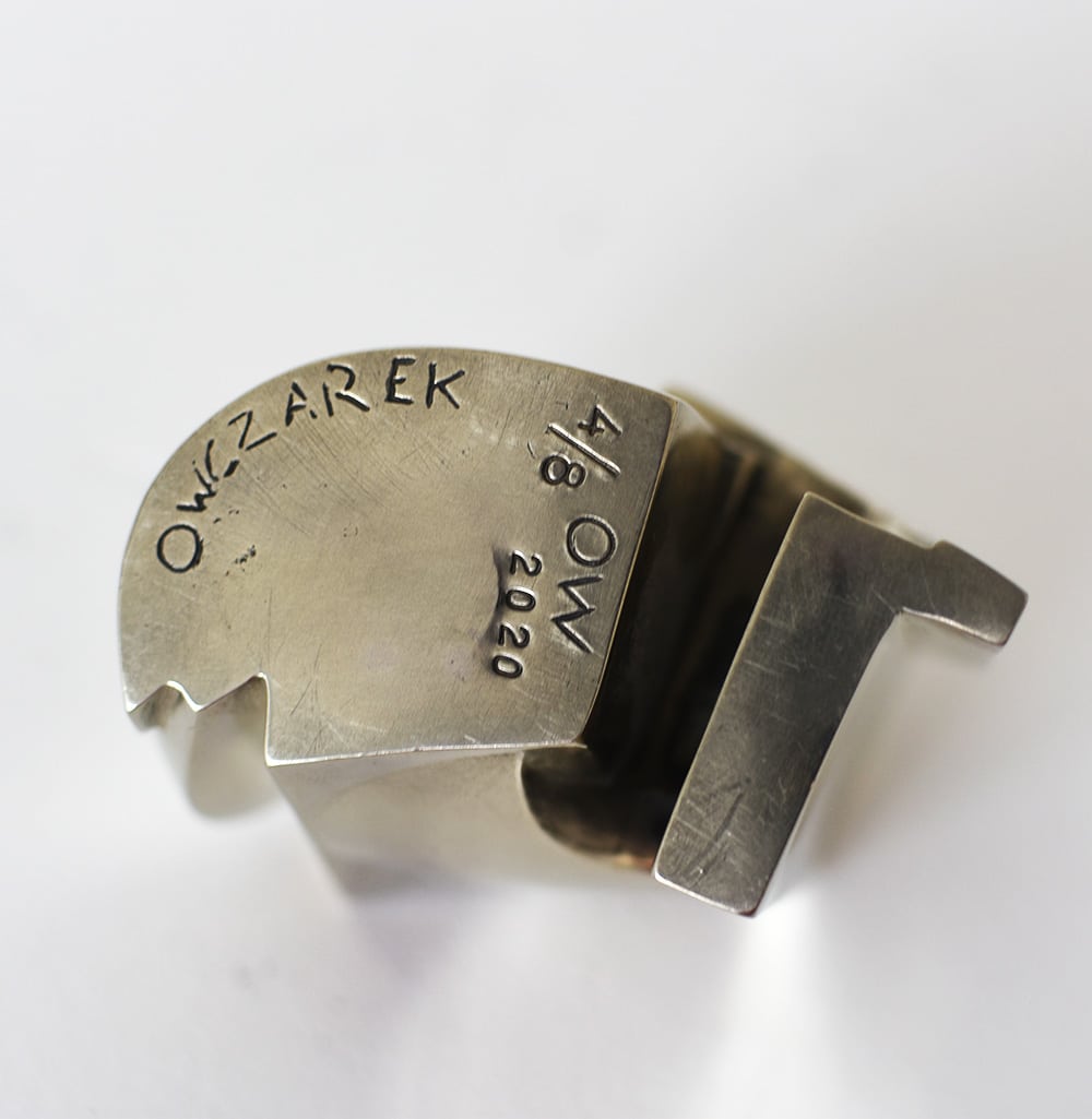 Cet éléphant en bronze prend forme dans une succession de lignes, d’arrêtes et de courbes. Des éléments caractéristiques de l’animal sont reconnaissables : sa silhouette, sa trompe et ses pattes. Mais la singularité du regard de l’artiste s’exprime dans la pureté des formes, la finesse des lignes, l’aspect géométrique de la sculpture. Autant d’éléments qui font de cet éléphant une réalisation unique, qui dégage beaucoup d’émotion.