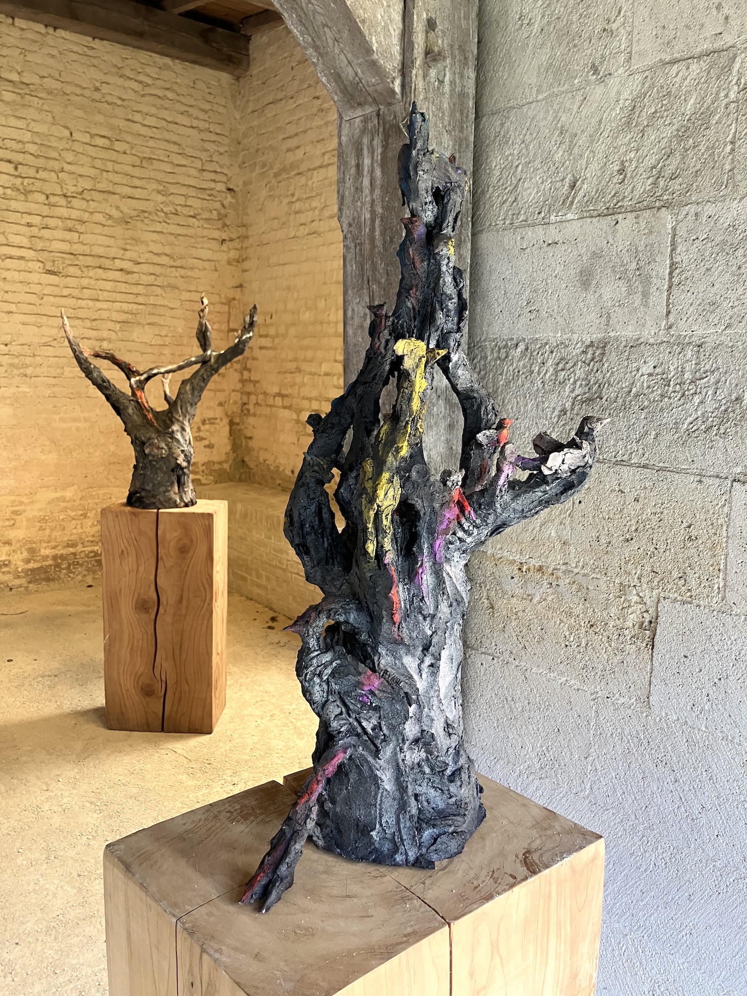 « Le titre de cette série fait naturellement écho au roman de Richard Powers. Ces sculptures sont des portraits d’arbres, rencontrés sur les chemins d’Occitanie. Transfigurés, ils sollicitent nos propres liens affectifs avec les arbres. » Cécile Raynal