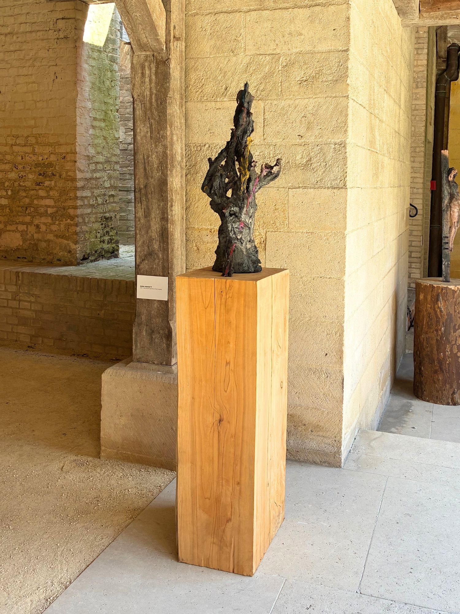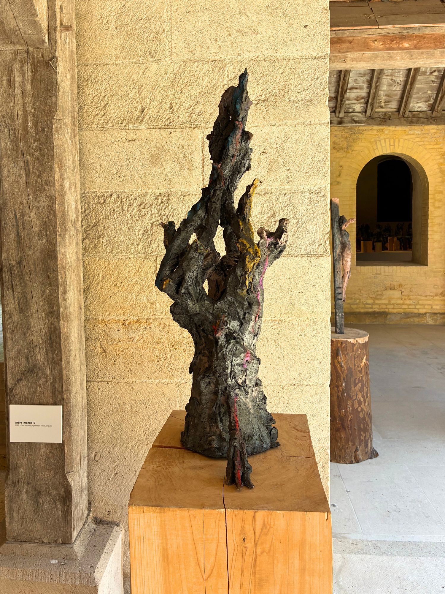 Arbre-monde III est une sculpture en grès enfumé de l’artiste contemporaine Cécile Raynal.