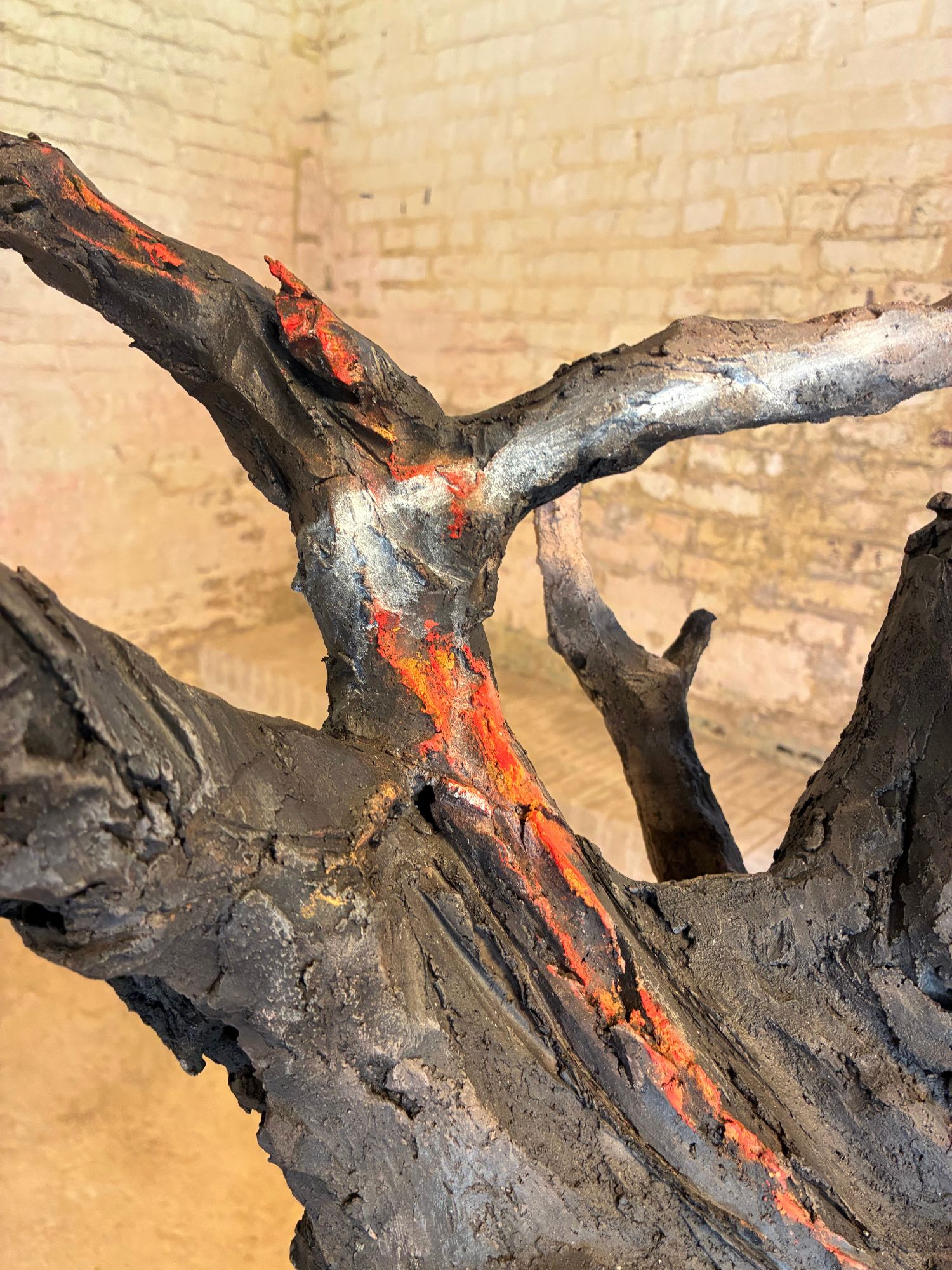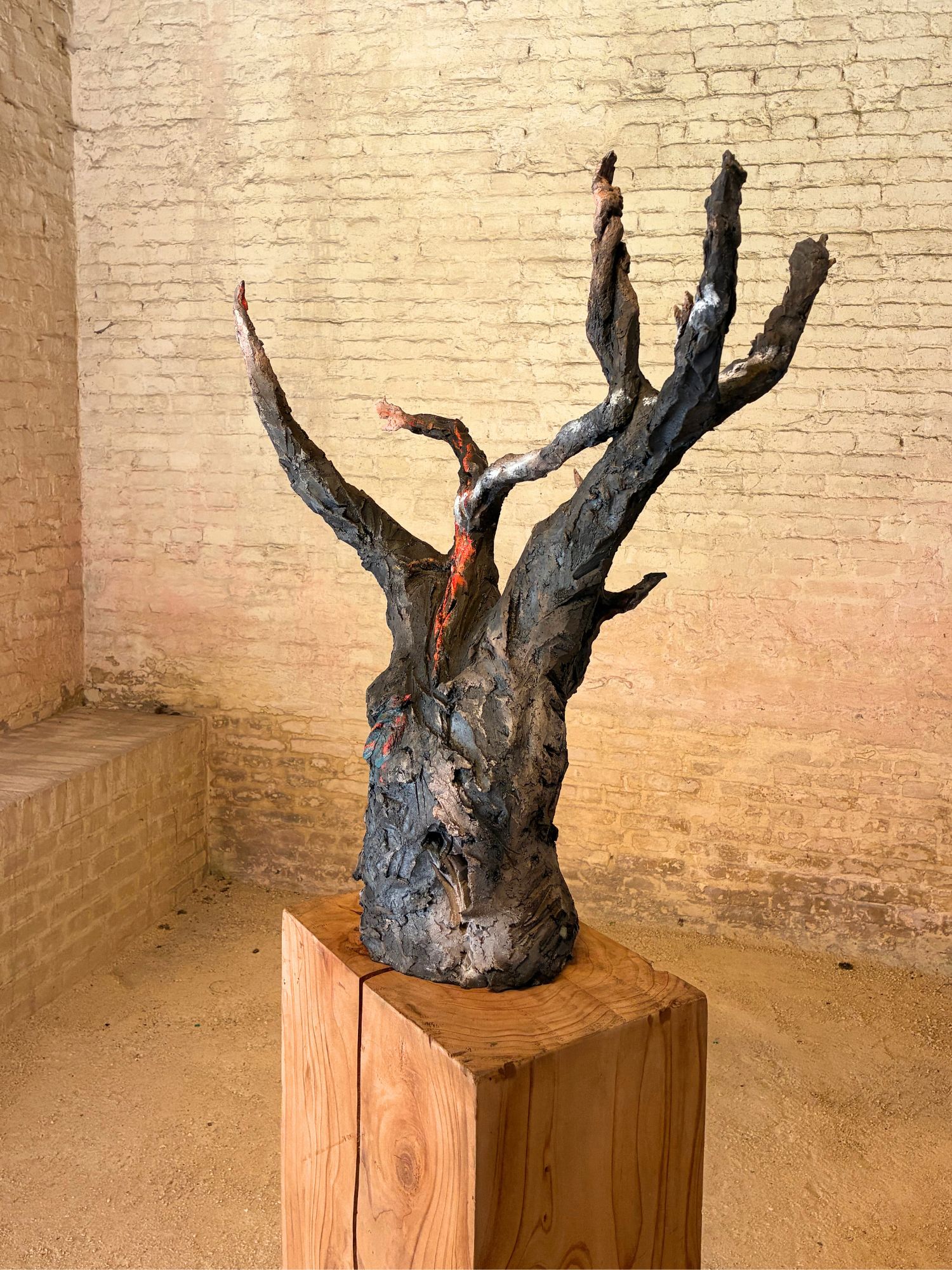 Arbre-monde IV est une sculpture en grès enfumé et pigments de l’artiste contemporaine Cécile Raynal. La sculpture est une ode à la majesté des arbres anciens. Ce platane vénérable devient ici une figure mythologique, porteuse d’histoire et de mémoire.