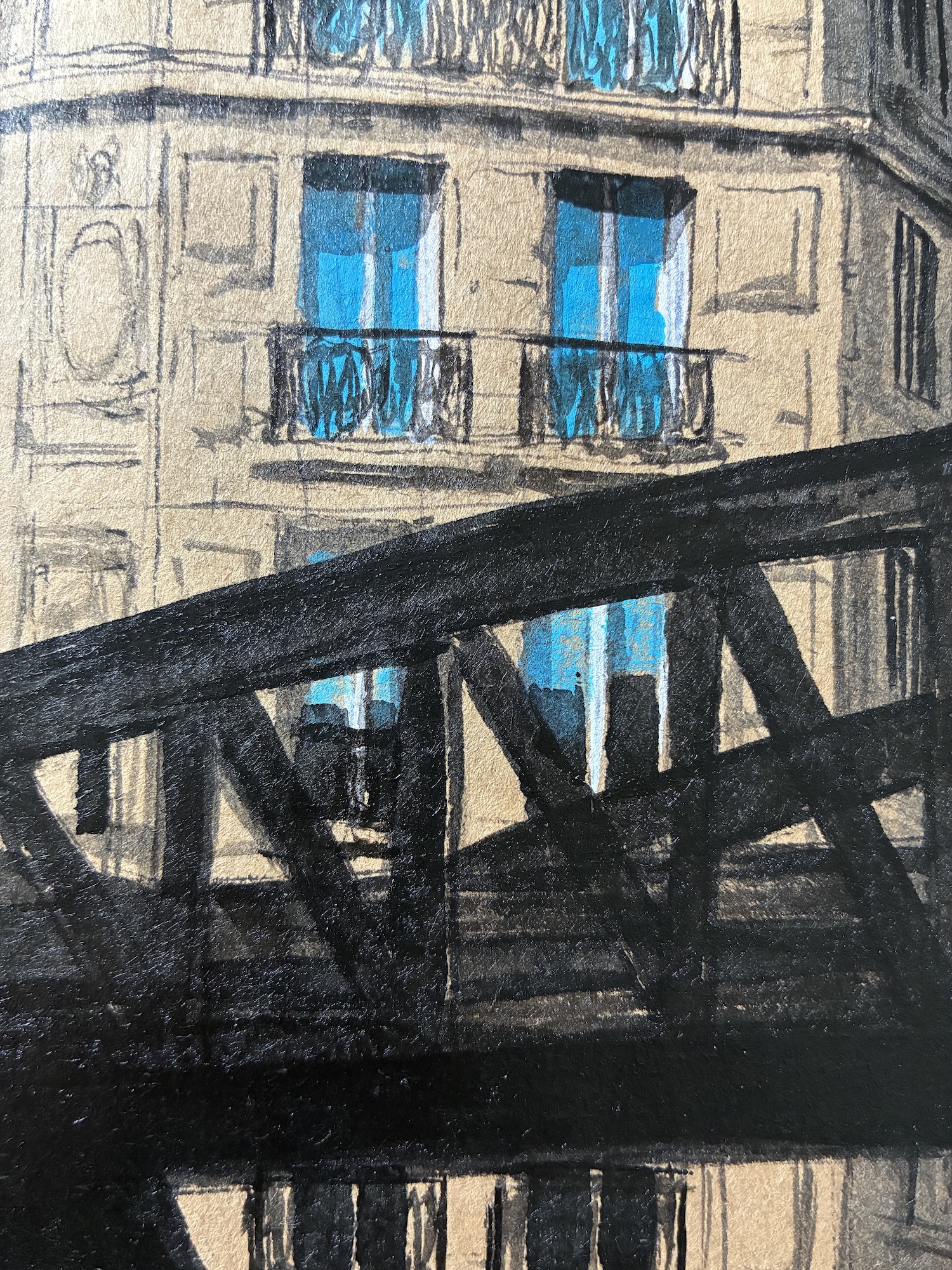 ArchiParis – Tour Eiffel est un dessin de l’artiste contemporain français Guillaume Chansarel. Ce dessin représente la structure métallique du métro aérien parisien, ligne 6, avec en arrière-plan des immeubles haussmanniens finement représentés et, derrière eux, la Tour Eiffel se détachant sur le ciel bleu. Cet assemblage de constructions métalliques horizontales et verticales organise le dessin et structure l’espace. La minutie apportée à chaque élément traduit avec élégance une vue originale de la Tour Eiffel, le monument le plus visité de Paris.
