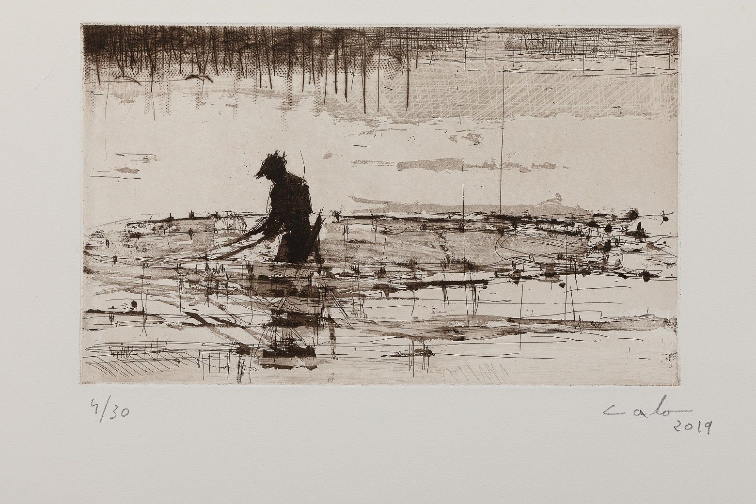 Bagamoyo Fishermen 3 est une gravure de l’artiste contemporain espagnol Calo Carratalá, issue de la série « Tanzanie ».