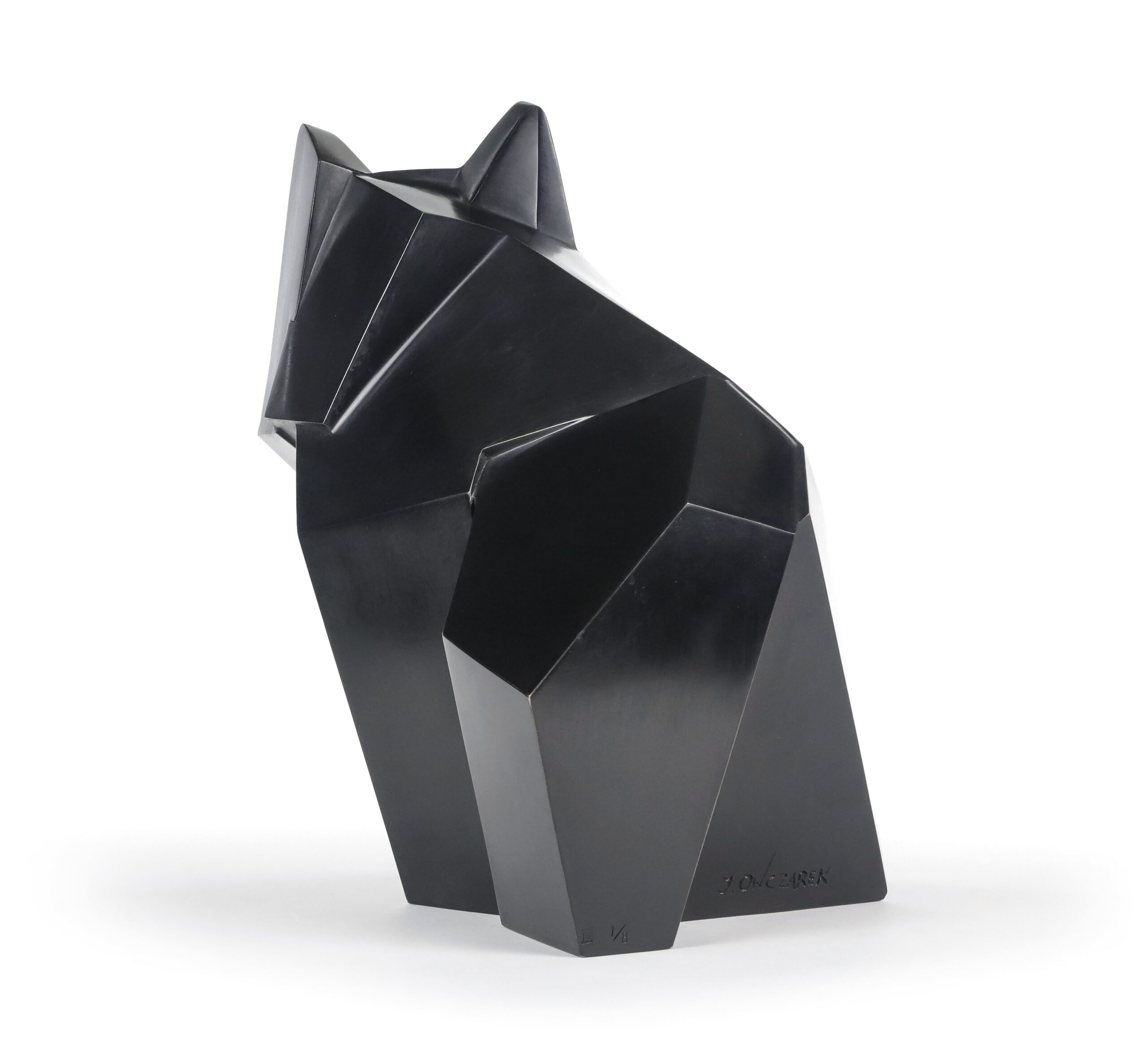 Ce bulldog en bronze prend forme dans une succession de lignes et d’arrêtes. Des éléments caractéristiques de l’animal sont reconnaissables : sa silhouette, son museau et ses pattes. Mais la singularité du regard de l’artiste s’exprime dans la pureté des formes, la finesse des lignes, l’aspect géométrique de la sculpture. Autant d’éléments qui font de cette sculpture une réalisation unique, qui dégage beaucoup d’émotion.