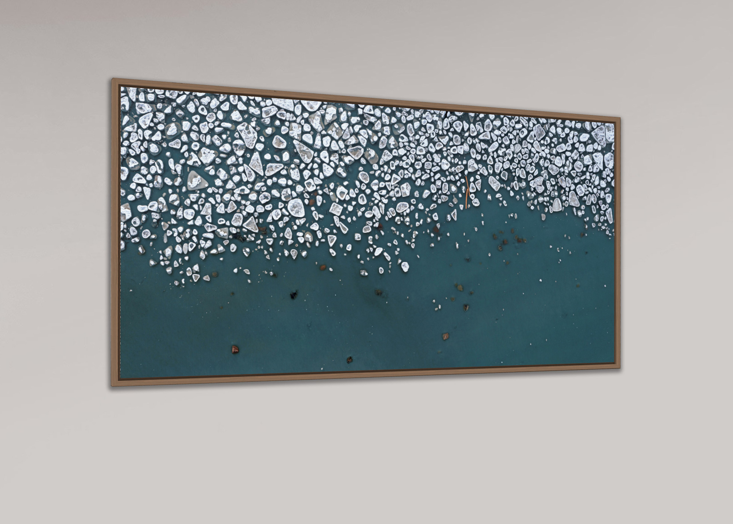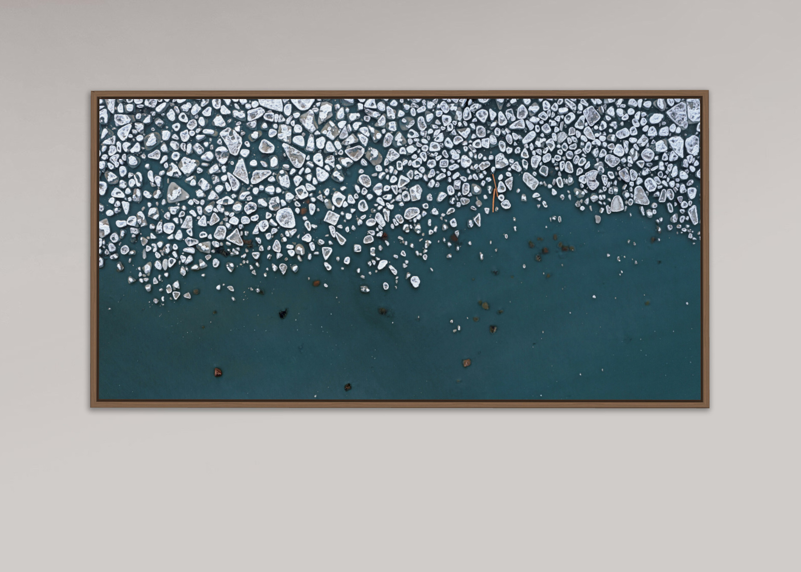Dans cette série, Bernhard Lang capture les fascinantes structures de glace de la mer Baltique, des rivières et des lacs. Les principaux lieux photographiés par l’artiste sont les fleuves Pärnu et le lac Peipsi, qui gèlent en hiver, créant de vastes étendues de glace. Ces formations de glace saisissantes prises par Lang attirent l’œil du spectateur et soulignent la beauté des paysages hivernaux de la région de la Baltique. La série comprend également des images de banquises brisées par des bateaux sur la rivière Pärnu.