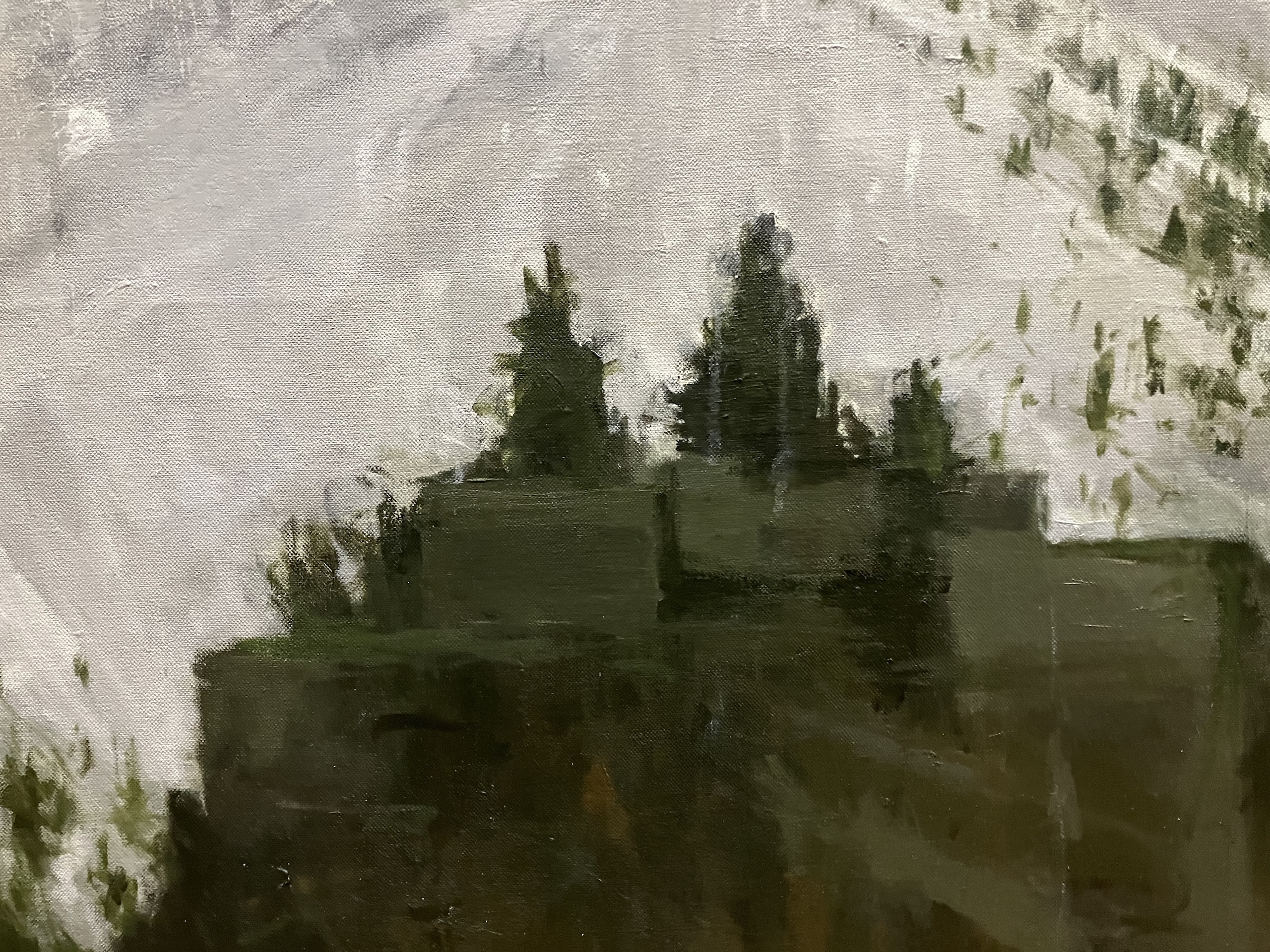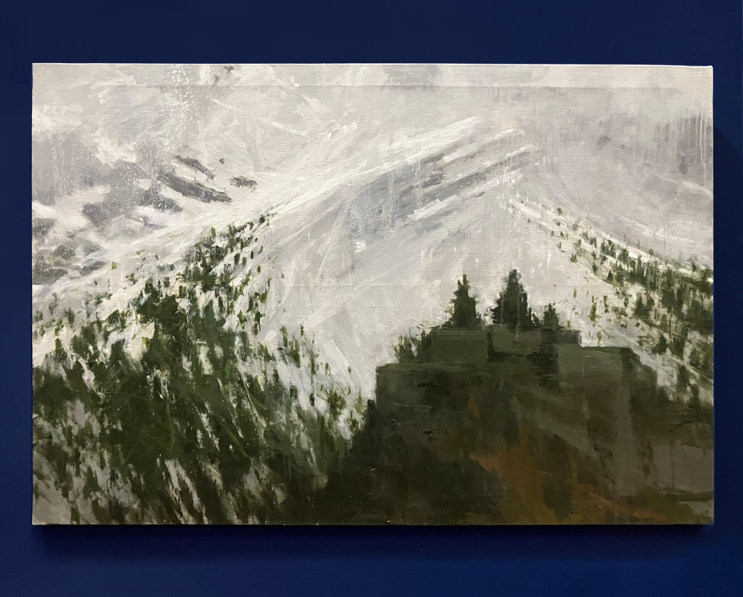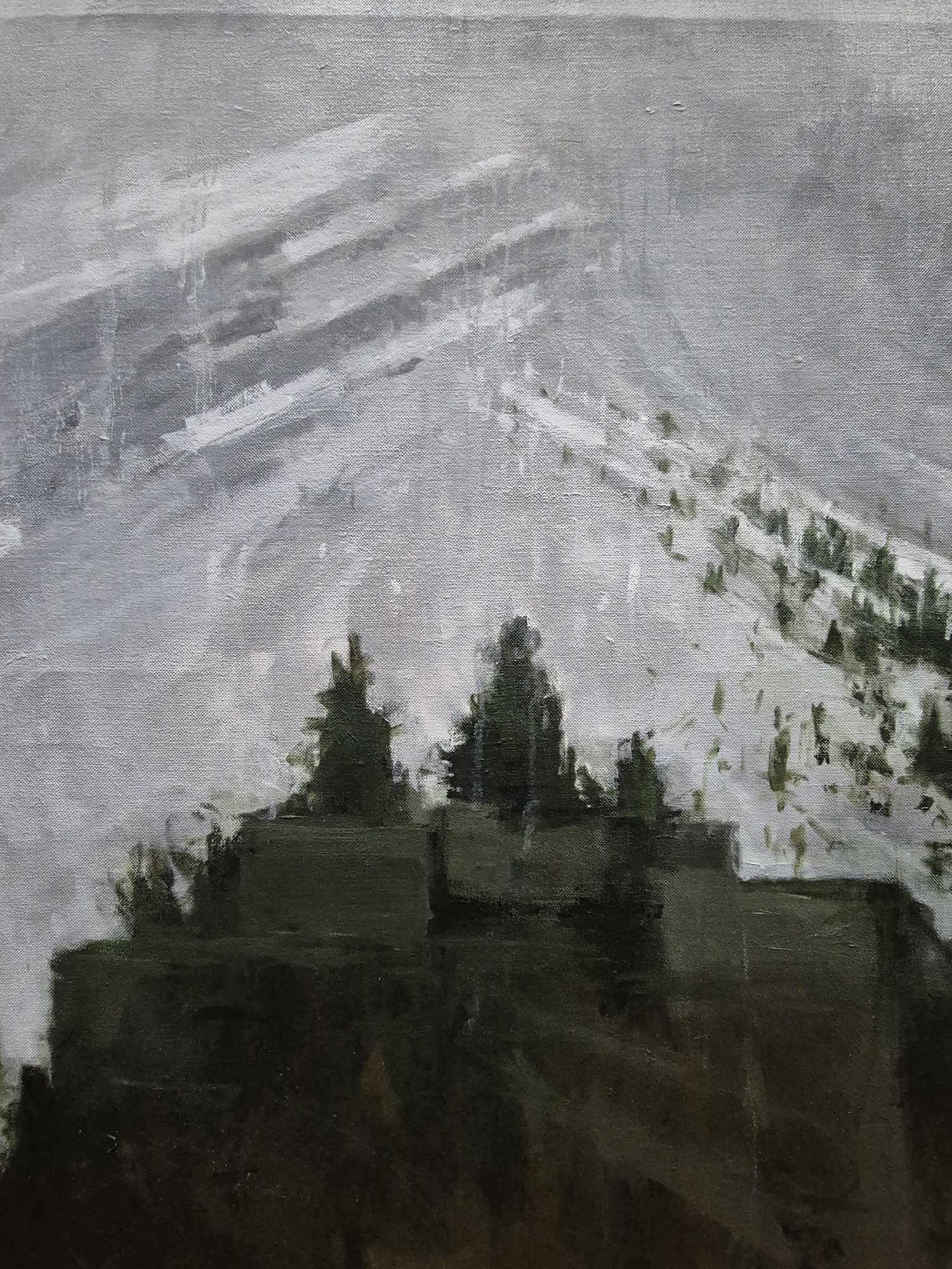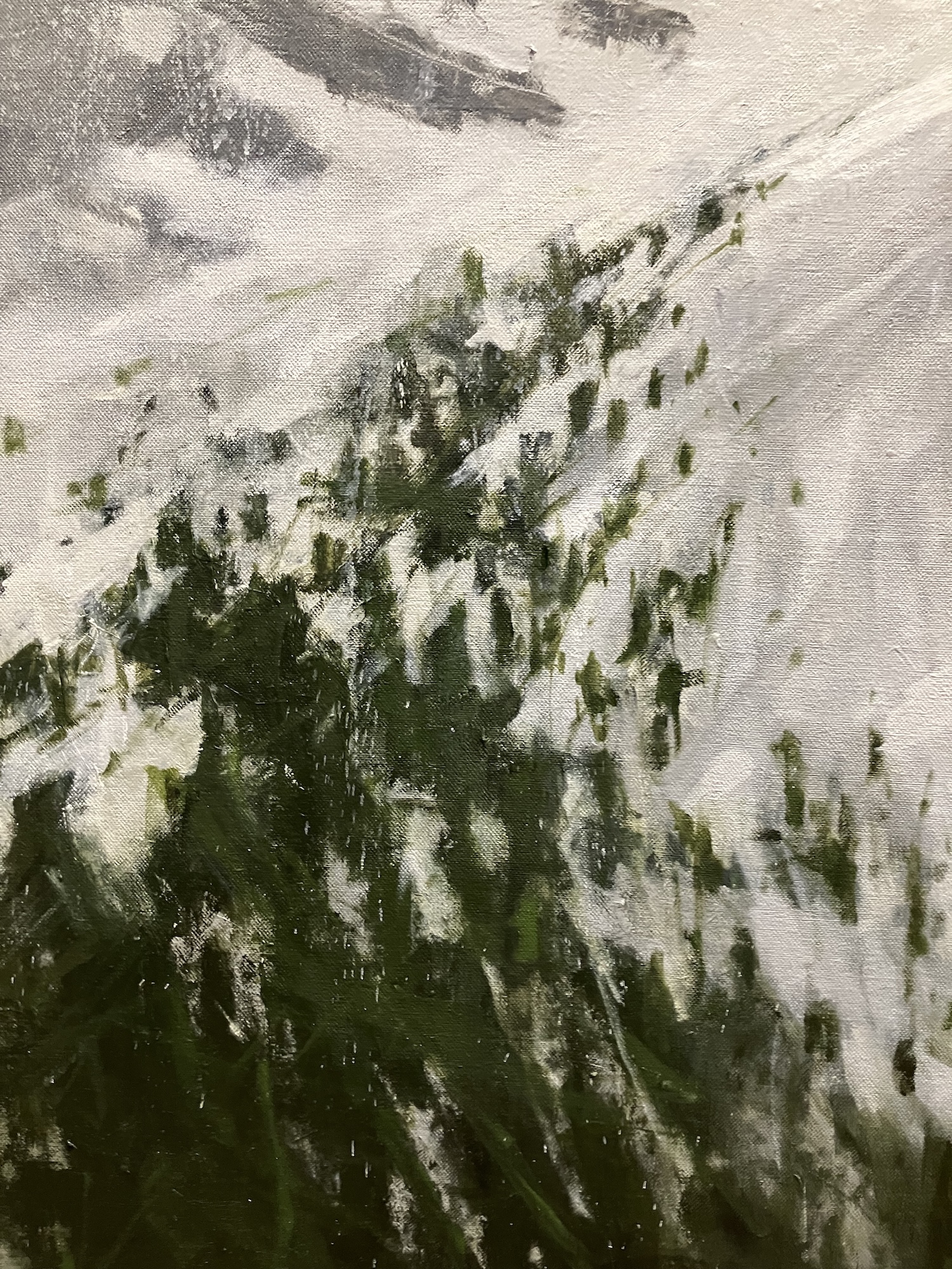 Canfranc, issue de la série Neige, est une peinture de l’artiste contemporain espagnol Calo Carratalá. Cette œuvre d’art représente un paysage de montagne en hiver dans la vallée pyrénéenne de Canfranc, une commune nichée dans la vallée d’Aragón, au nord-est de l’Espagne. Ce tableau est une huile sur toile où les tons blancs, gris et vert dominent.