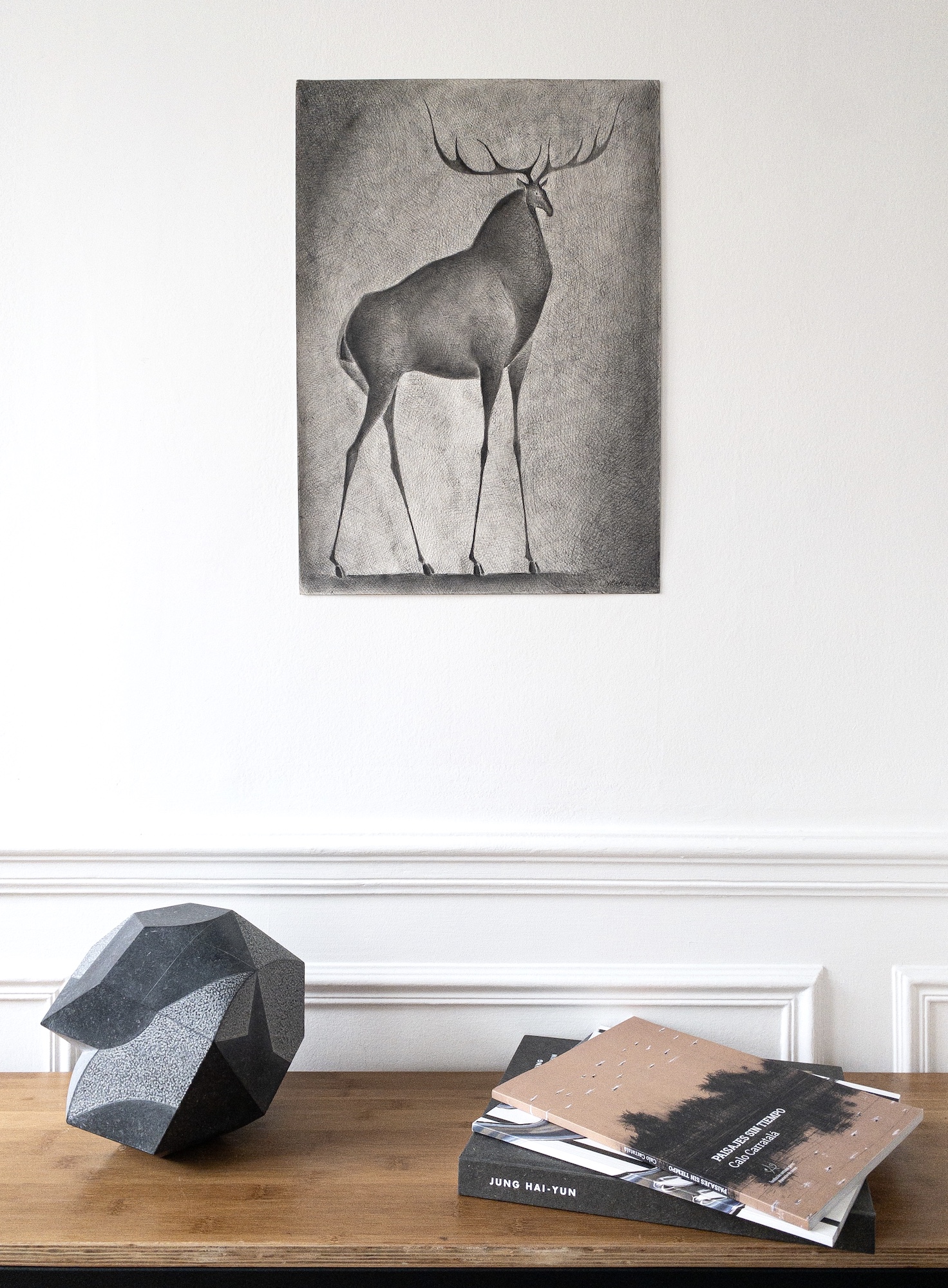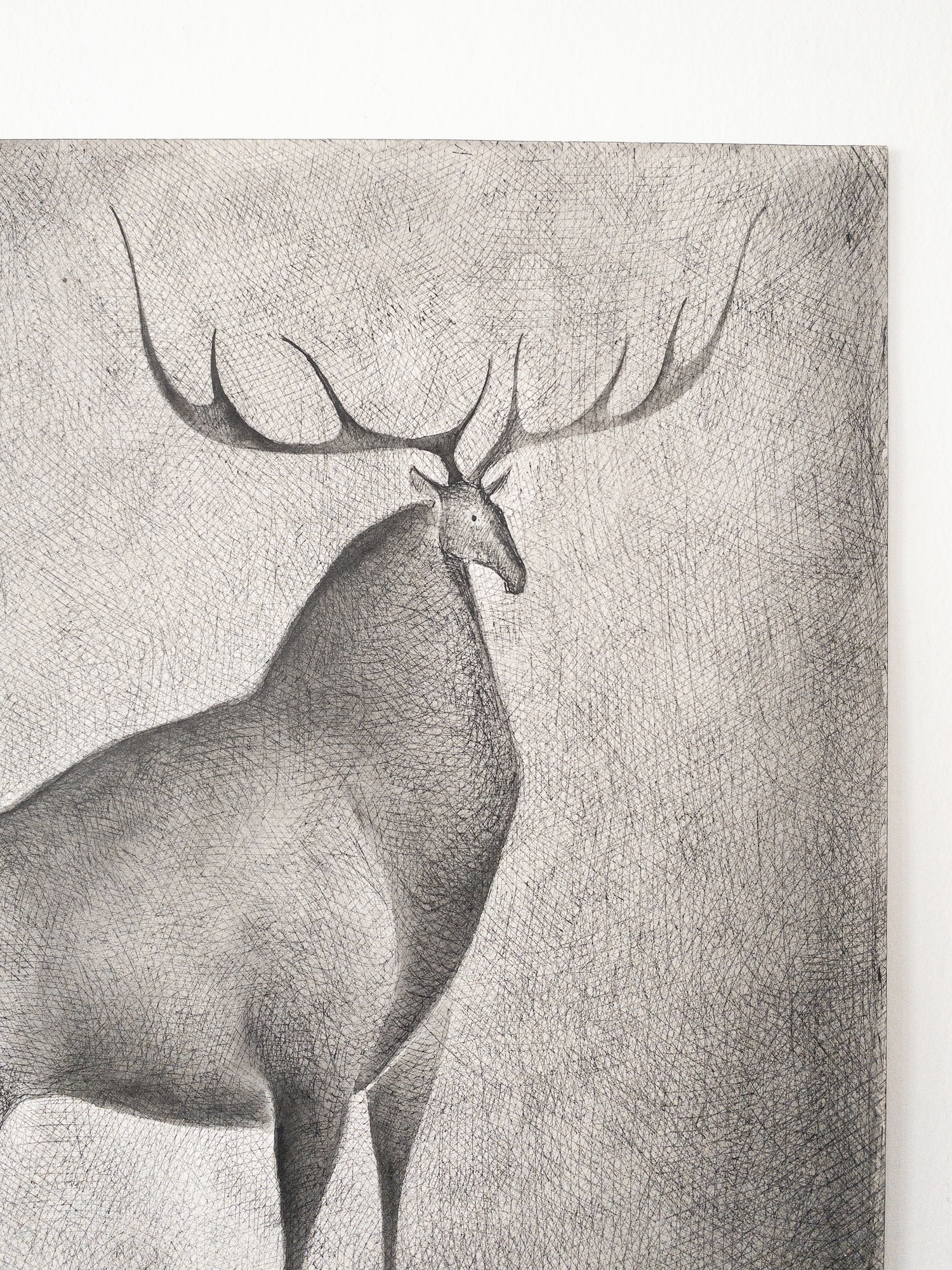 Cerf IX est un dessin de l’artiste contemporain français Pierre Yermia célébrant le règne animal.
