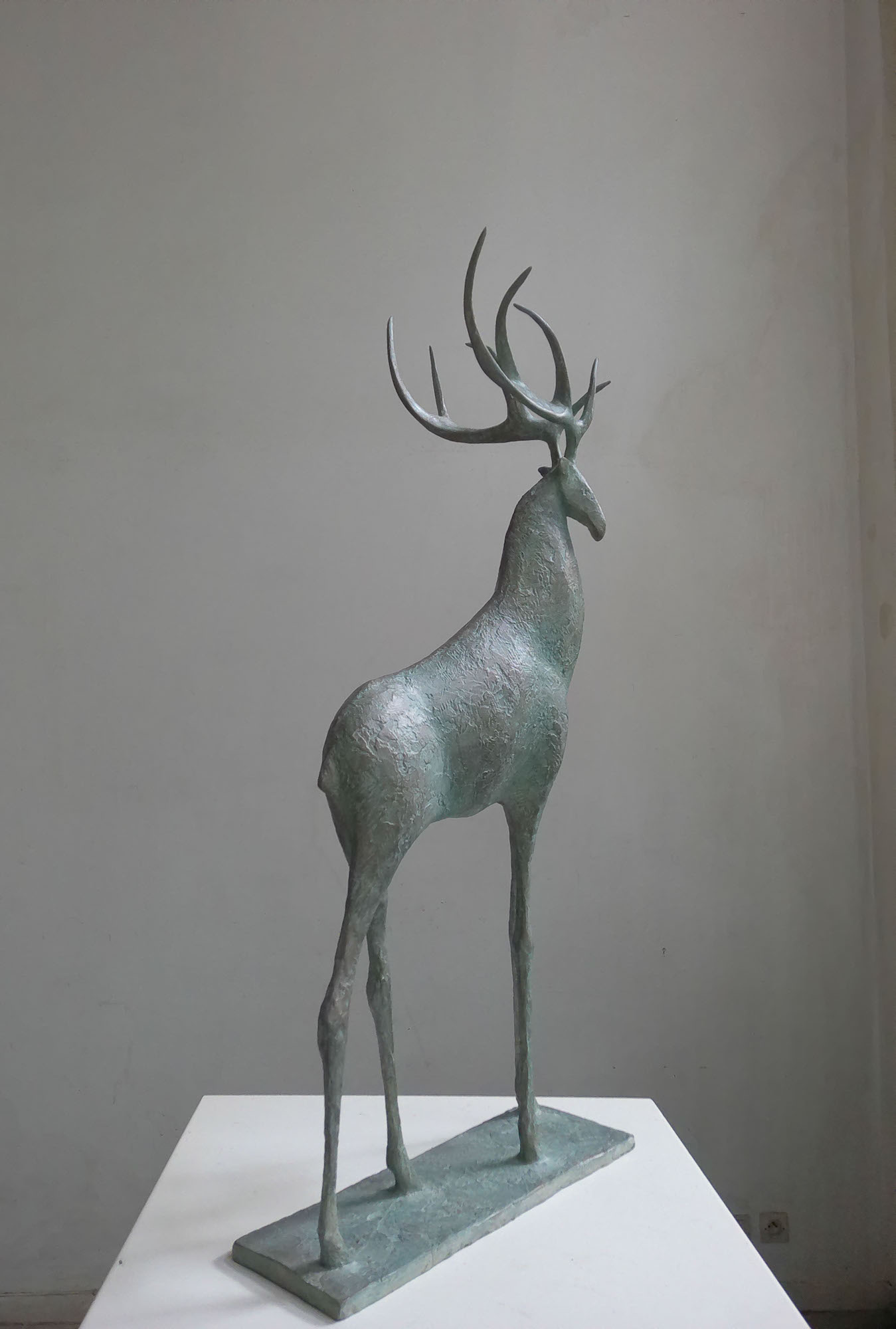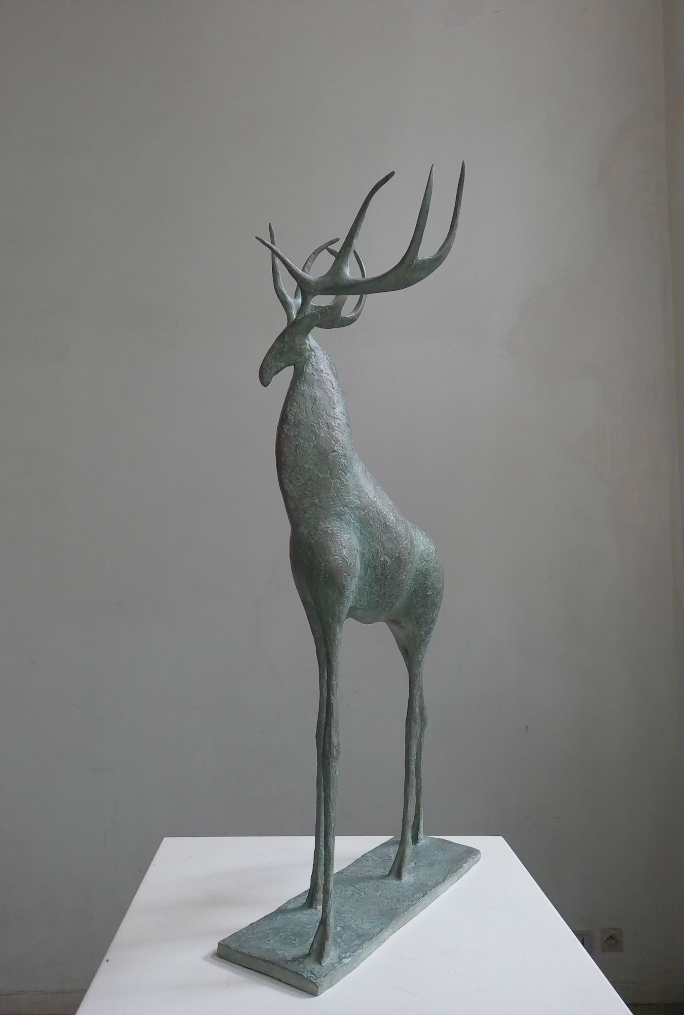 L’artiste a travaillé pour la première fois sur cet animal, le cerf, pour une œuvre monumentale : une sculpture en bronze de 3 mètres de hauteur, qui a été installée dans le parc d’un domaine hôtelier du Loir-et-Cher. Découvrez en vidéo l’histoire de la création de cette sculpture monumentale en cliquant ici. Retrouvez également un article consacré à sa création en cliquant ici.
