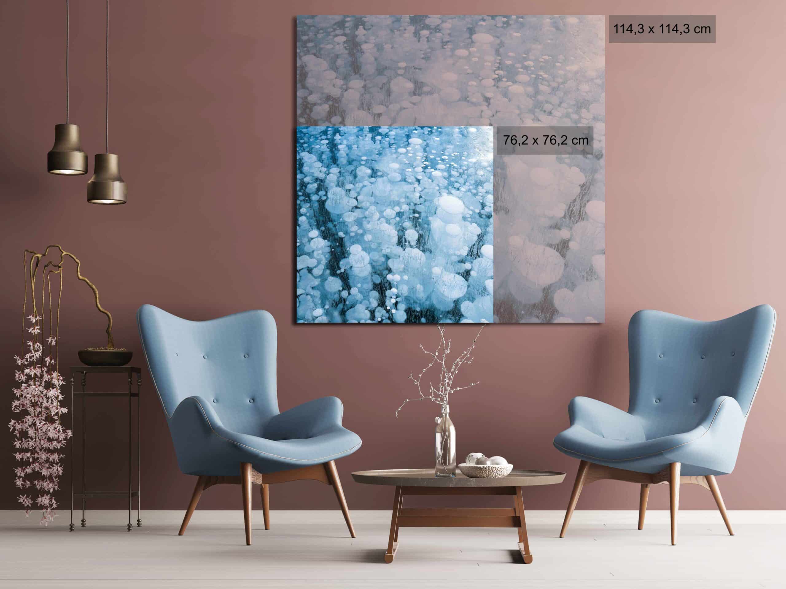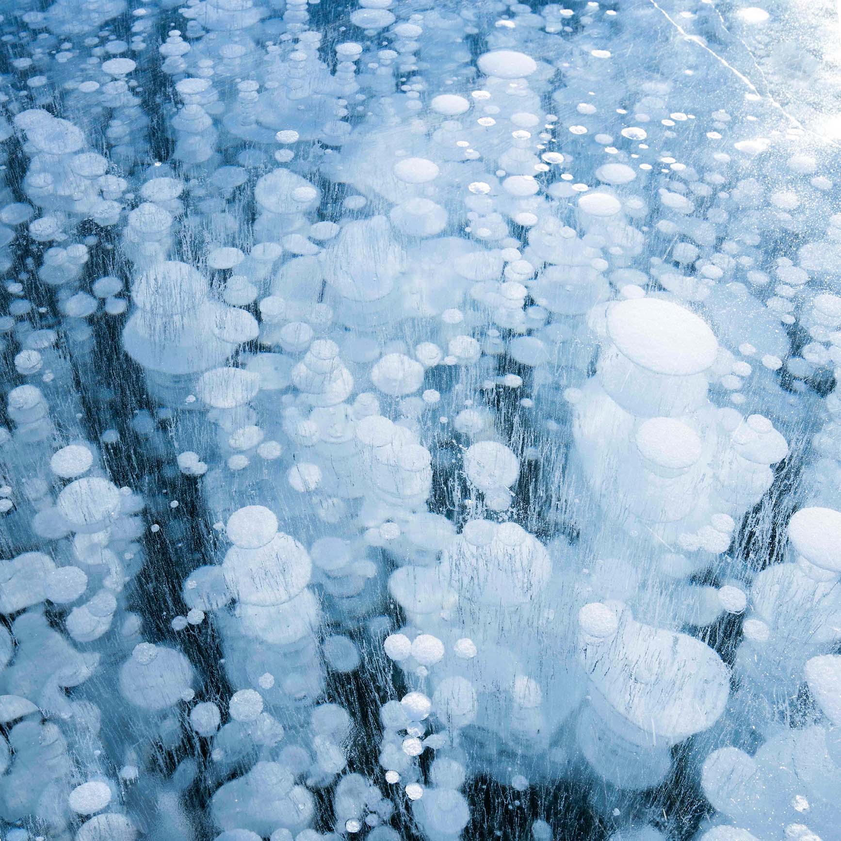 Cryo est une série qui explore le phénomène naturel du lac Abraham en Alberta, Canada. Le lac relâche des boules de méthane de la terre dans l’eau, mais ce processus est visible seulement pendant une période très spécifique et brève de l’année. En hiver, quand la température tombe à -45 C° et que le lac gèle, l’eau entoure, capture et suspend des milliers de boules de méthane, comme des sculptures de glace. Dans ses photographies, l’artiste veut immortaliser la beauté de la nature en transition, en dépit de conditions de travail extrêmement dures et hostiles.