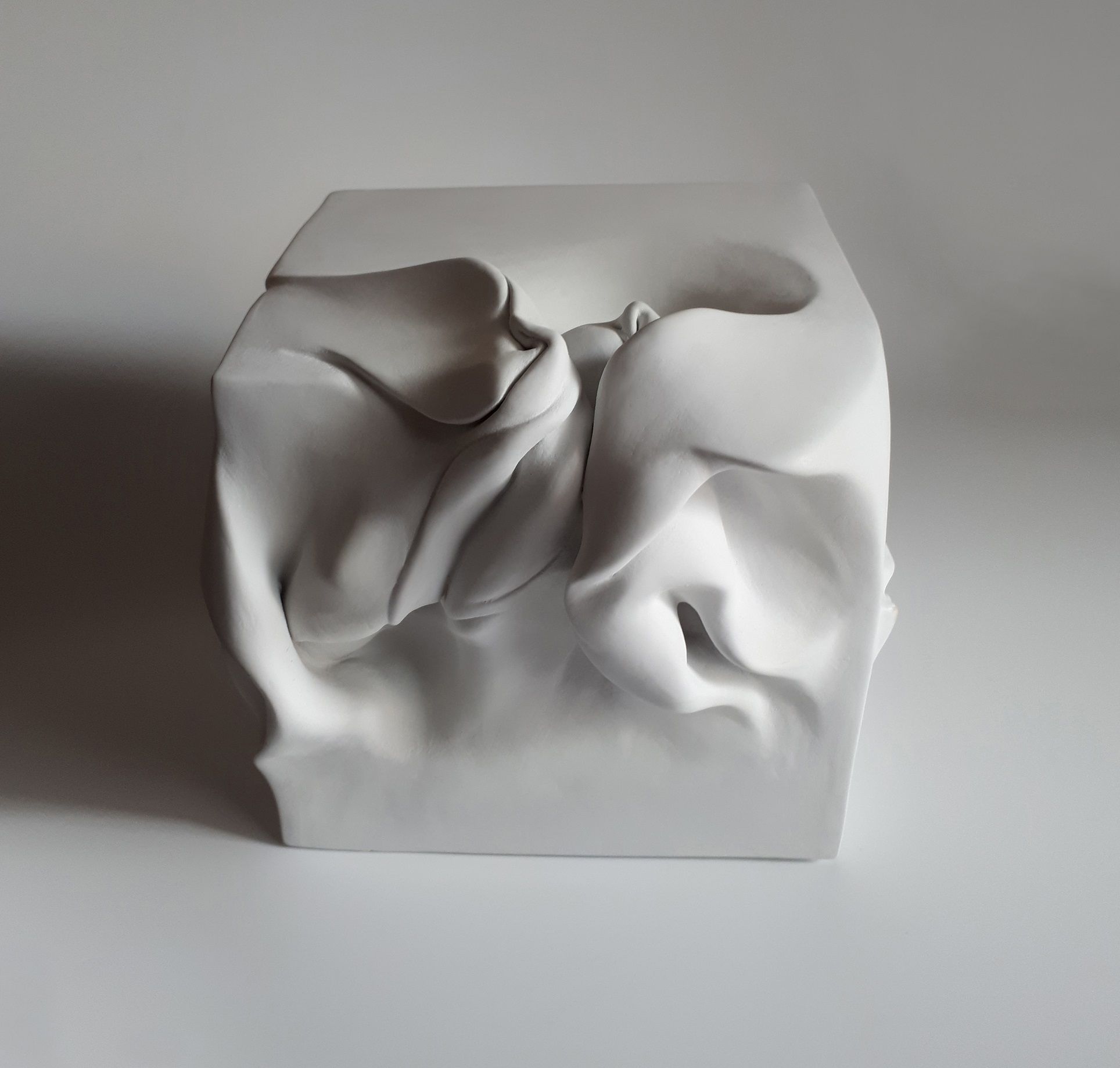 Dans cette nouvelle série qui se distingue des précédents travaux de l’artiste, les formes organiques sont retravaillées sur des cubes, et émergent en changeant la surface plate de la sculpture géométrique. L’artiste mène une recherche formelle en confrontant le mouvement en tant que notion abstraite et insaisissable à la stabilité concrète d’une figure géométrique. La notion de mouvement est considérée d’un point de vue interne à l’œuvre, mais également d’un point de vue externe : celui du spectateur.