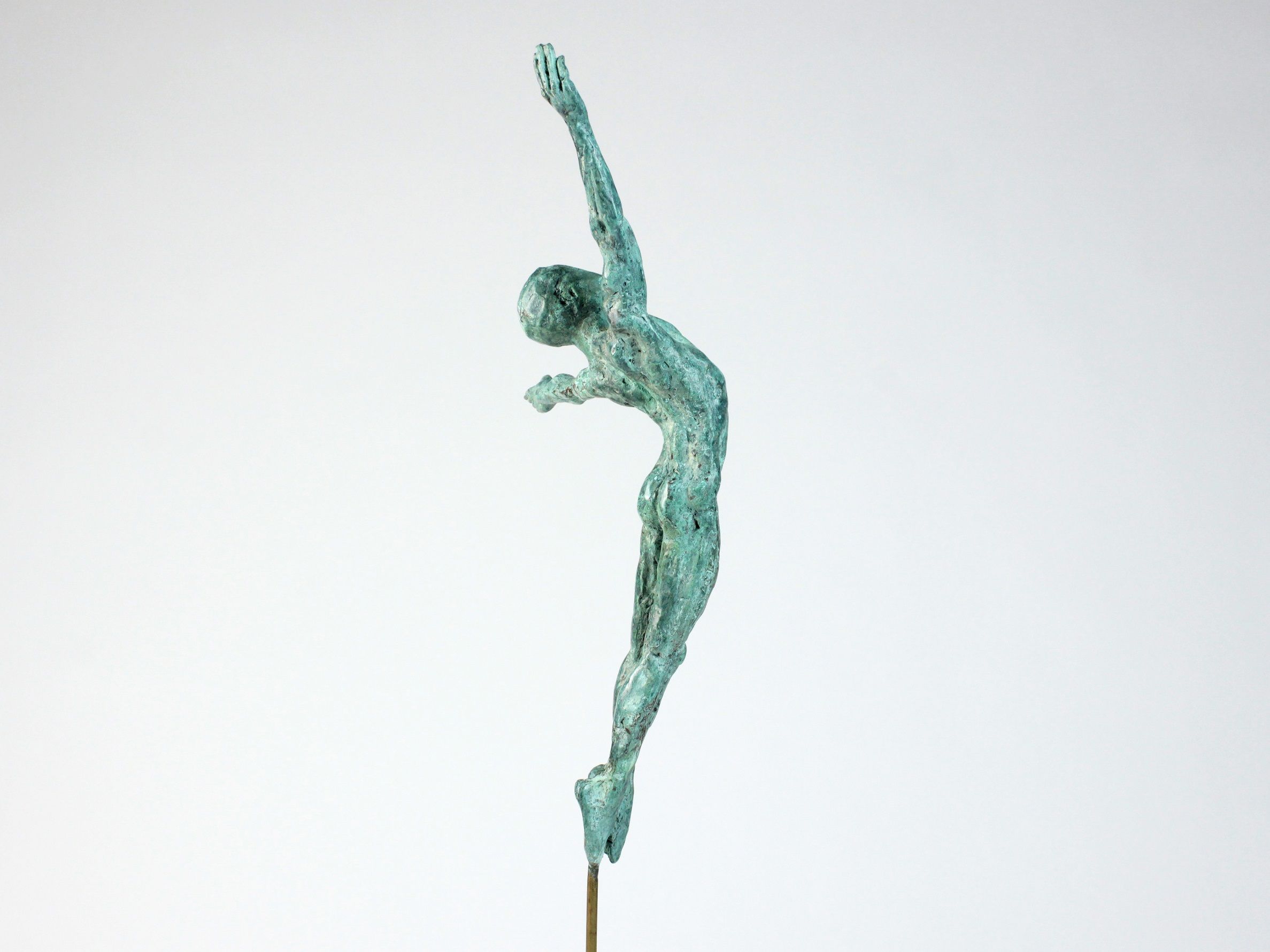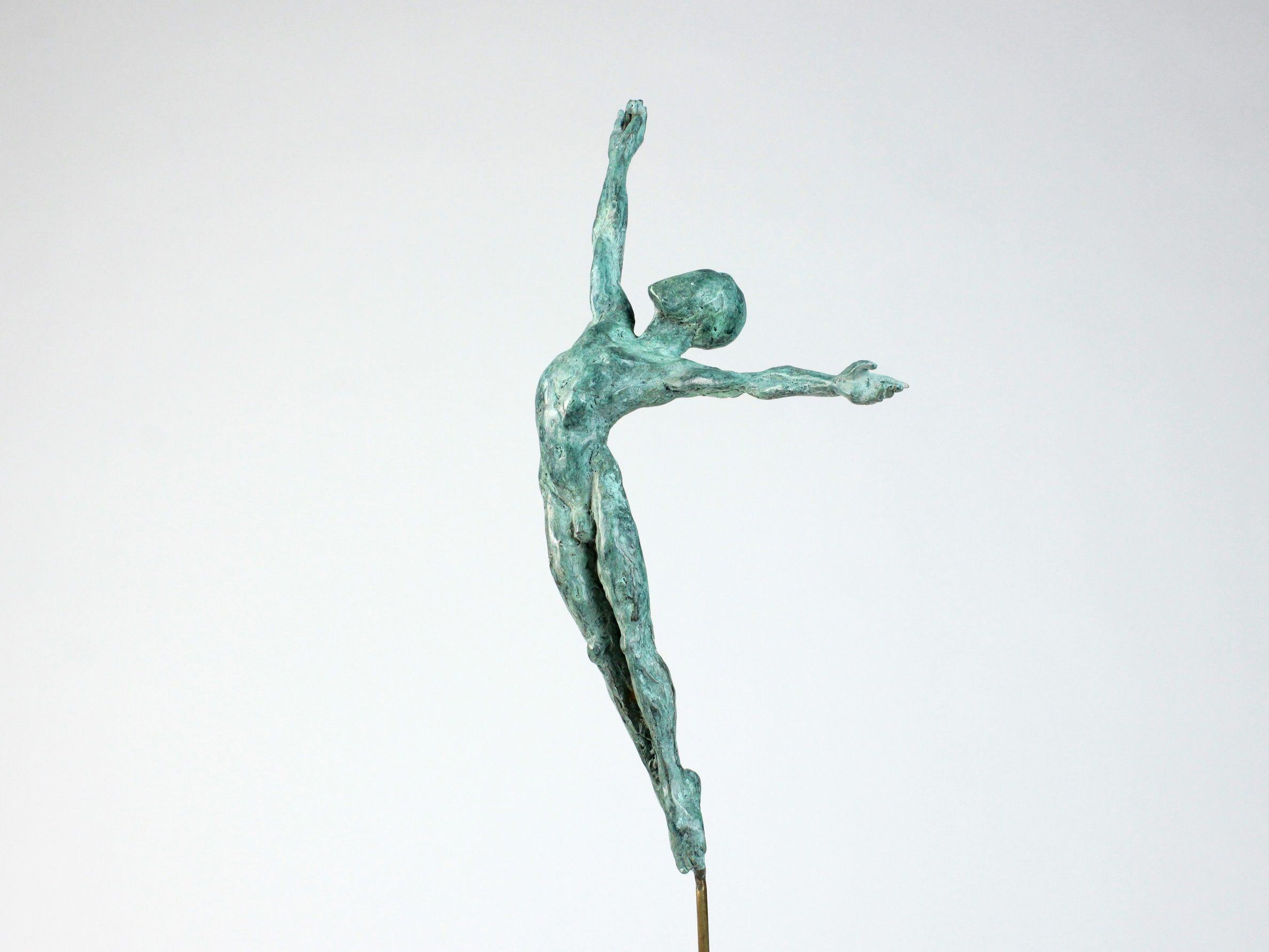 L’étude inlassable de la figure humaine de Yann Guillon se traduit souvent par l’exploration de thématiques spécifiques. C’est le cas avec la série « Petits acrobates et danseurs ». L’artiste saisit le prétexte des corps de ces athlètes et autres gymnastes pour s’affranchir de la réalité des proportions, transcender la recherche d’une définition parfaite des morphologies. La plupart des créations de Yann Guillon conservent un aspect brut, pour ne pas étouffer la spontanéité du geste qui leur donne vie.