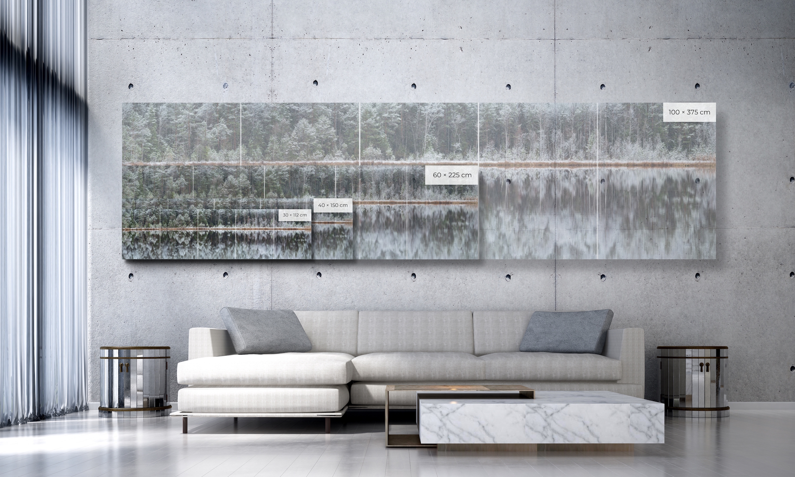 | Dimensions | 30 × 112 cm | 40 × 150 cm | 60 × 225 cm | 100 × 375 cm | 120 × 450 cm | 140 × 525 cm |