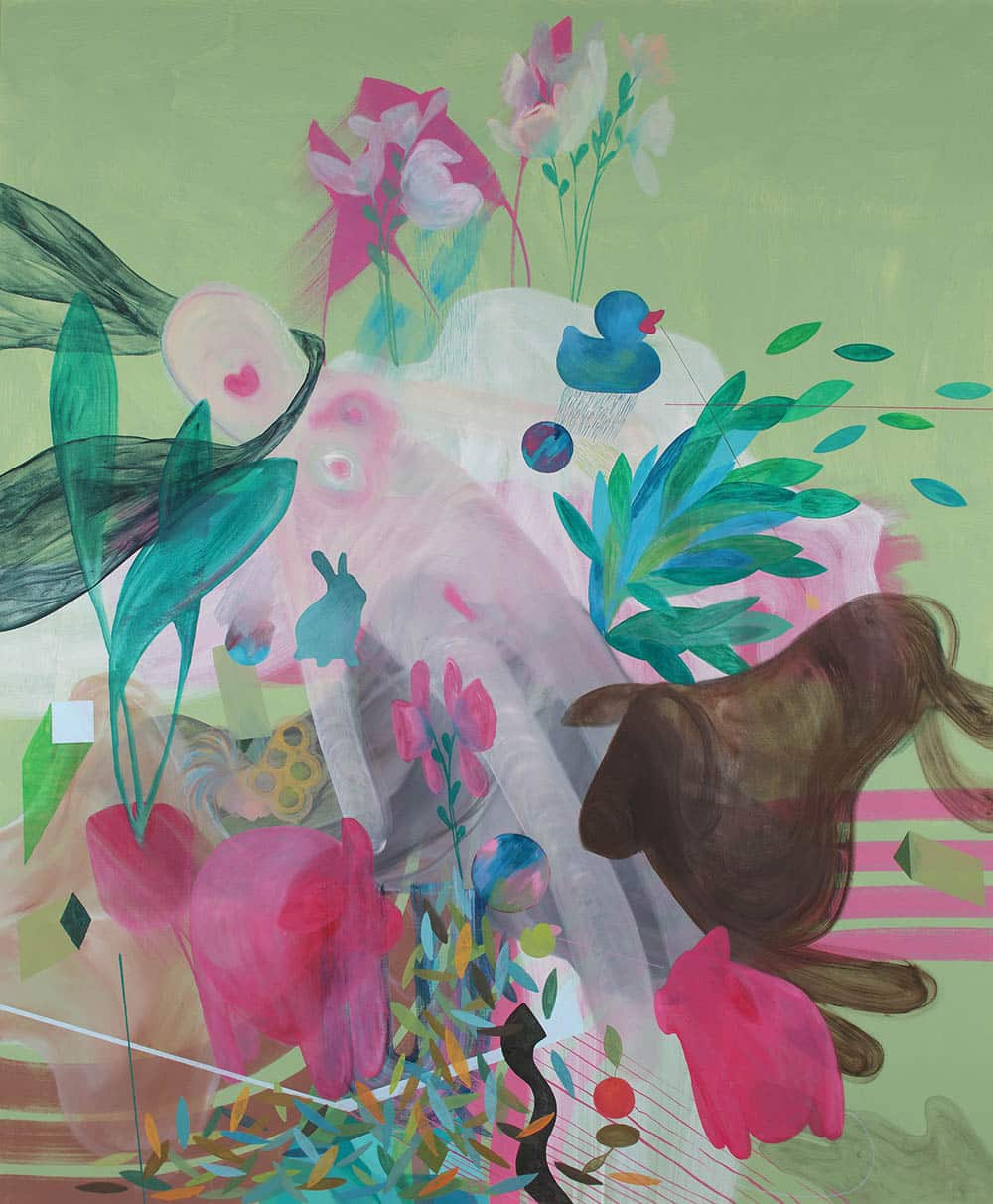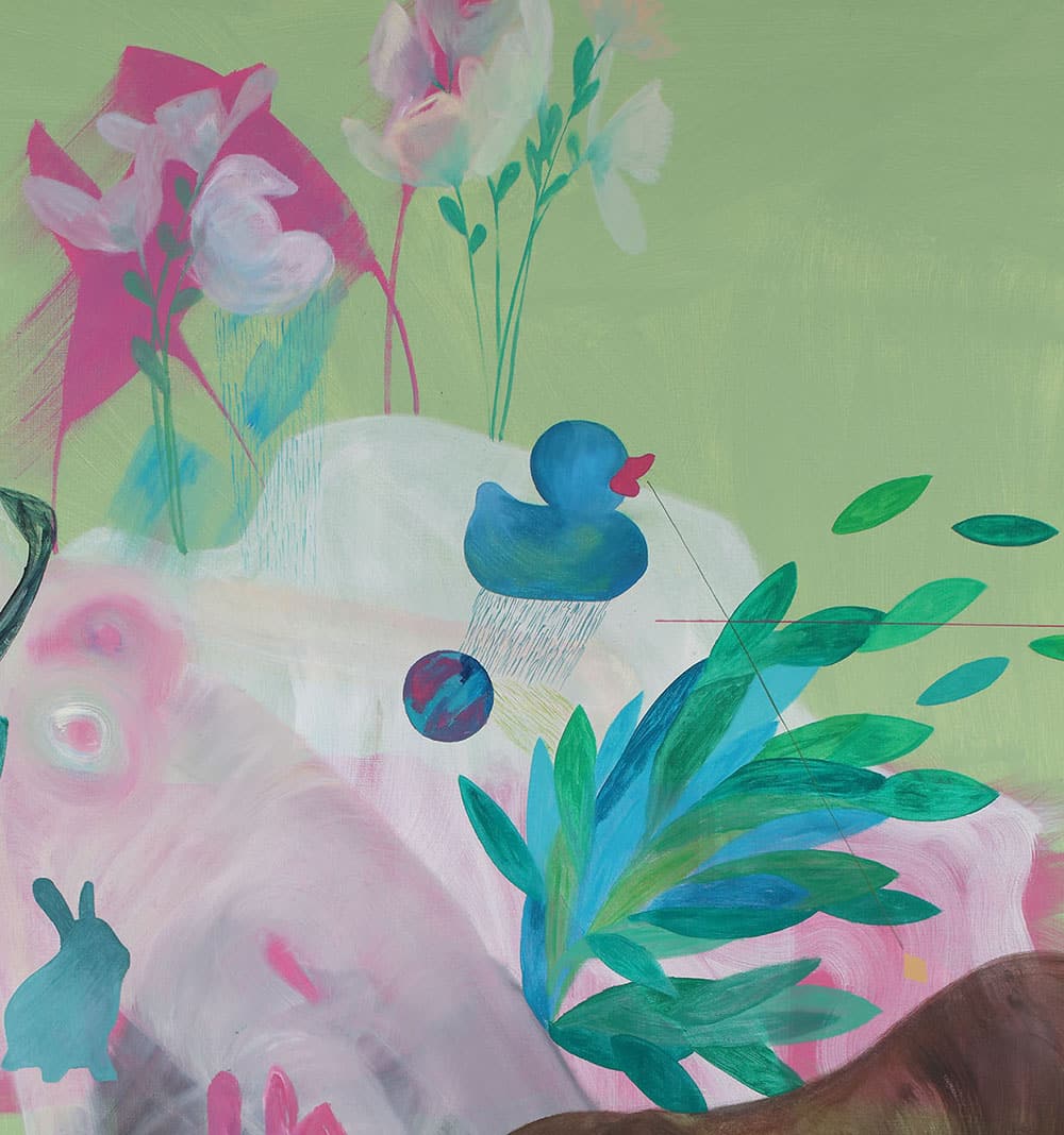 | Étiquettes | fleur|oiseau|Peinture couleurs vives|Tableau grand format|vert |