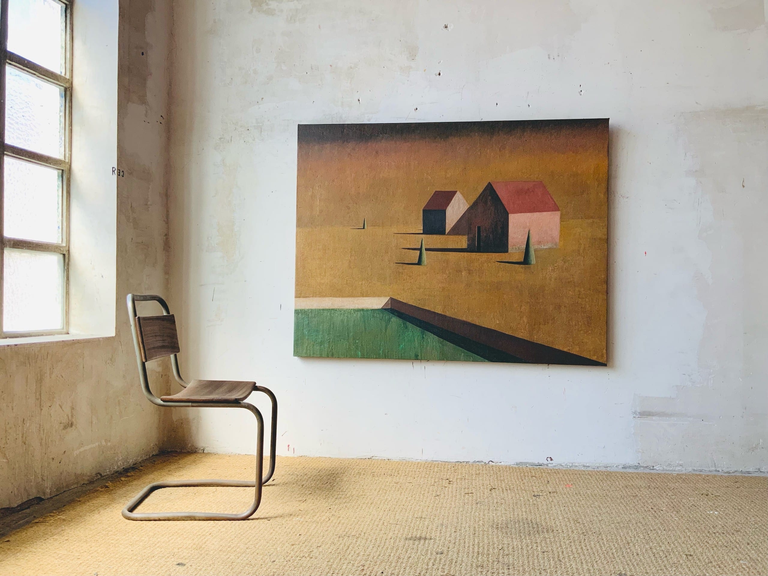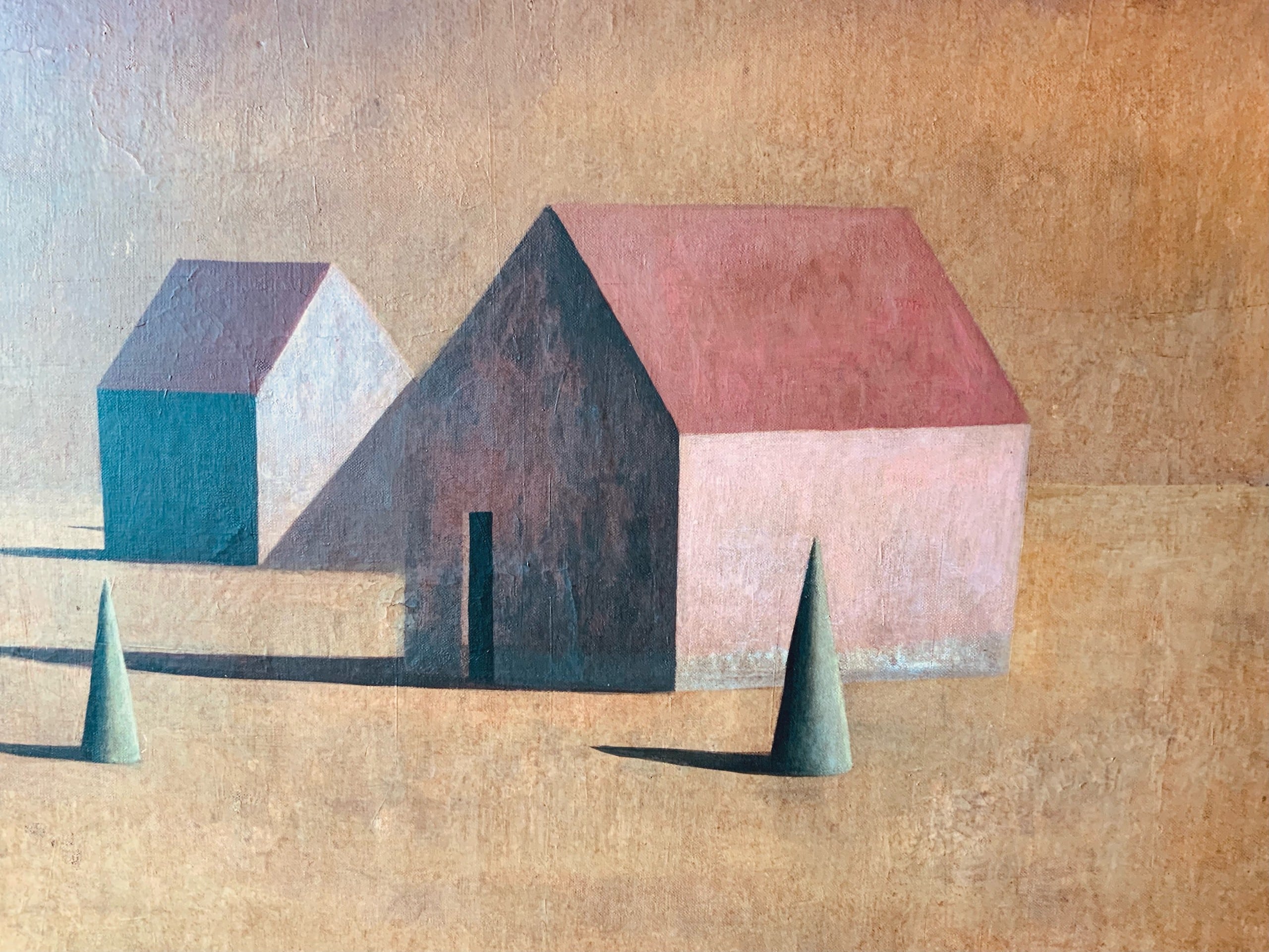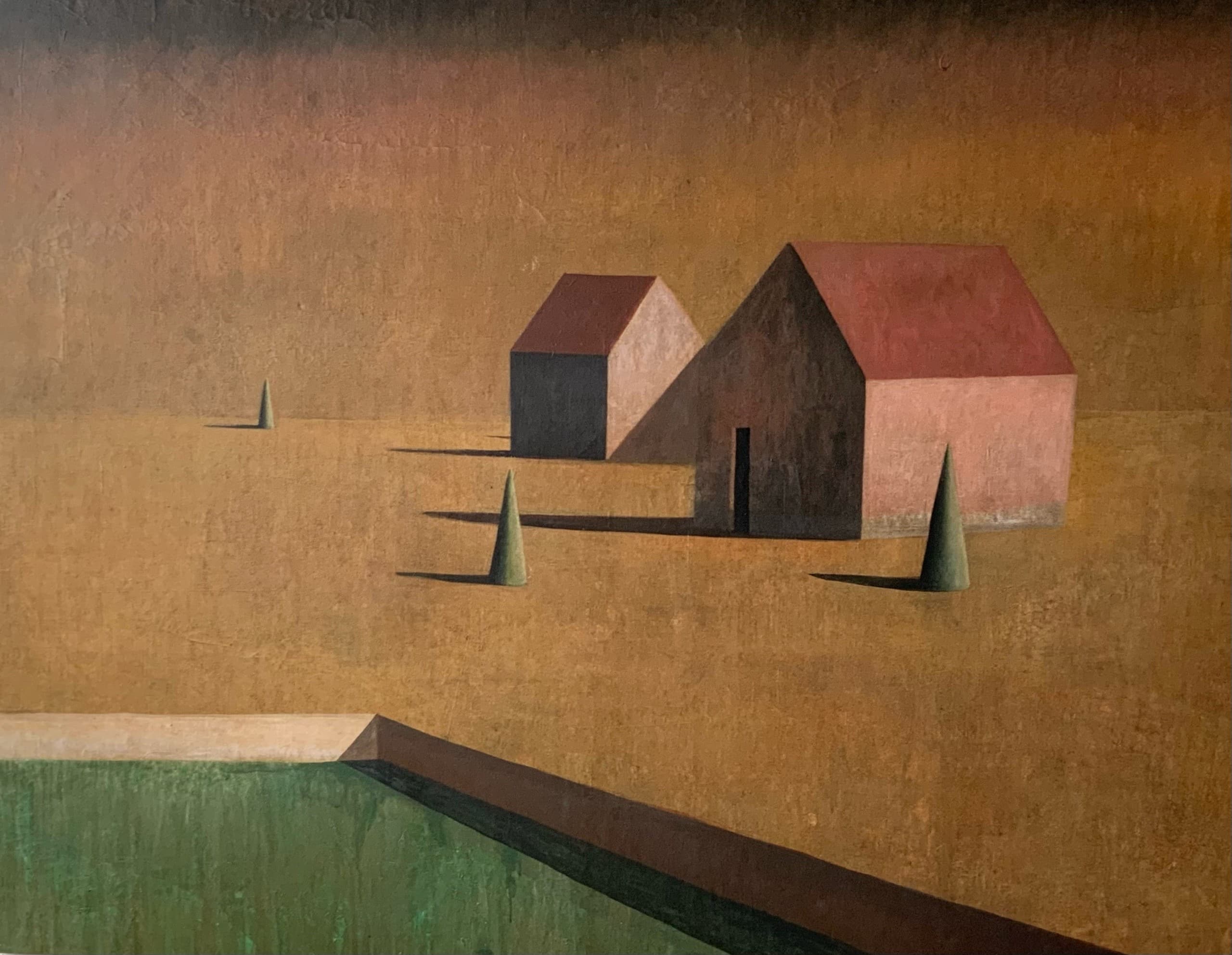 Dans ses peintures, l’artiste établit un dialogue entre l’architecture et le paysage, dans une figuration soumise à la géométrie et une atmosphère toujours énigmatique. La conception de ces espaces et la simplification des formes (poussée jusqu’aux limites de l’abstraction) traduisent une conception théâtrale de l’architecture.