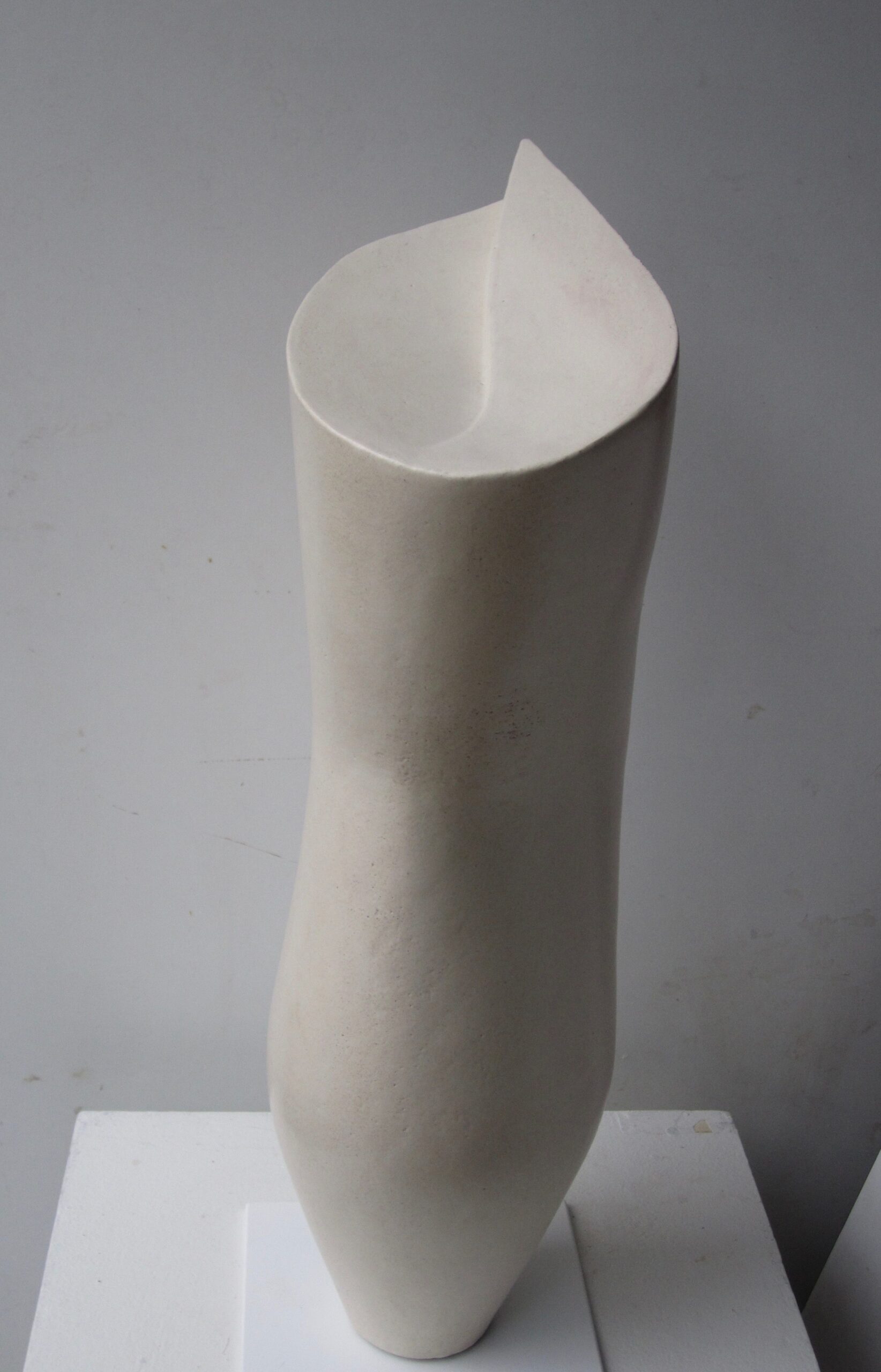 Son travail s’articule autour de l’idée d’abstraction et d’une recherche de pureté des formes. Beaucoup d’élégance et de finesse émanent de ses sculptures où la main délicate de l’artiste est venue façonner ces courbes qui se matérialisent en une oeuvre abstraite et minimaliste.