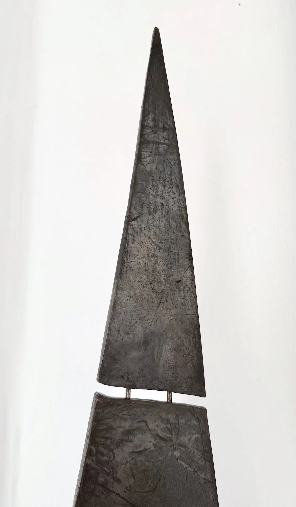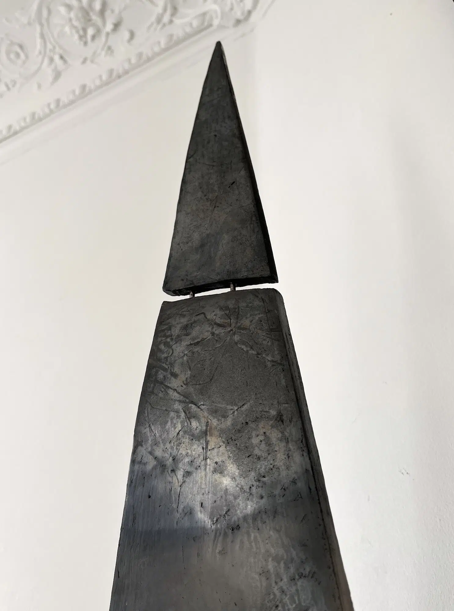 Cette sculpture se lit en deux étapes : l’artiste joue dans un premier temps sur les formes rondes et les volumes, stabilisant les fondations de l’œuvre. Puis, le regard est rapidement attiré vers le sommet de la sculpture qui s’affine et devient de plus en plus anguleuse et pointue. La forme de cette œuvre fait d’ailleurs écho au titre de la série « Ascensions ».