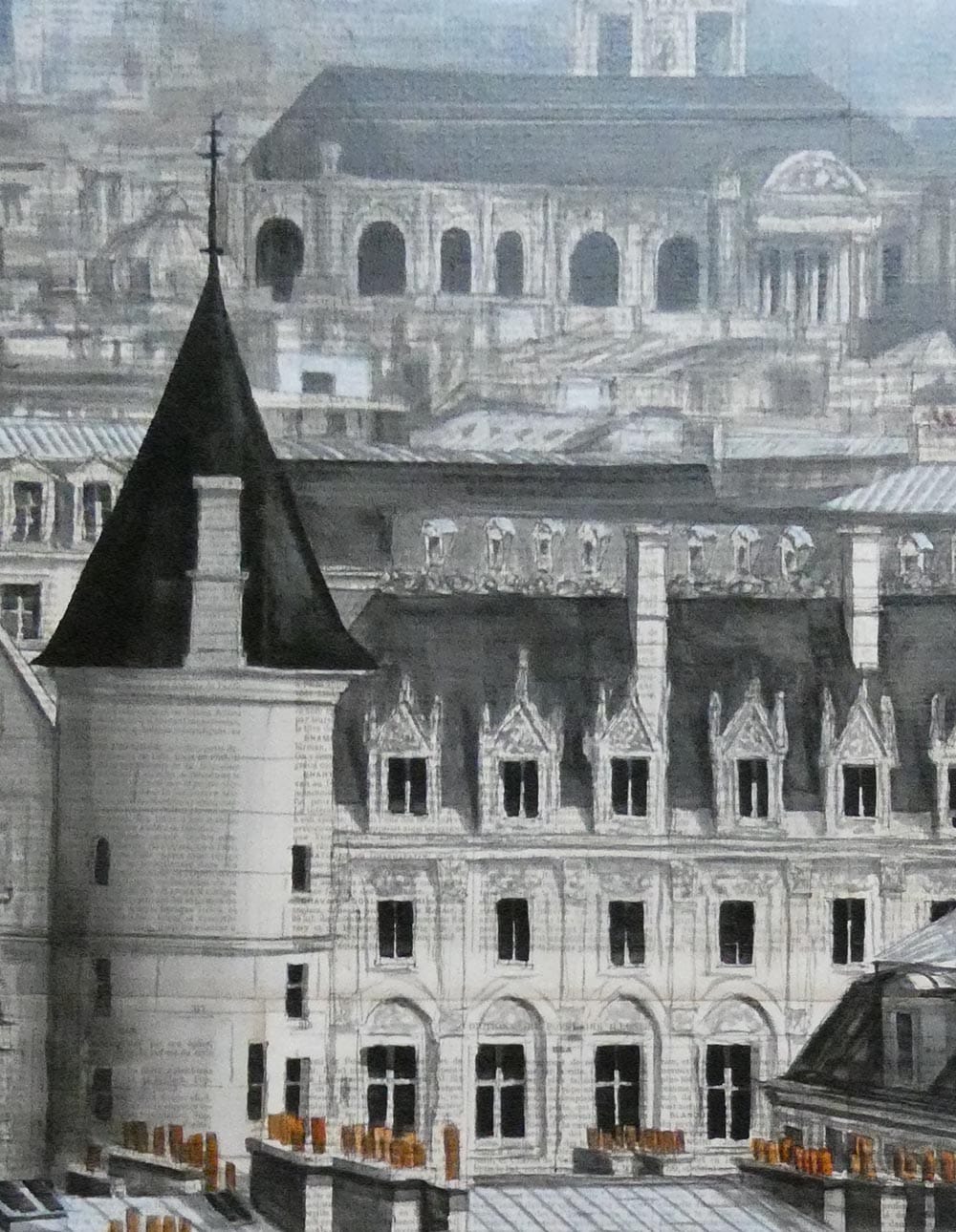 | Description | Encre et acrylique sur pages imprimées de livres anciens, marouflées sur toile |