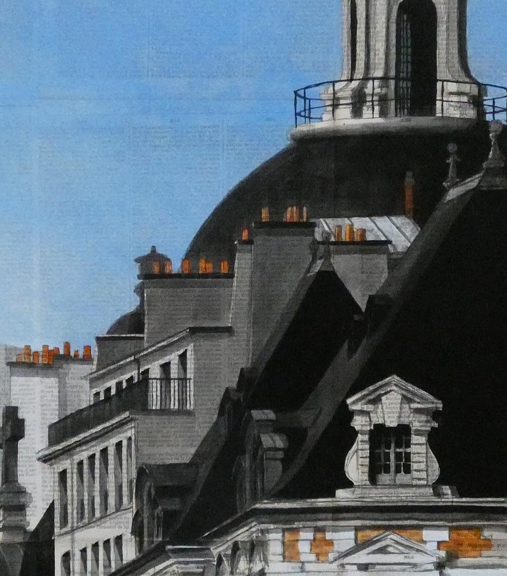 | Description | Encre et acrylique sur pages imprimées de livres anciens, marouflées sur toile. |