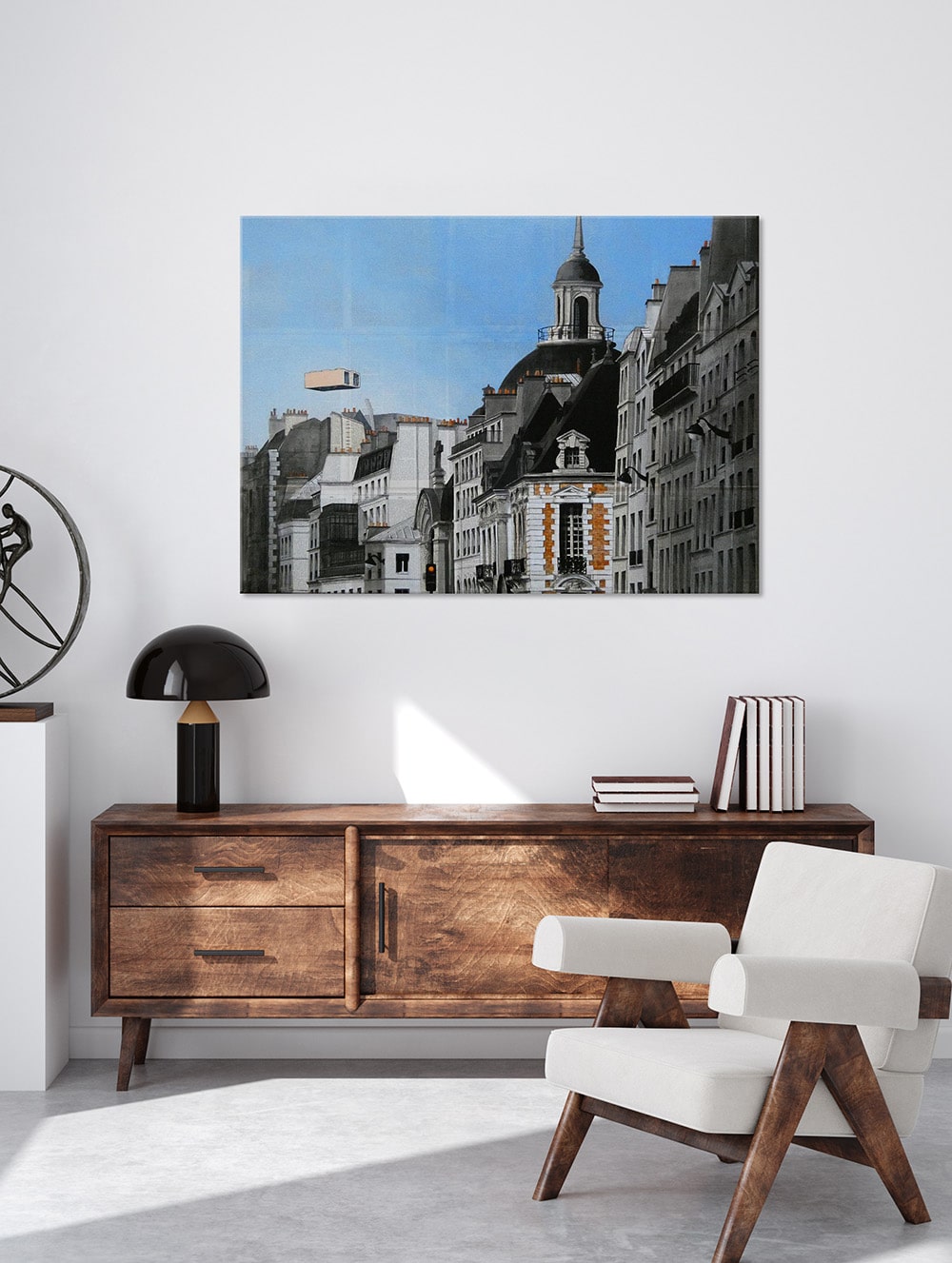 Fin 2019, une forme aux allures de Lego « apparaît » à Guillaume Chansarel lors d’une sortie dans les rues d’un Paris bientôt confiné. Cette forme prend alors le sens d’un idéal illusoire pour l’Homme de la ville : elle est une alternative aux petits espaces, et permettrait de s’évader. L’Illusion d’un idéal deviendra l’Epreuve de l’irréel dès lors que le quotidien des Parisiens évoluera au gré des confinements, se faisant marqueur de l’irréalité des évènements en cours.