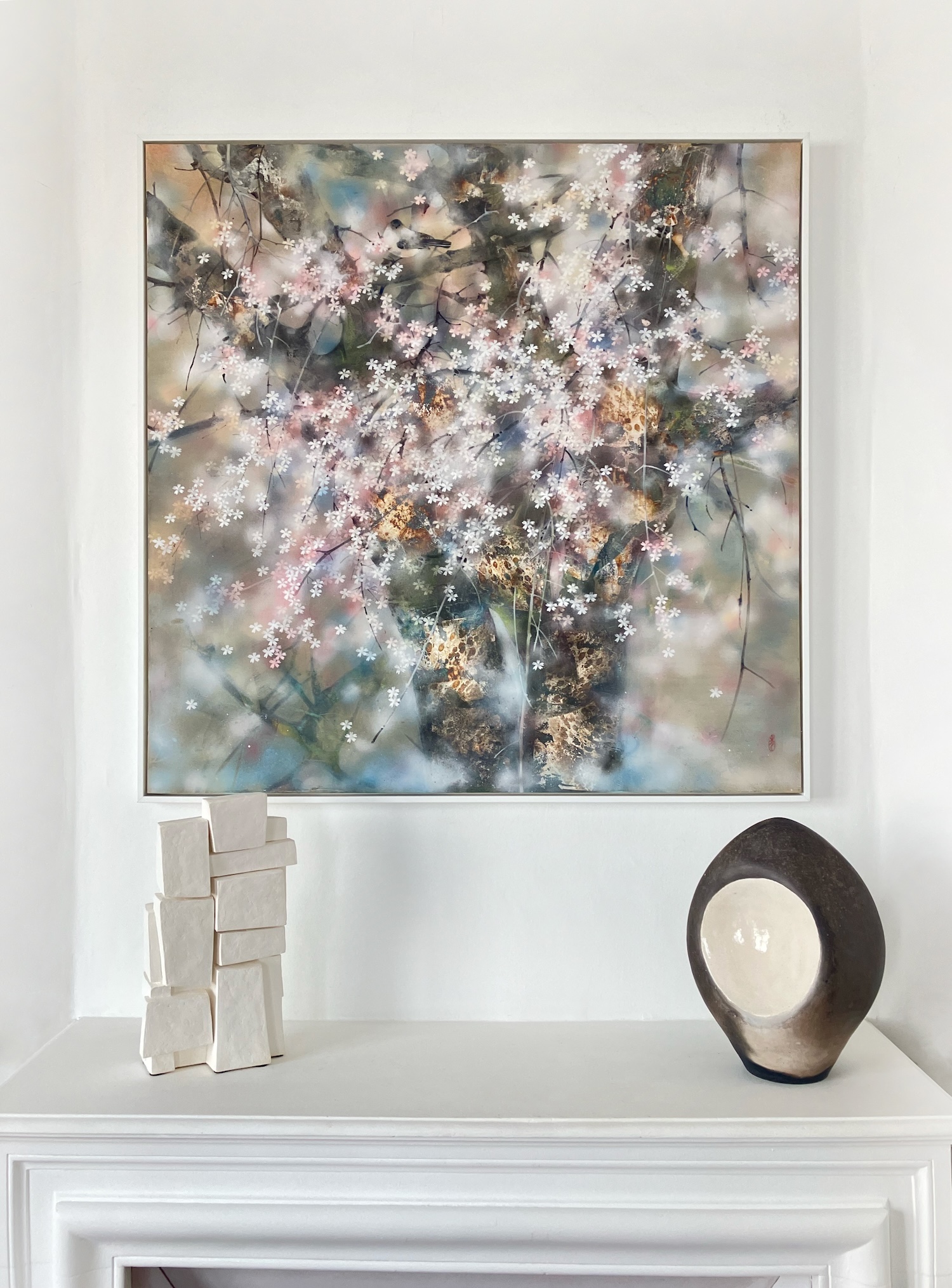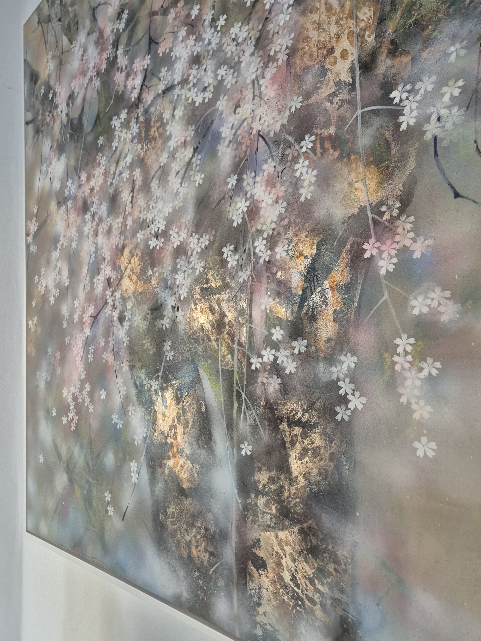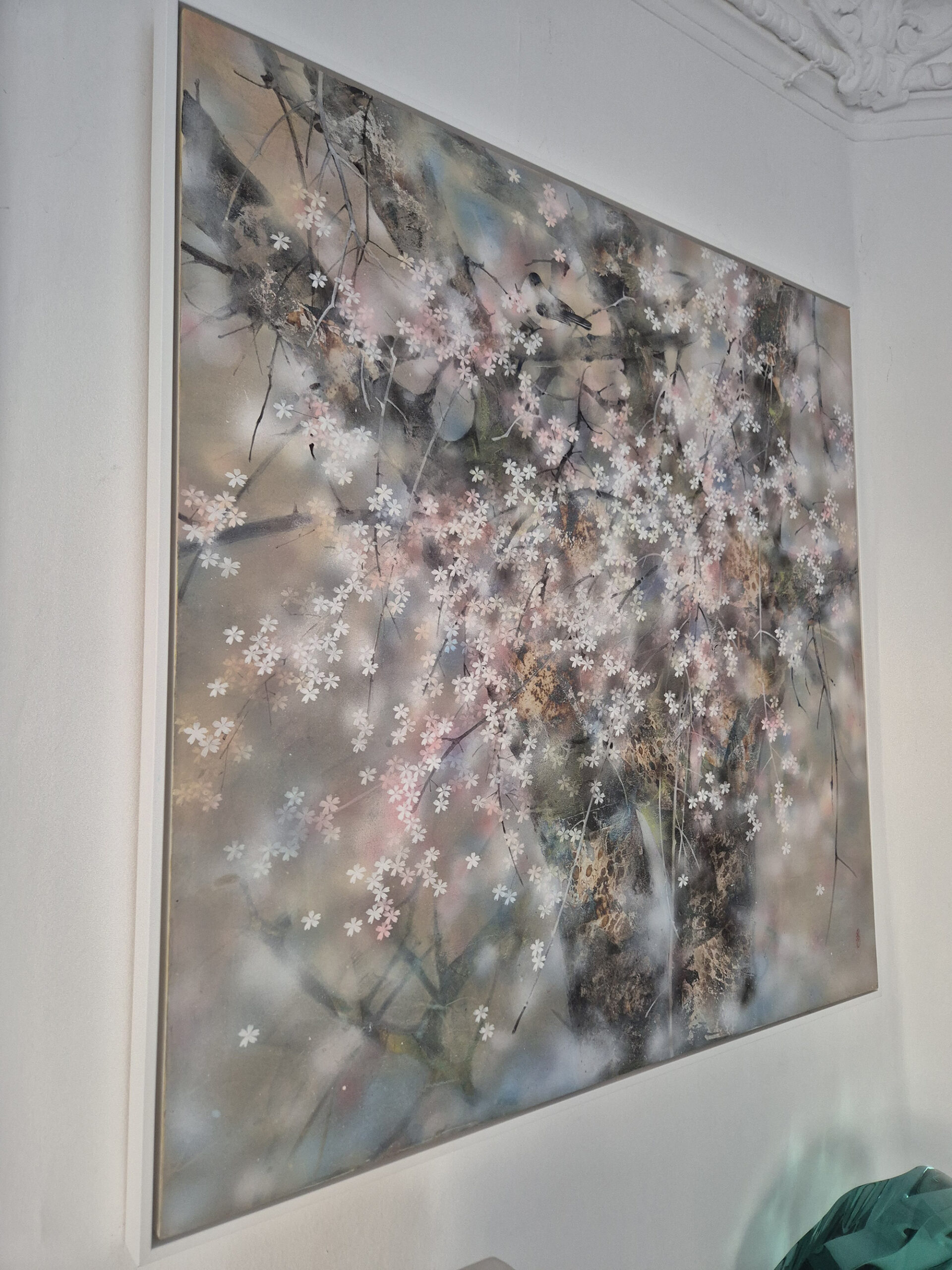 Éveil est une œuvre réalisée par l’artiste contemporain d’origine taïwanaise avec des pigments minéraux et de la feuille d’argent.