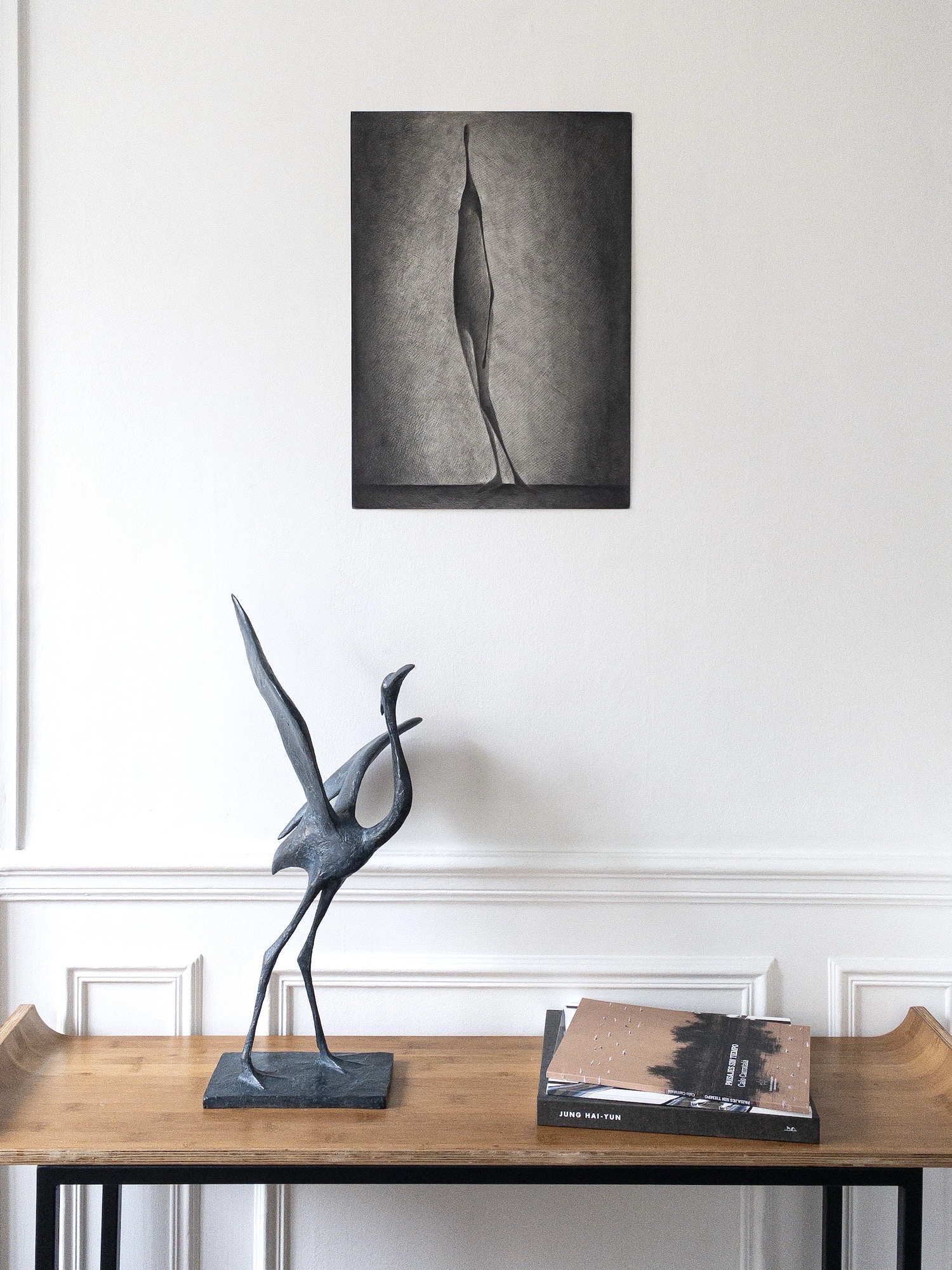 Pierre Yermia a développé un vocabulaire personnel qui rend ses figures humaines et animales immédiatement reconnaissables. Qu’il s’agisse de personnages isolés ou en groupe, debout ou allongés, ou bien de taureaux, d’oiseaux ou de félins, l’artiste s’applique toujours à étirer leurs proportions jusqu’à atteindre un point d’équilibre fragile mettant la sculpture en tension entre stabilité et légèreté. Le travail de Pierre Yermia, des petits formats jusqu’aux œuvres monumentales, fait l’objet de commandes ambitieuses et il est régulièrement exposé en France et à l’étranger.