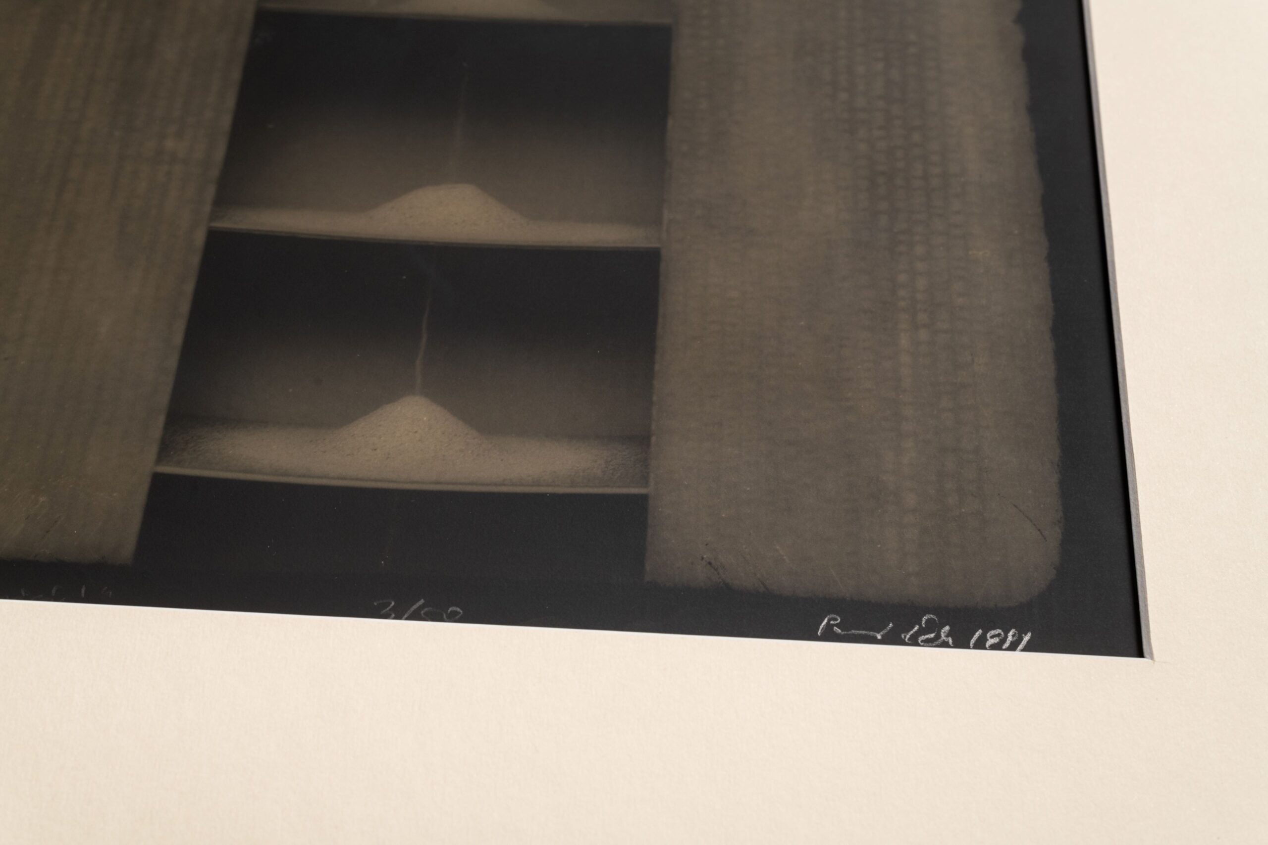 L’œuvre est vendue montée avec un passe-partout seul (pièce en papier épais de couleur claire). Dimensions de la photographie montée avec le passe-partout : 40 x 40 cm. Dimensions du tirage seul : 28 x 28 cm.