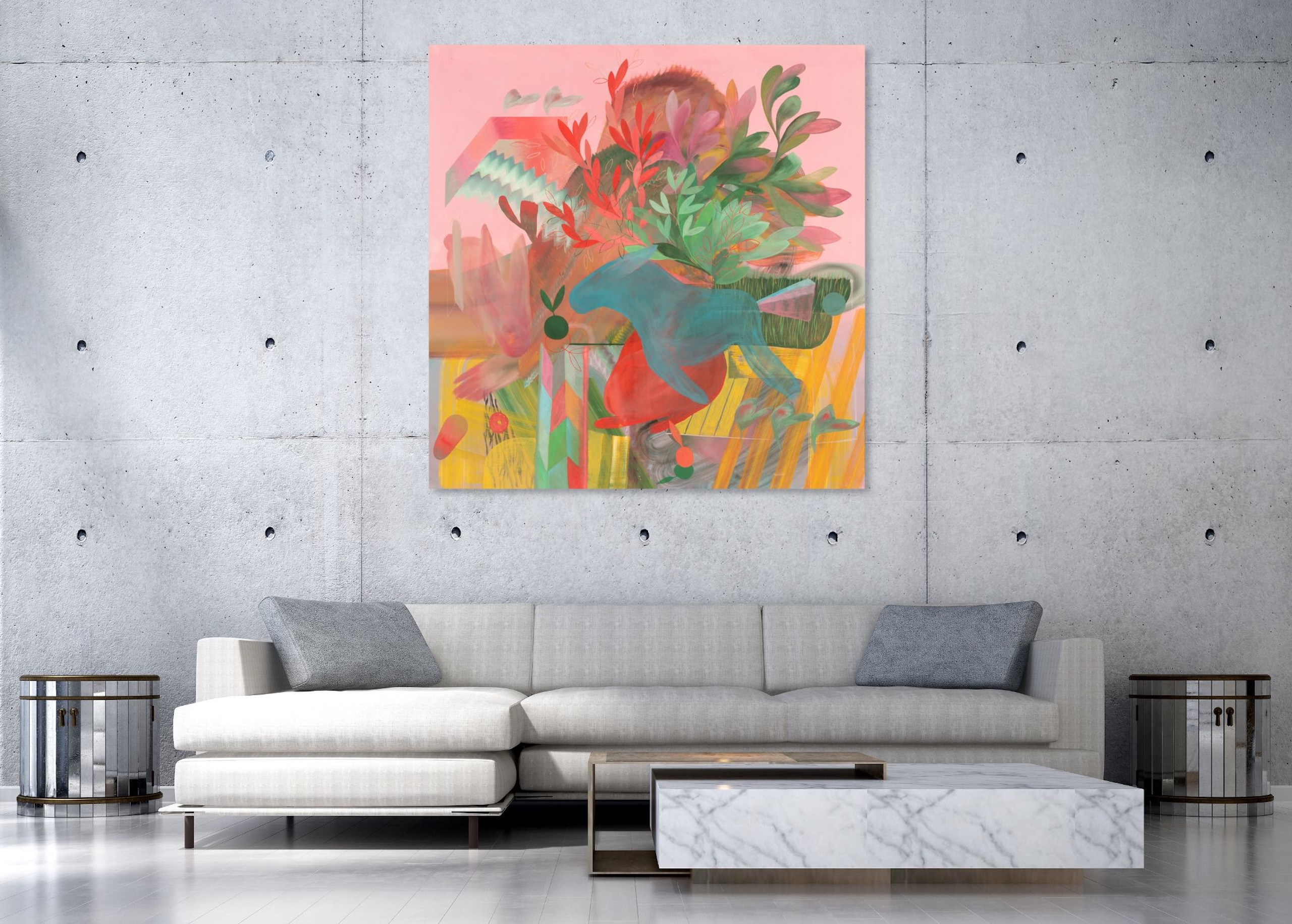 | Étiquettes | jaune|Peinture couleurs vives|rose|Tableau grand format |