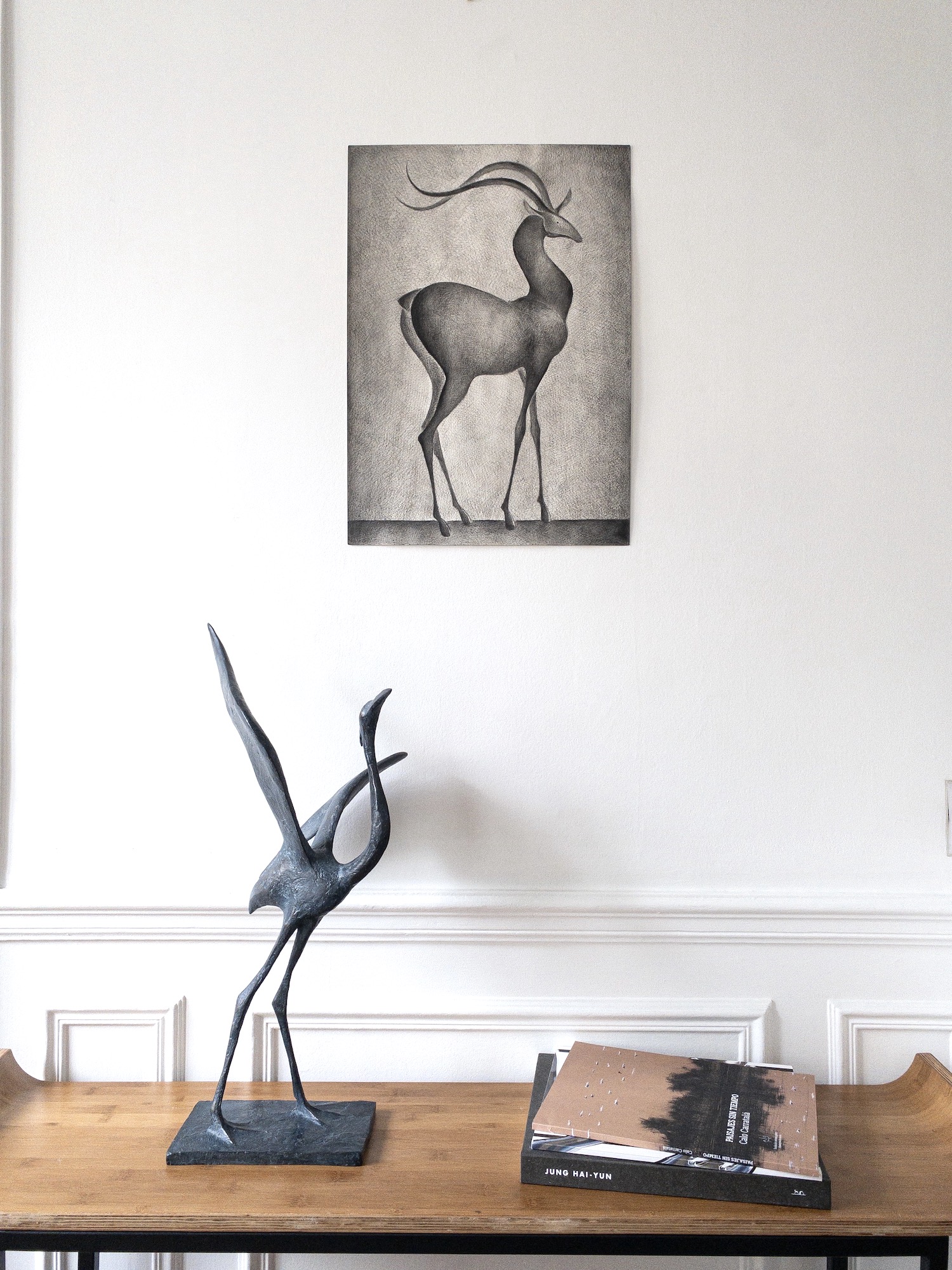 Gazelle II est un dessin de l’artiste contemporain français Pierre Yermia célébrant le règne animal.