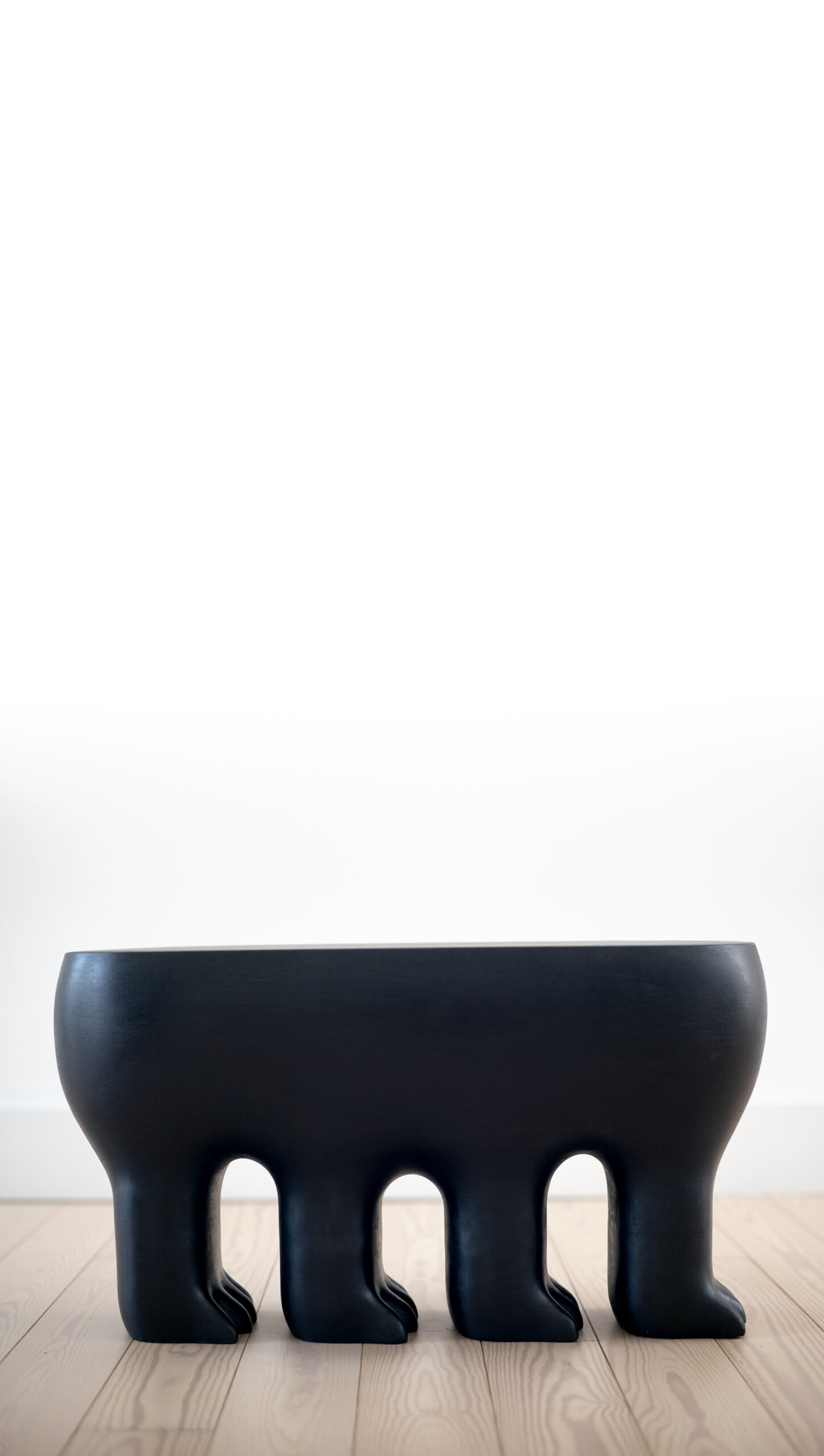 Gogol est la première œuvre utilitaire de l’artiste Marcelo Martin Burgos. Avec ses quatre pieds alignés et orientés dans la même direction, cette nouvelle pièce s’inscrit pleinement dans son univers visuel, qui mélange humour, pop culture et référence au monde de l’enfance. Comme l’illustre sa série de sculptures en bronze poli intitulée Les Monstres et plébiscitée par les collectionneurs d’art, l’artiste puise son inspiration dans les créatures fantastiques qui peuplent les contes et les rêves des enfants.