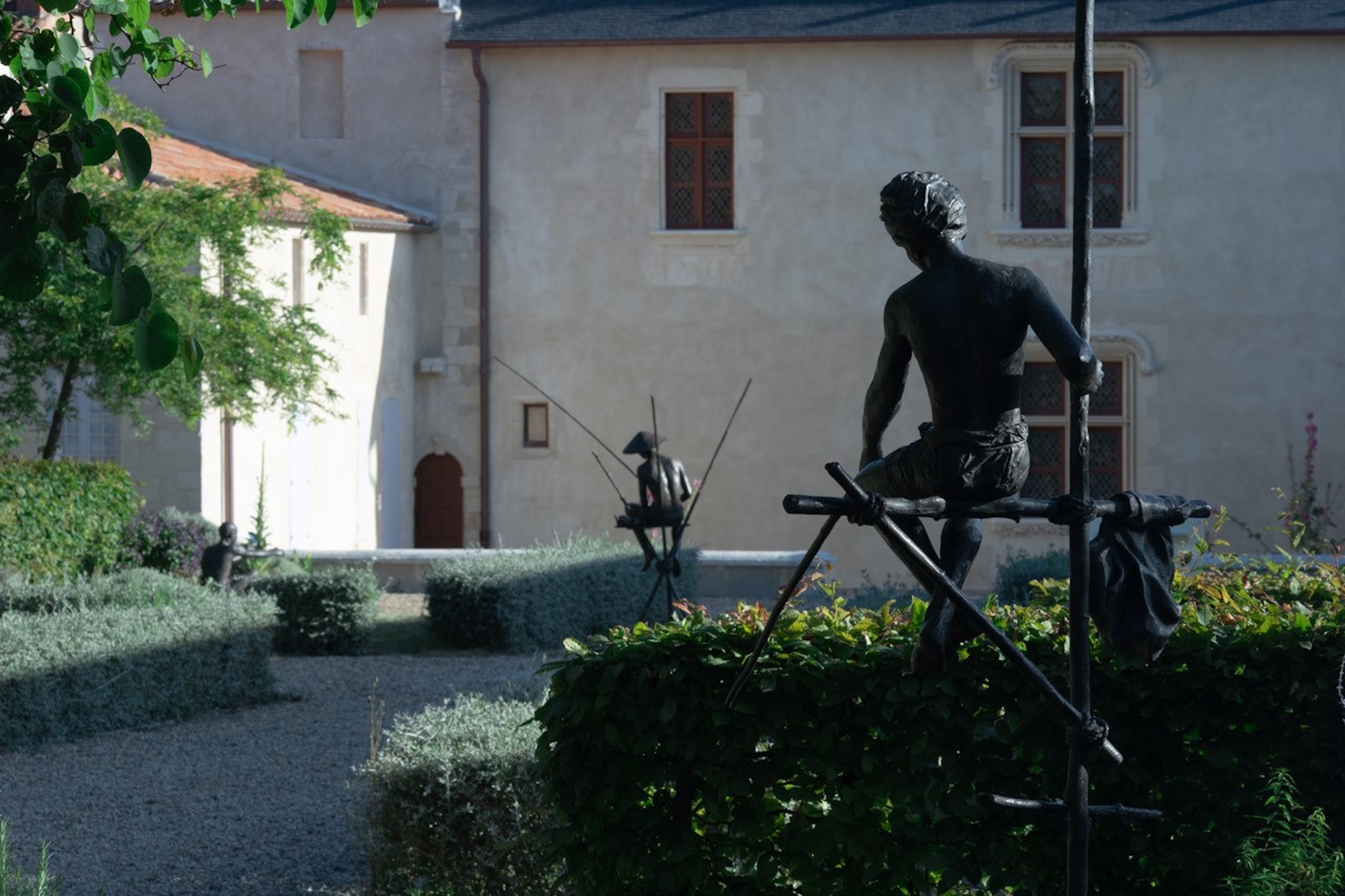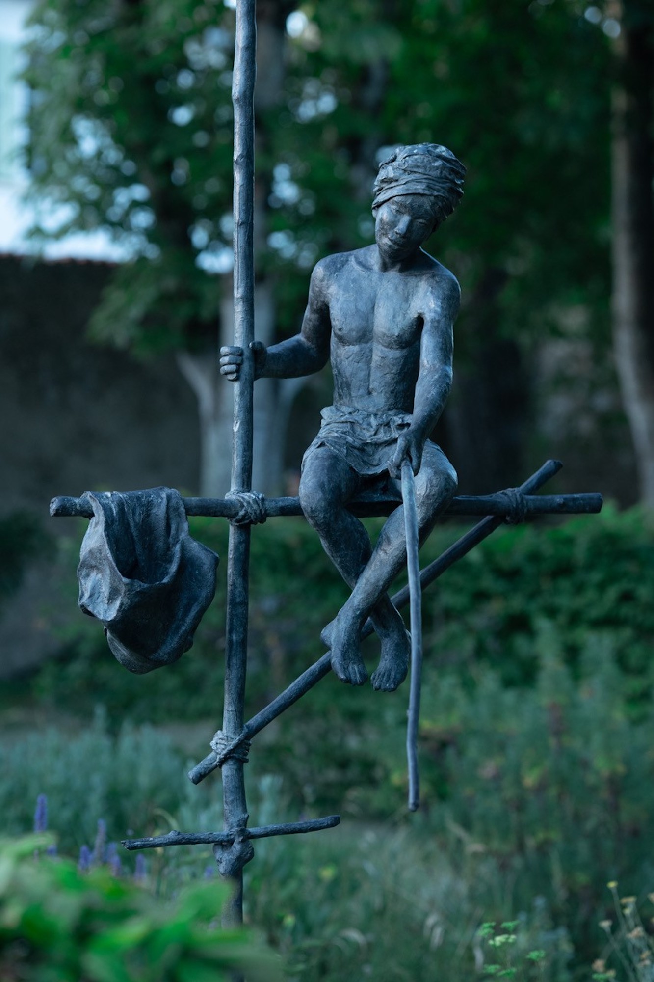 Grand Pêcheur sur échasse est une sculpture en bronze de l’artiste contemporaine française Marine de Soos. Cette œuvre d’art figuratif représente un homme torse nu et simplement vêtu d’un pagne et d’un turban. Il est assis sur une structure en pilotis, en train de pêcher. Inspirée d’une scène de vie imaginaire ou vécue par l’artiste, cette figure de pêcheur en bronze de grande taille peut être installée à l’extérieur.