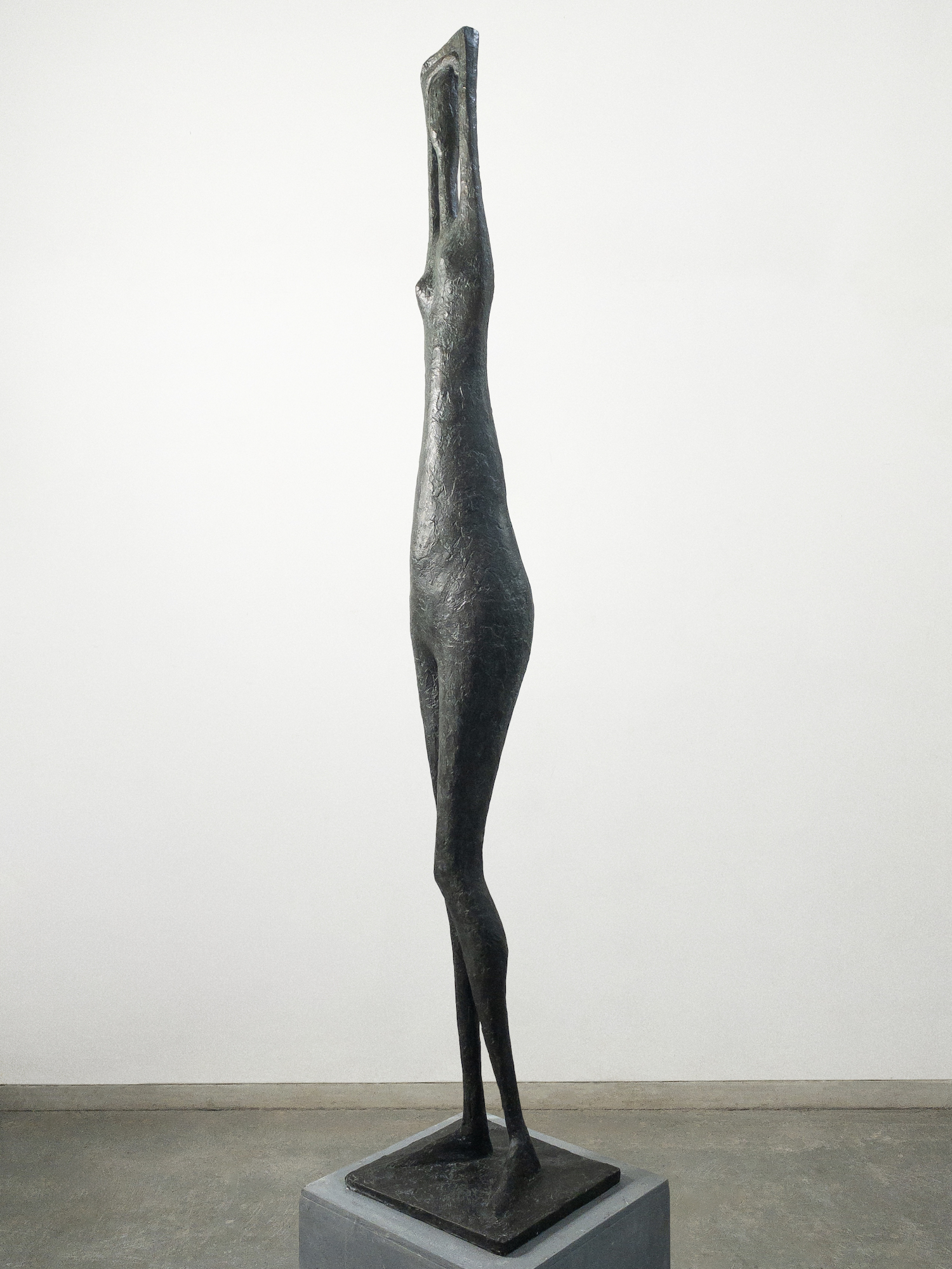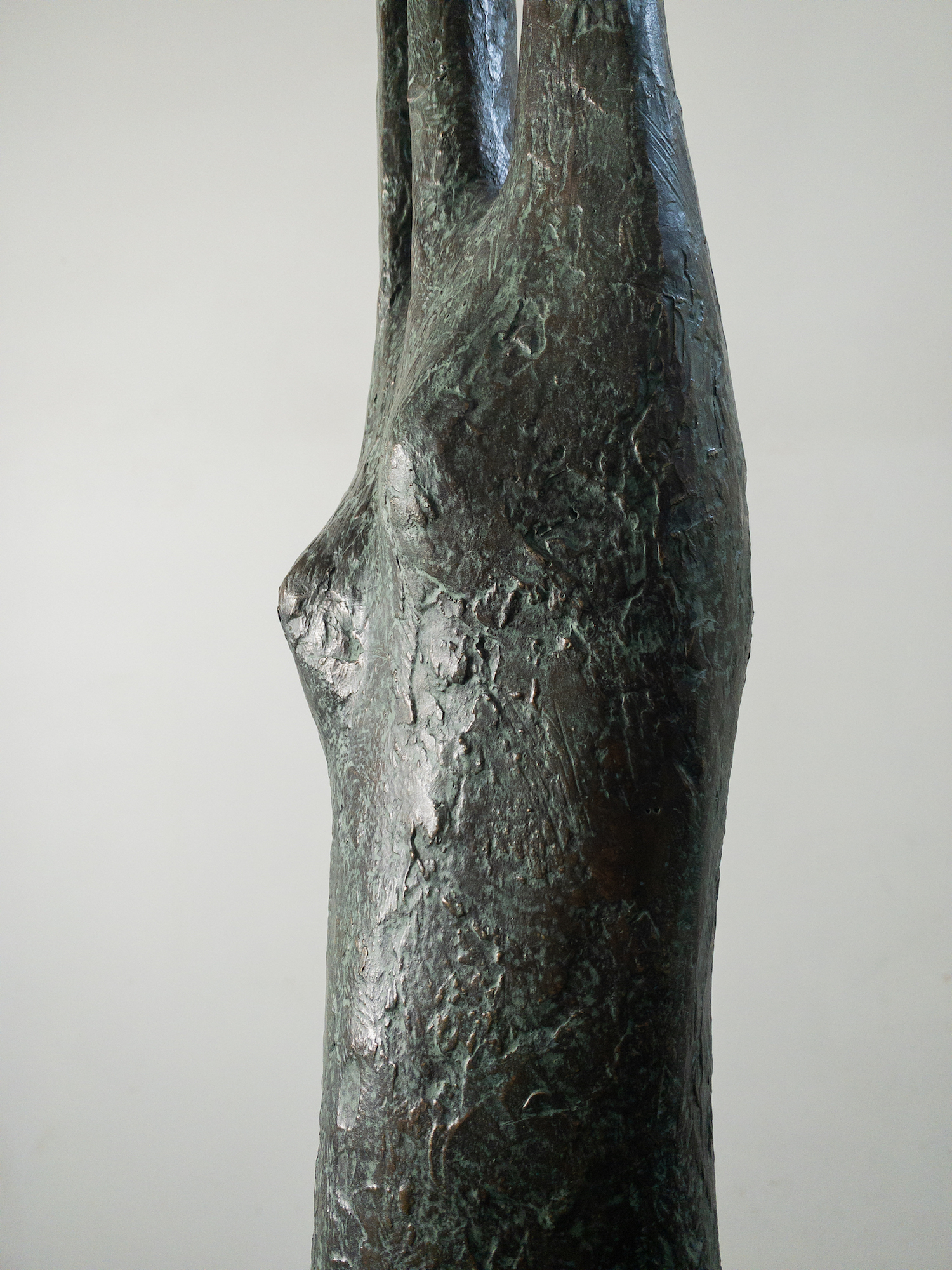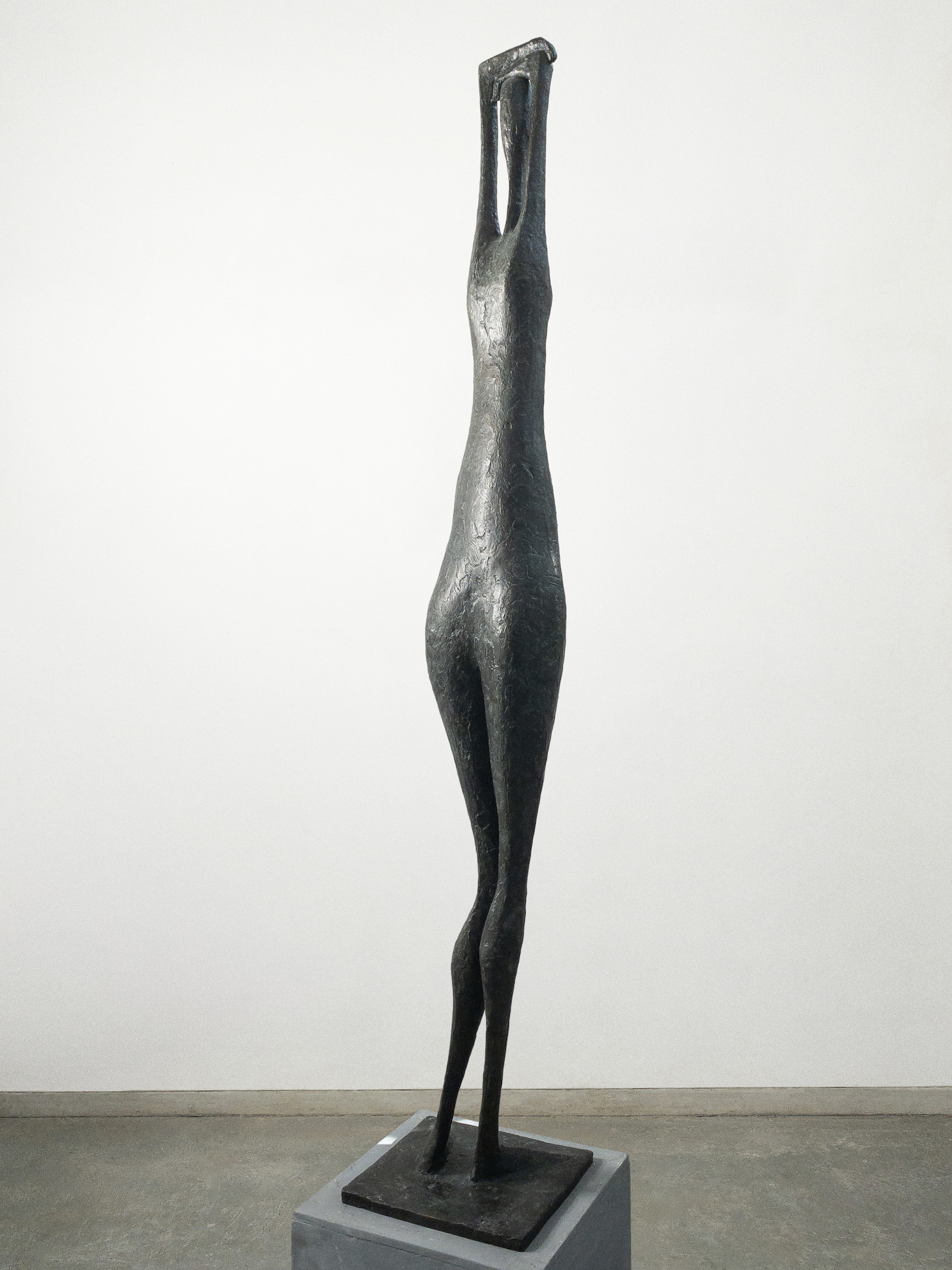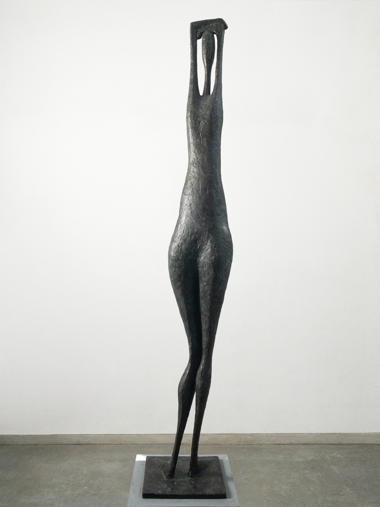 Grande figure debout bras levés II est une sculpture en bronze de l’artiste français Pierre Yermia, représentant une figure humaine.