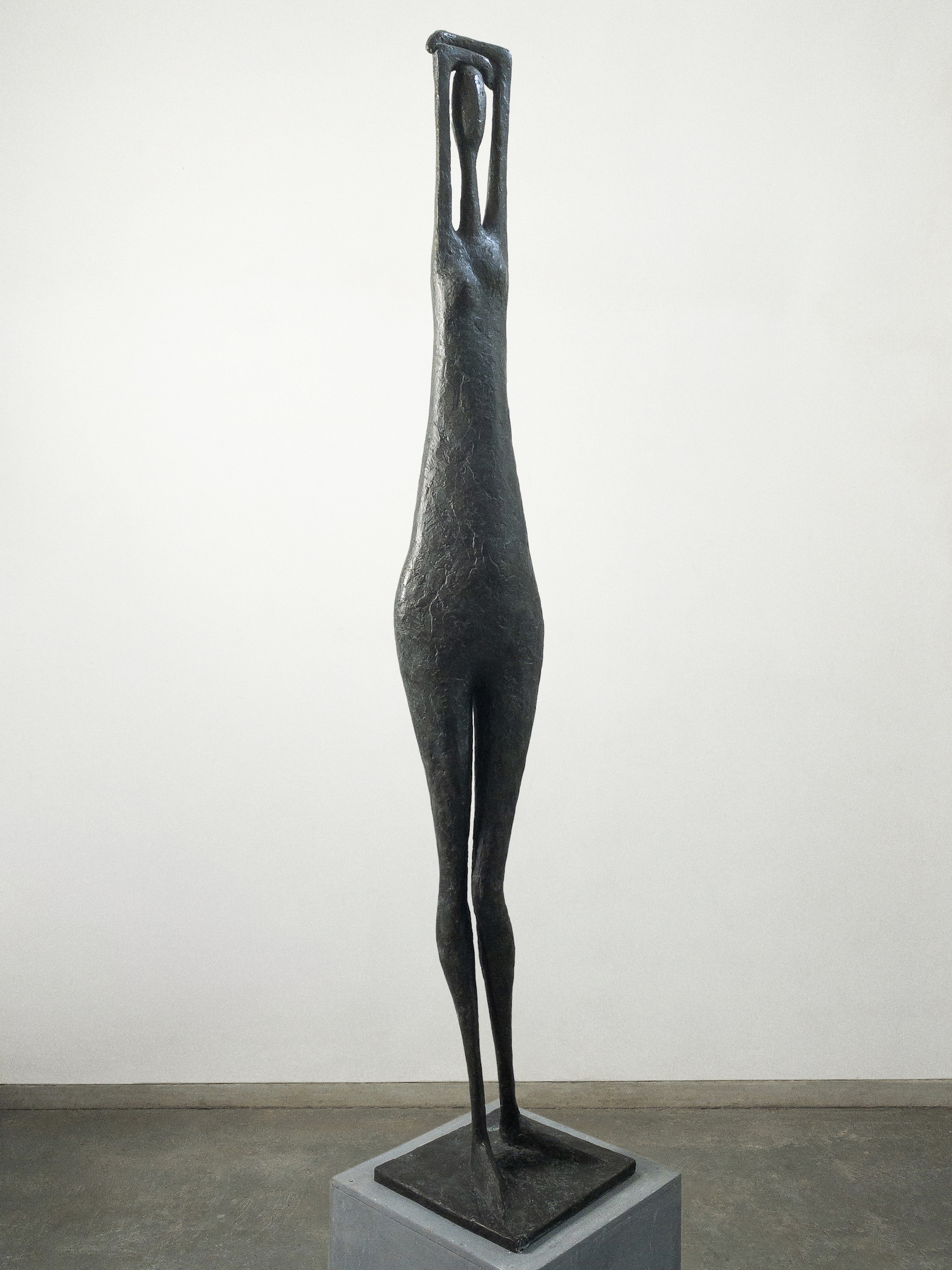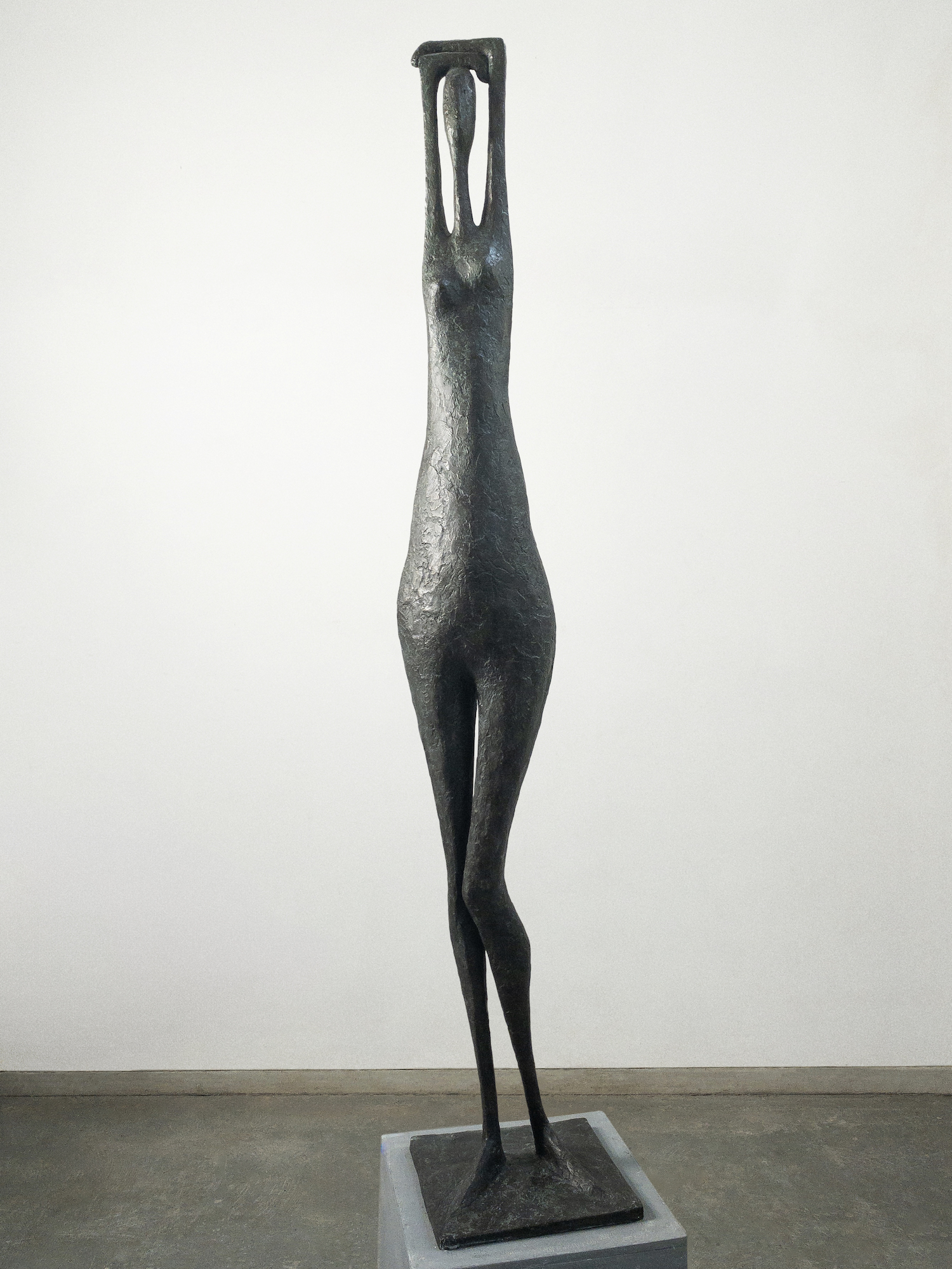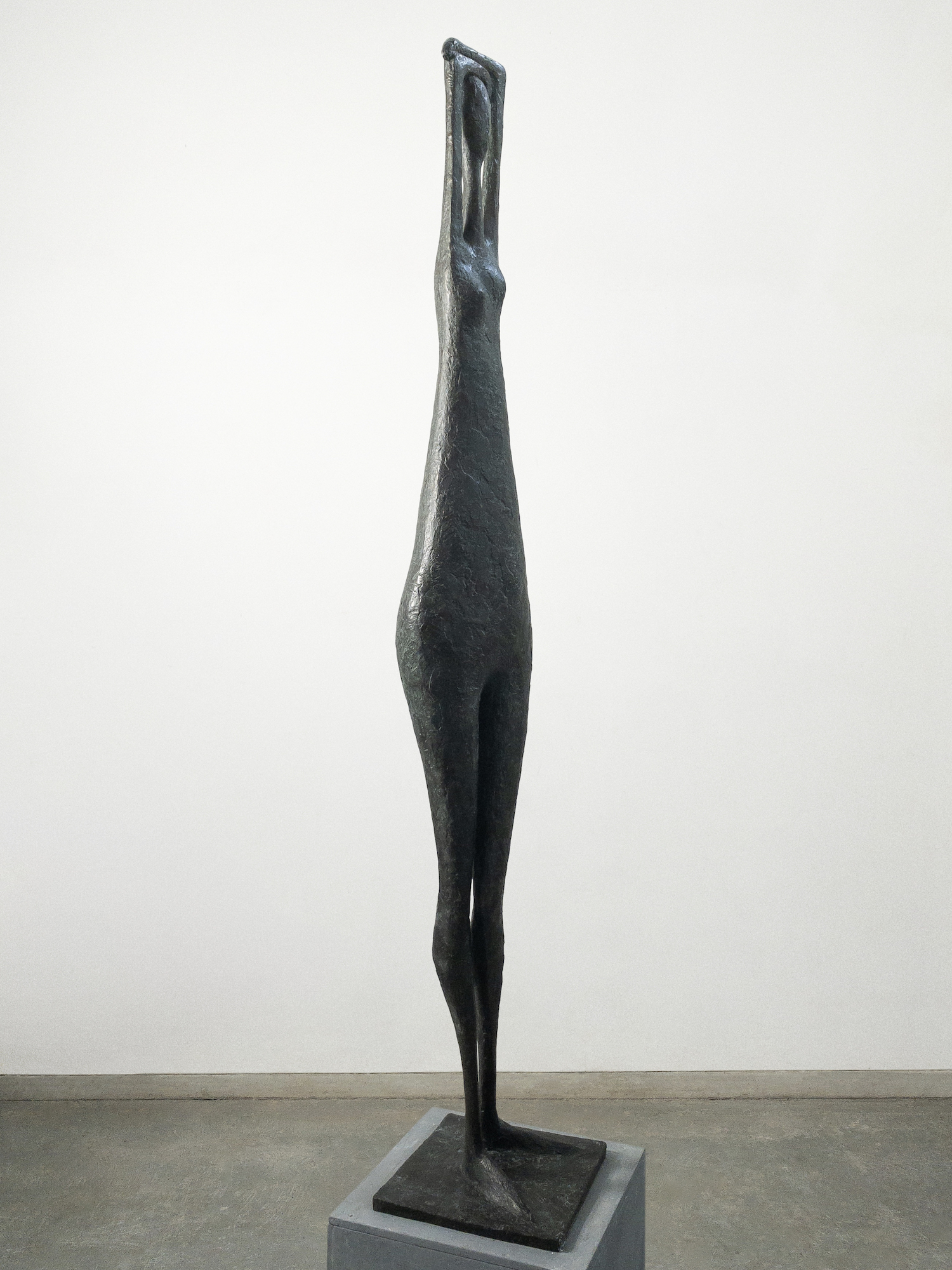 Grande figure debout bras levés II est une sculpture en bronze de l’artiste français Pierre Yermia, représentant une figure humaine.