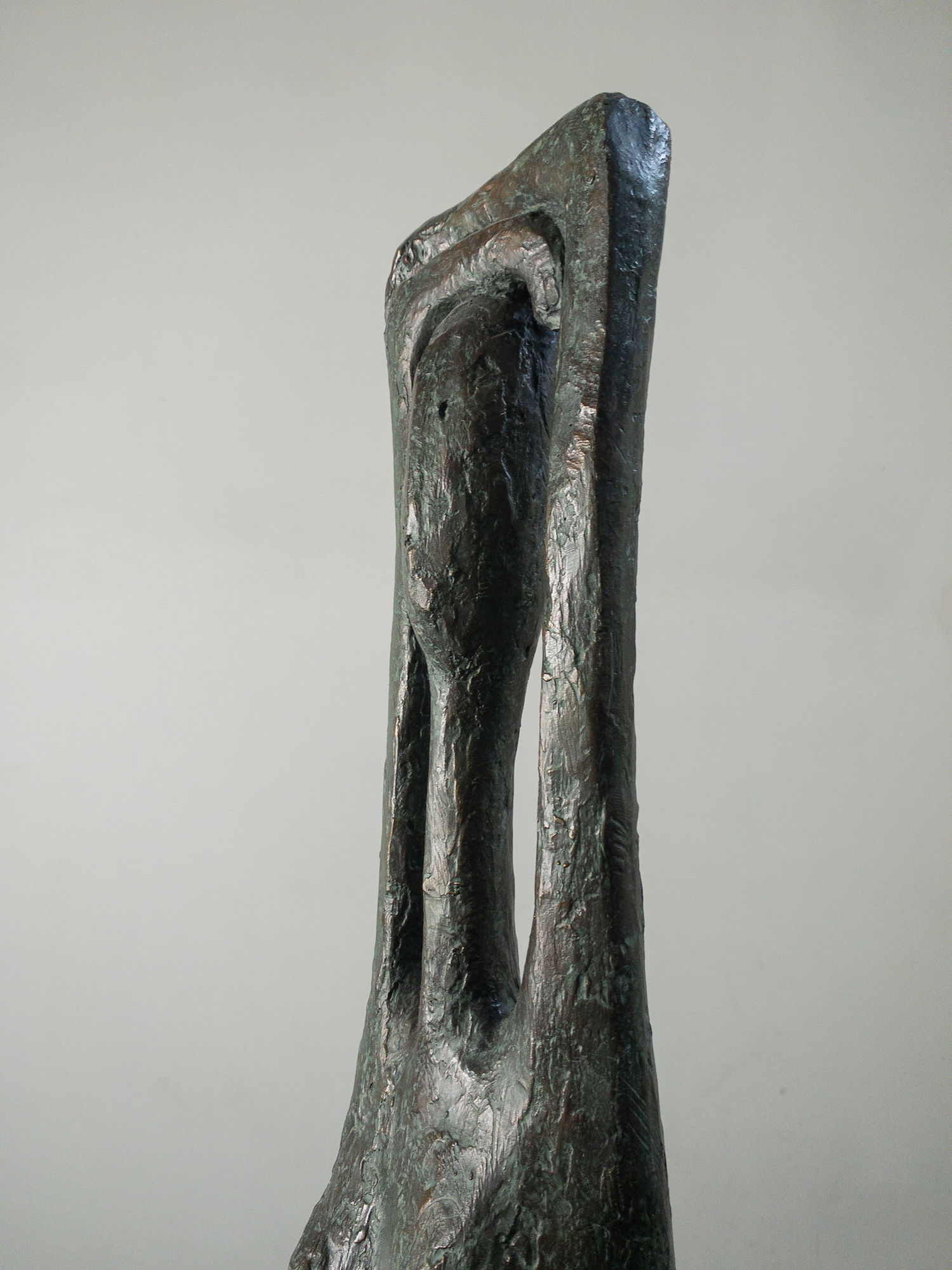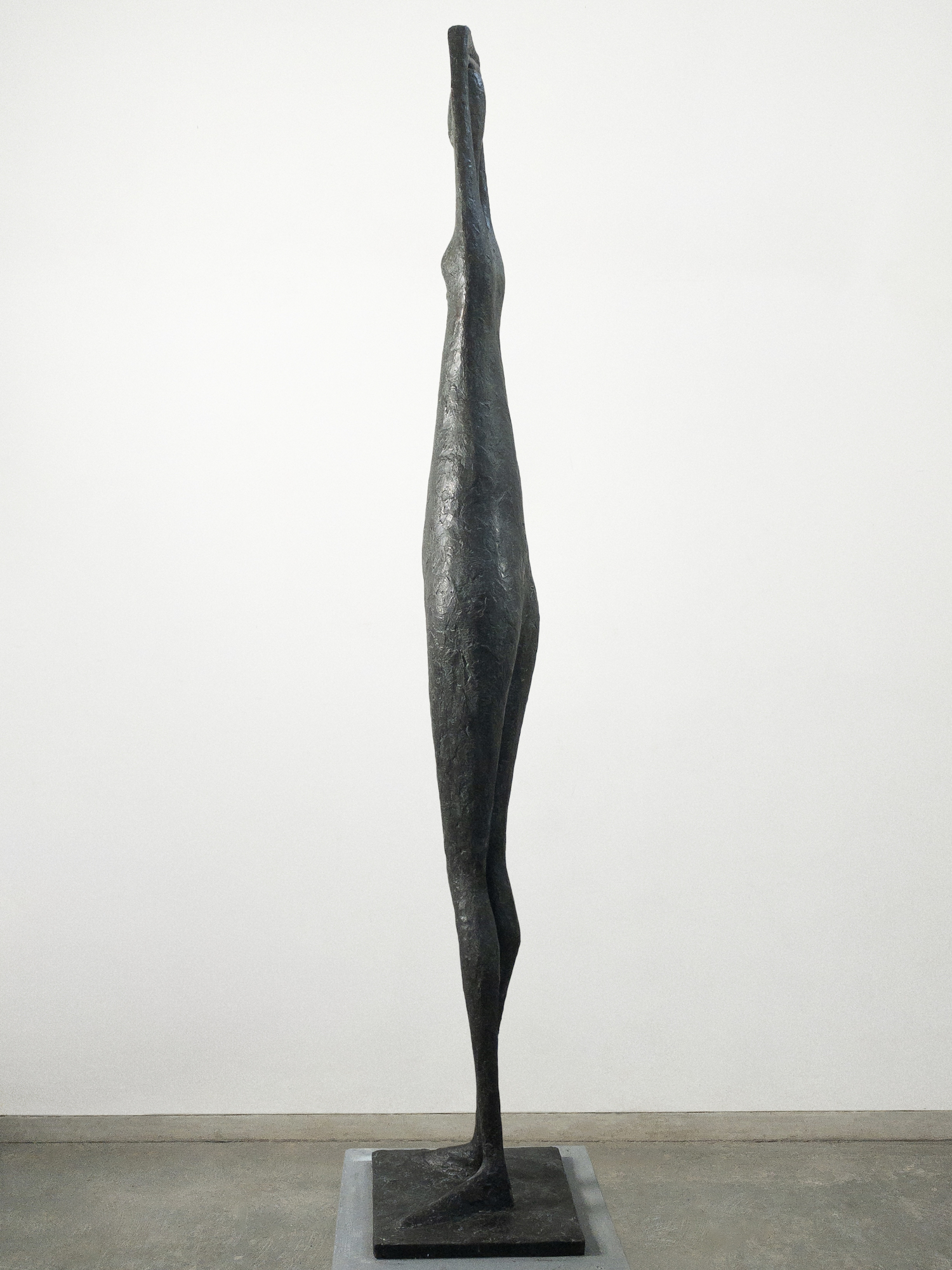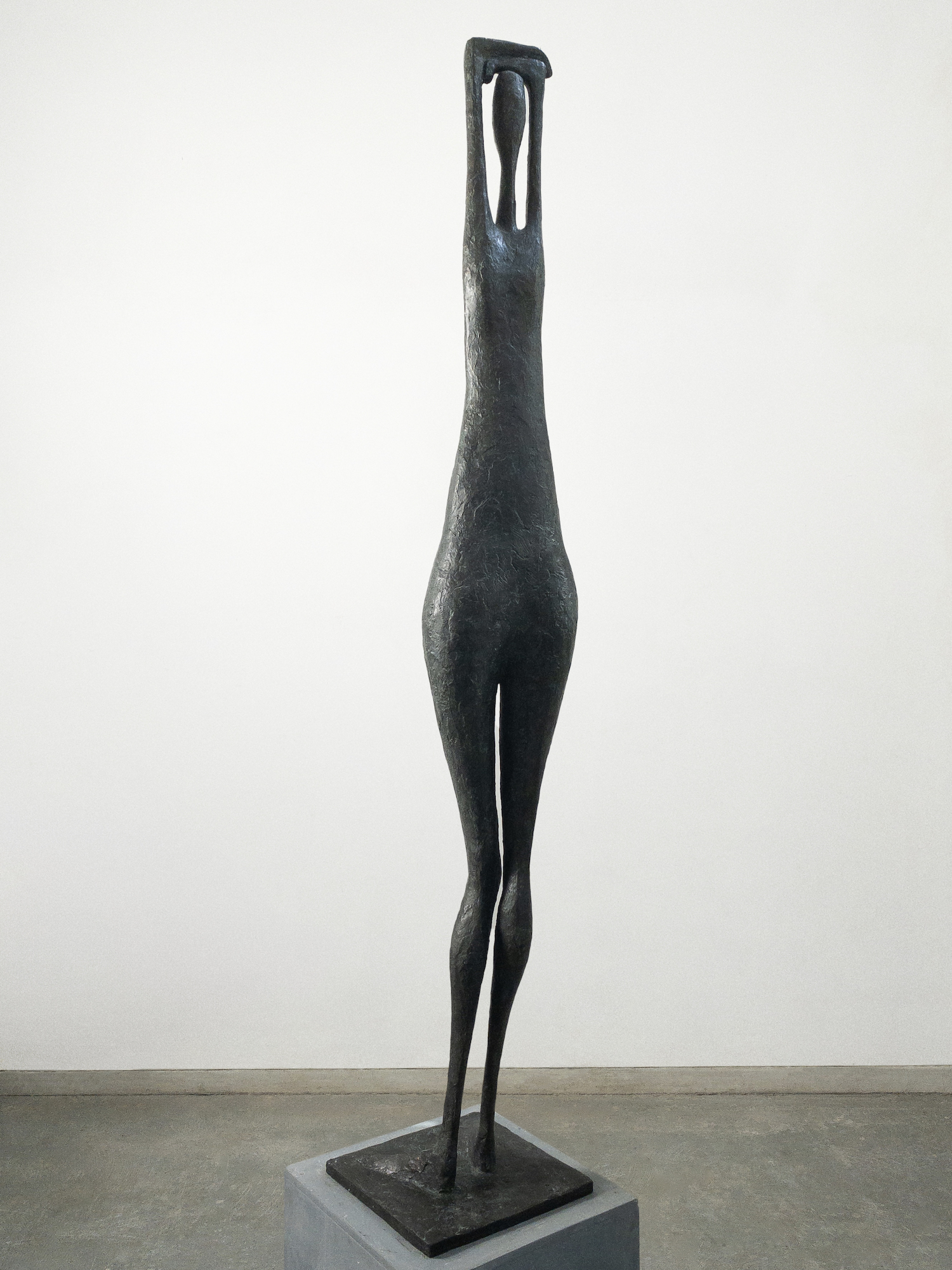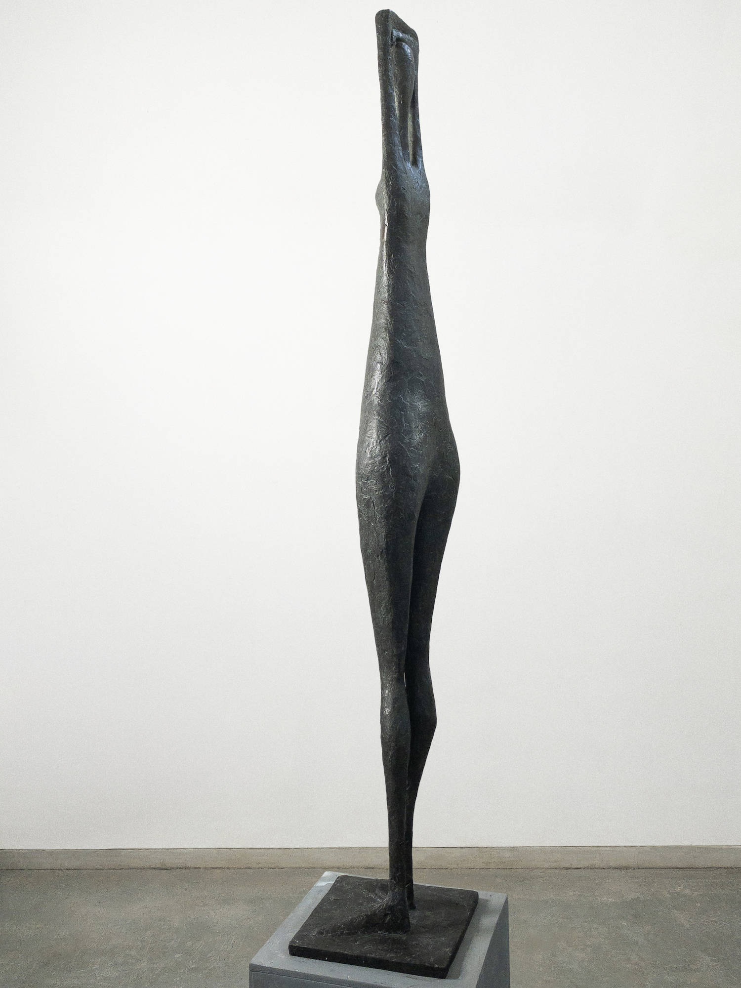 Grande figure debout bras levés II est une sculpture en bronze de l’artiste français Pierre Yermia, représentant une figure humaine.