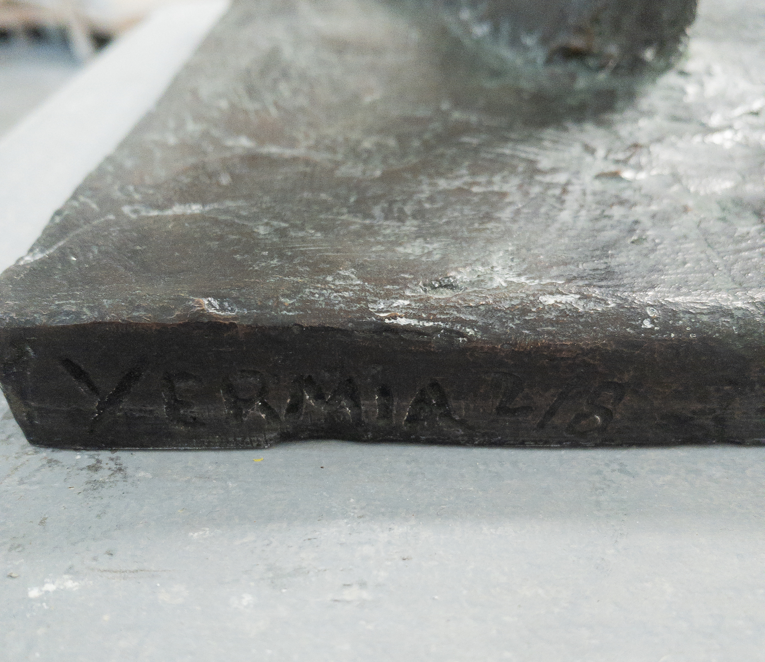 Pierre Yermia a développé un vocabulaire personnel qui rend ses figures humaines et animales immédiatement reconnaissables. Qu’il s’agisse de personnages isolés ou en groupe, debout ou allongés, ou bien de taureaux, d’oiseaux ou de félins, l’artiste s’applique toujours à étirer leurs proportions jusqu’à atteindre un point d’équilibre fragile mettant la sculpture en tension entre stabilité et légèreté. Le travail de Pierre Yermia, des petits formats jusqu’aux œuvres monumentales, fait l’objet de commandes ambitieuses et il est régulièrement exposé en France et à l’étranger.