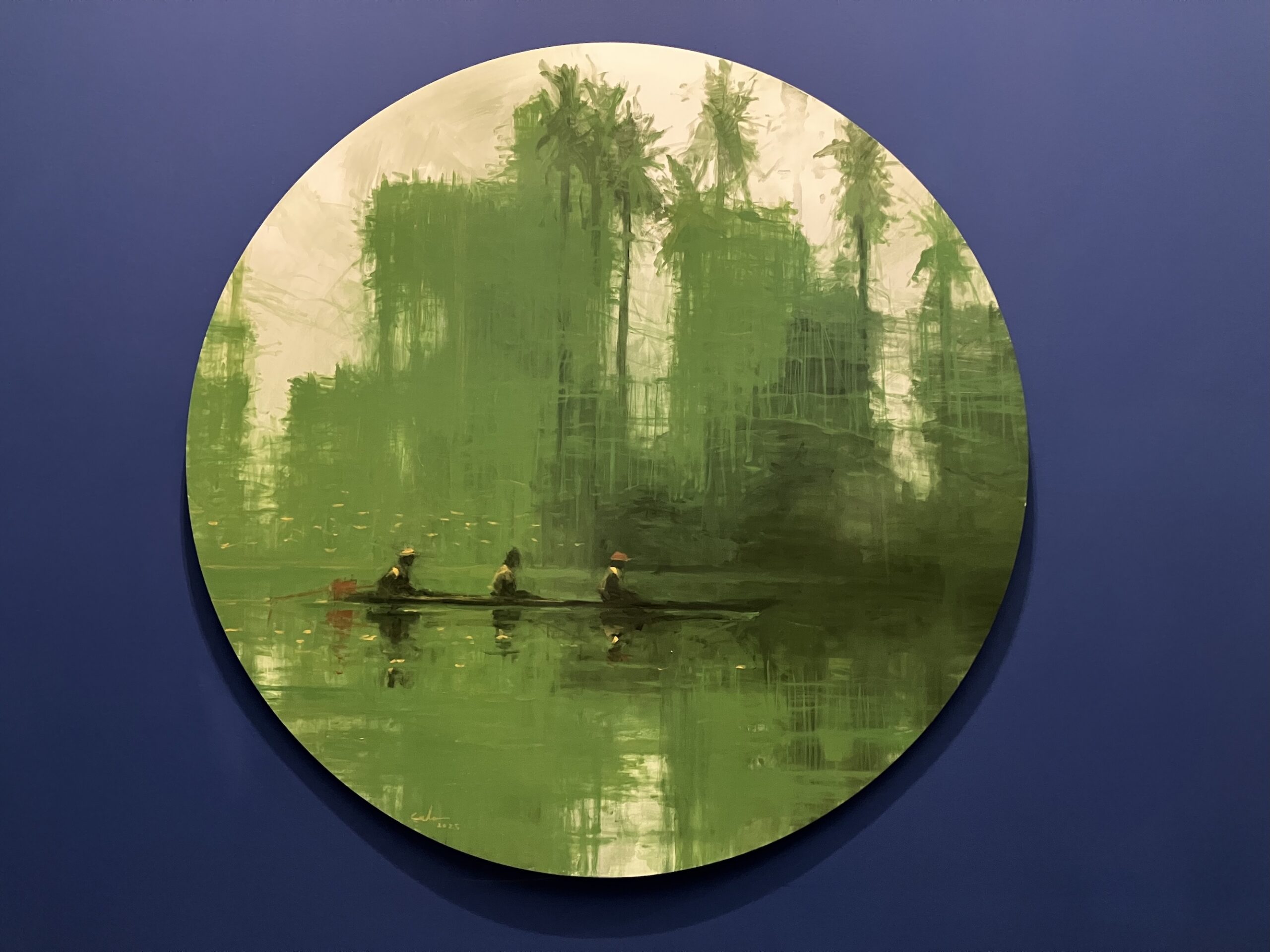 Dans chacun de ses coups de pinceau, l’humidité de l’air devient plus palpable, la sensation de peur ou d’excitation que chacun pourrait ressentir en s’enfonçant dans une forêt si dense qu’elle semble prête à vous engloutir est presque réelle. Sans rien imposer, l’artiste nous confronte à notre propre rapport à la nature, et aux sentiments ambivalents qu’elle peut inspirer, entre fascination et crainte. Comme chacune de ses séries, Jungle est également une ode à la couleur: ici la couleur verte dans toutes ses nuances, de la plus lumineuse à la plus sombre.