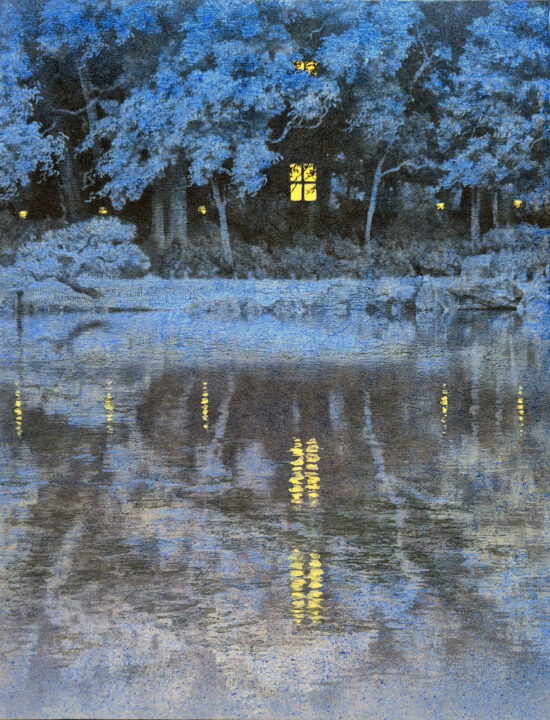 | Description | Encre de Chine, pigments japonais et feuille d'argent sur carton japonais |