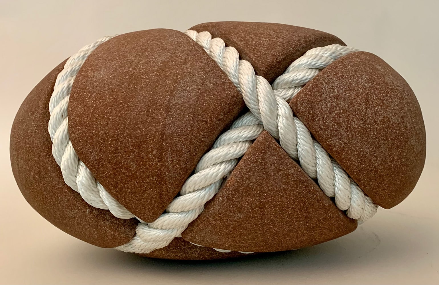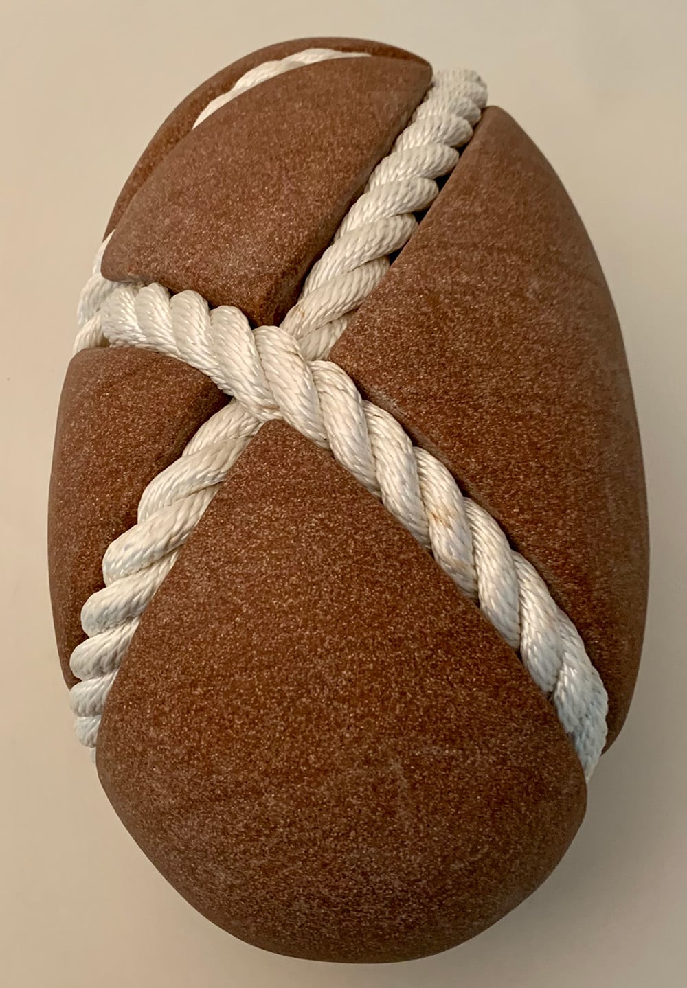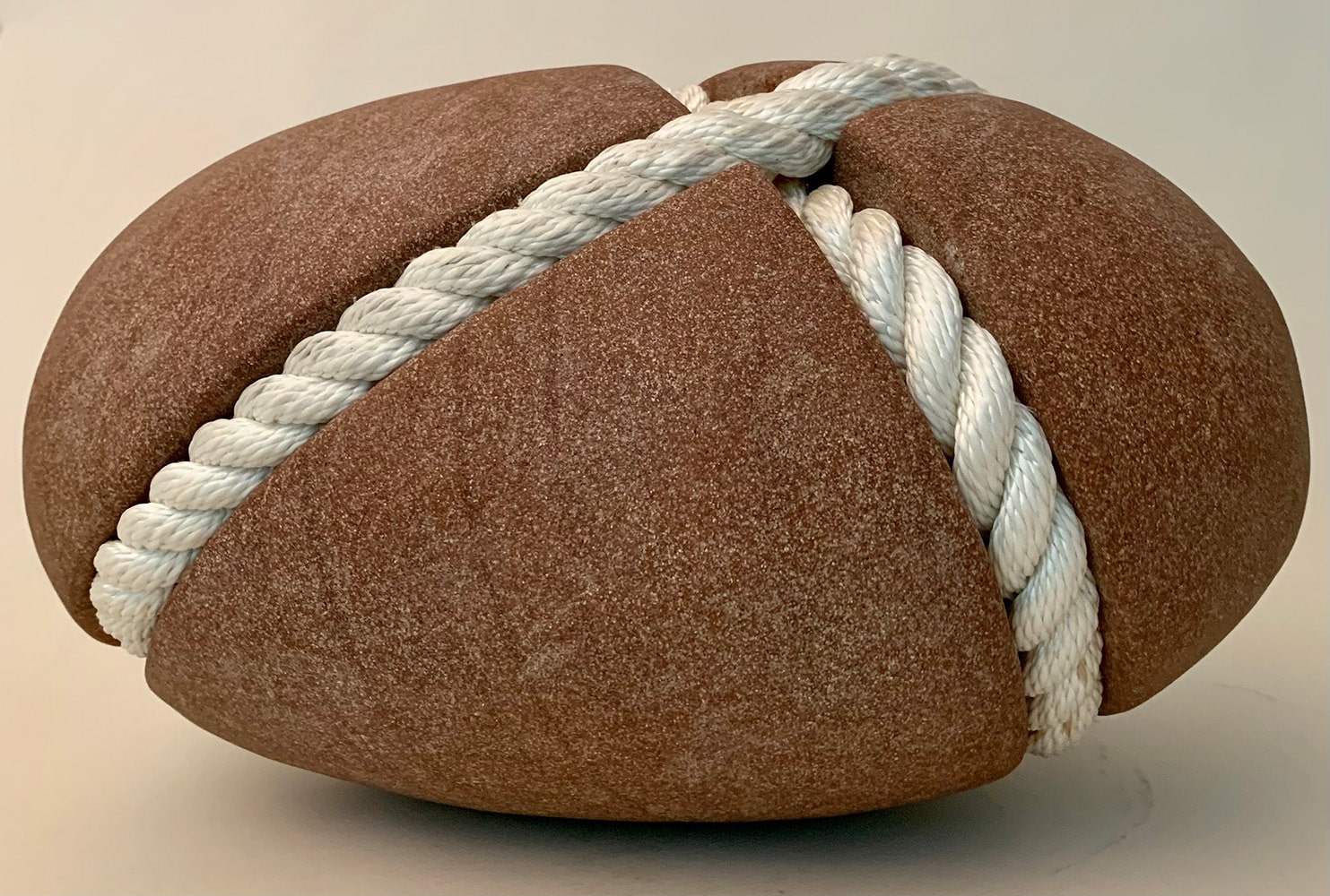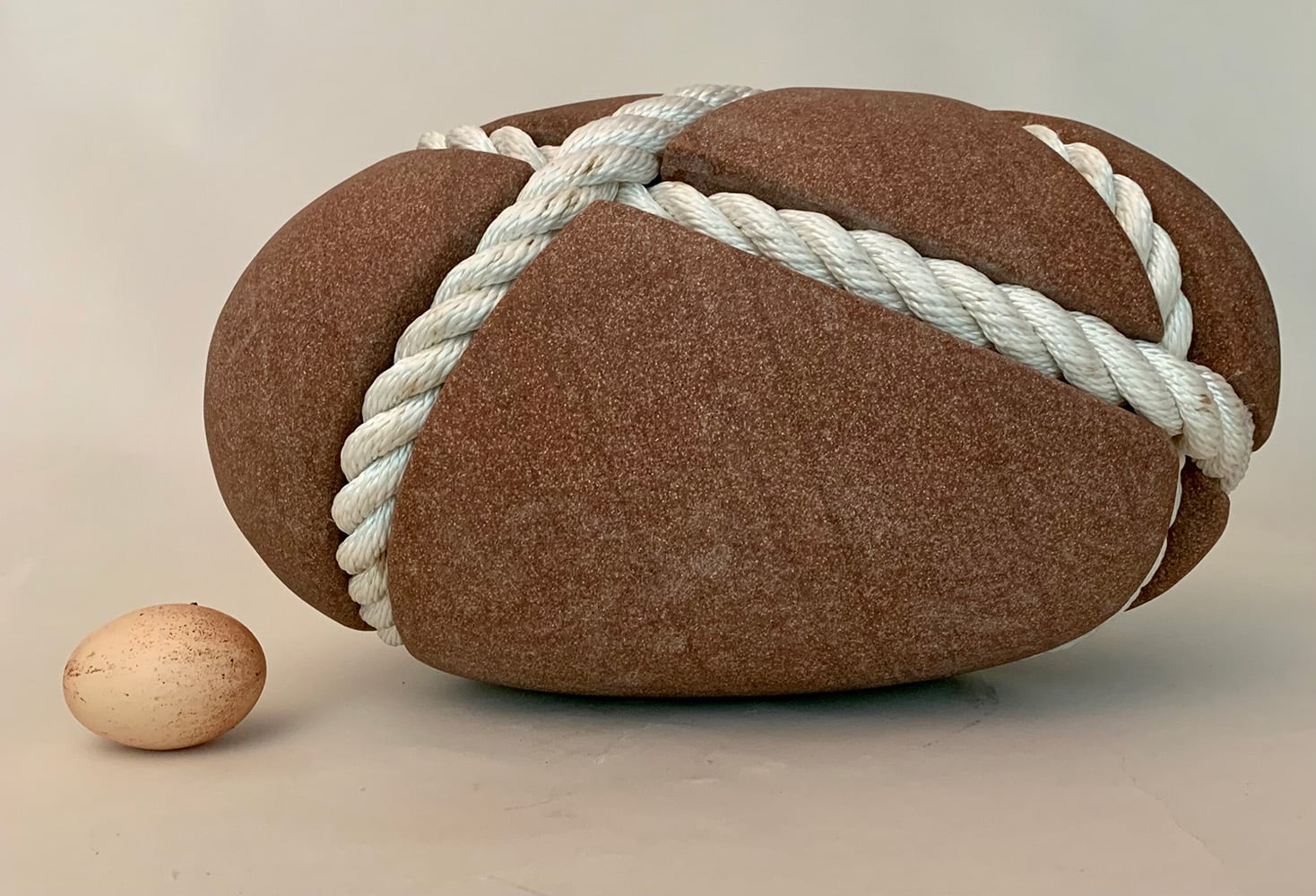Hello again est une sculpture de l’artiste contemporain britannique Peter Brooke-Ball. Cette sculpture contemporaine est une pièce de pierre rouge entourée d’une corde.