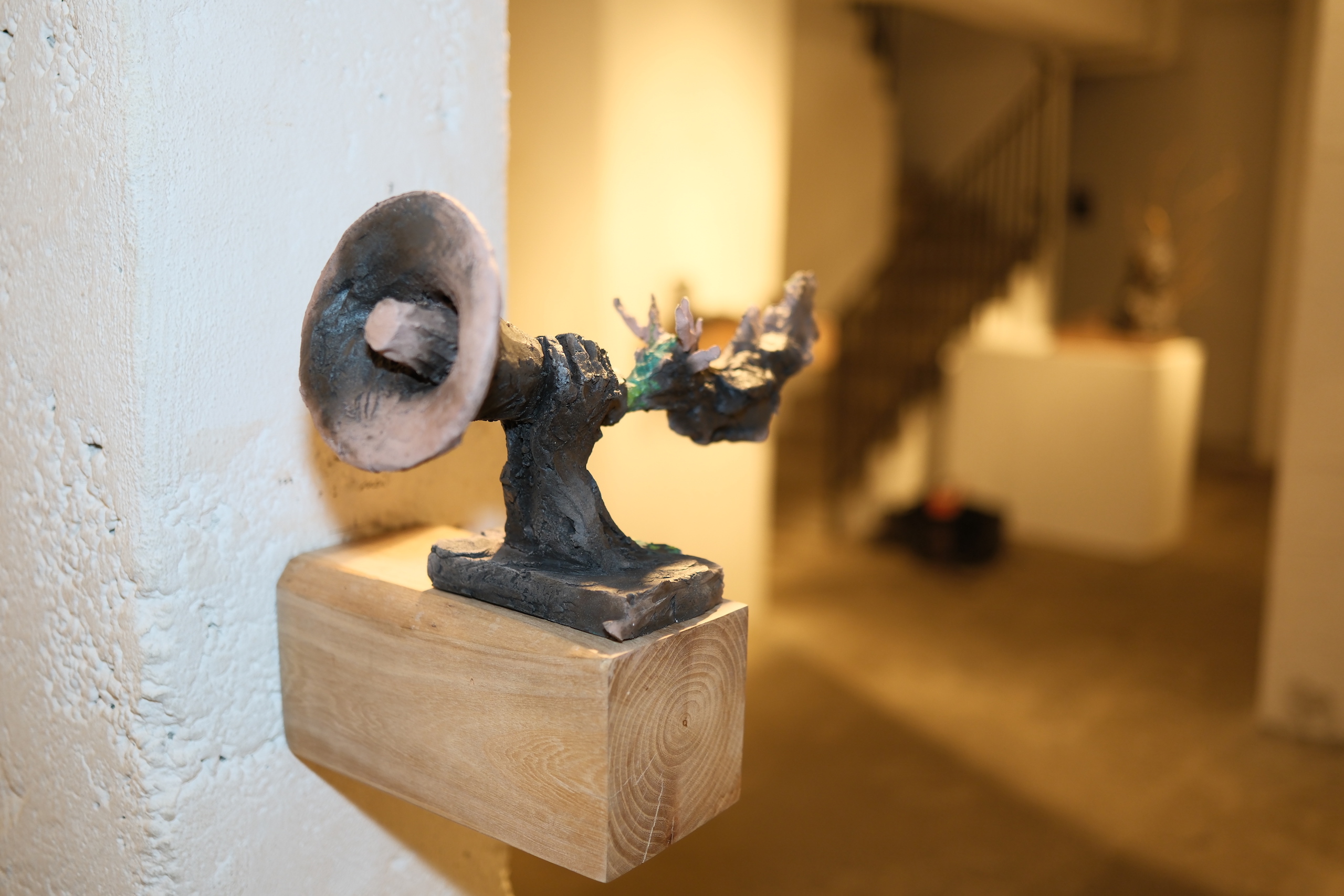 Help est une sculpture en grès enfumé de l’artiste contemporaine Cécile Raynal. Petite mais percutante, cette sculpture est un cri figé, un appel universel à l’aide. Elle illustre la fragilité humaine dans sa plus simple expression.
