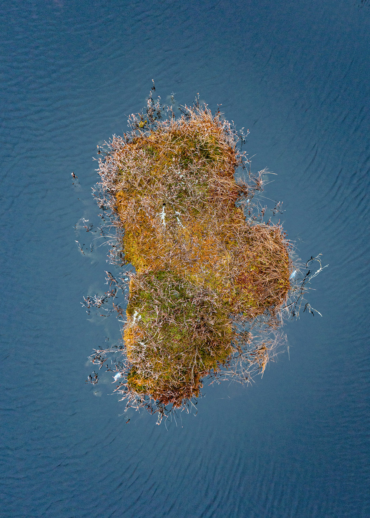 Ces photographies aériennes font partie de la série « The Bog Islands », présentant de petites îles dans les lacs marécageux estoniens. Ces îles, mesurant de 1 à 3 mètres, présentent diverses plantes, de petits arbres et parfois des plumes d’oiseaux. Chaque île a une apparence unique. Les marais d’Estonie sont énigmatiques, vastes et vierges, et offrent des surprises inattendues. Vus d’en haut, ces paysages sont psychédéliques et poétiques. Ces marais sont souvent protégés par des parcs nationaux tels que le parc national de Lahemaa. Les anciennes zones d’extraction de la tourbe sont reconverties en marais, mais l’extraction de la tourbe à grande échelle en Estonie détruit les tourbières naturelles. Les tourbières sont très importantes pour le stockage du dioxyde de carbone, car elles ont la capacité de stocker six fois plus de CO2 que les forêts.
