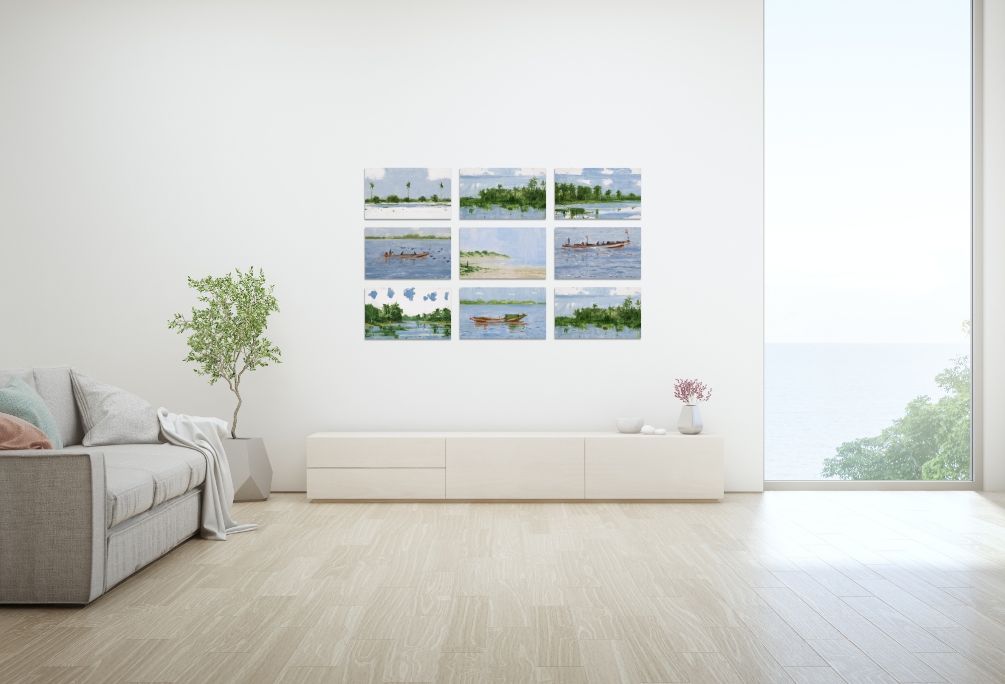 Installation de 9 peintures de paysages africains (série Casamance) est un ensemble de neuf œuvres de l’artiste espagnol Calo Carratalá. Dans cette série, l’artiste représente des paysage de cette région historique et naturelle du Sénégal, située au sud du pays et bordant le fleuve Casamance.