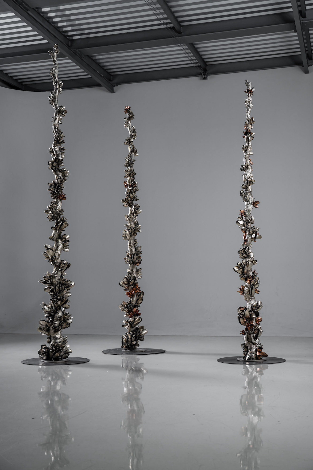Description: Sculpture en aluminium nickelé et bronze