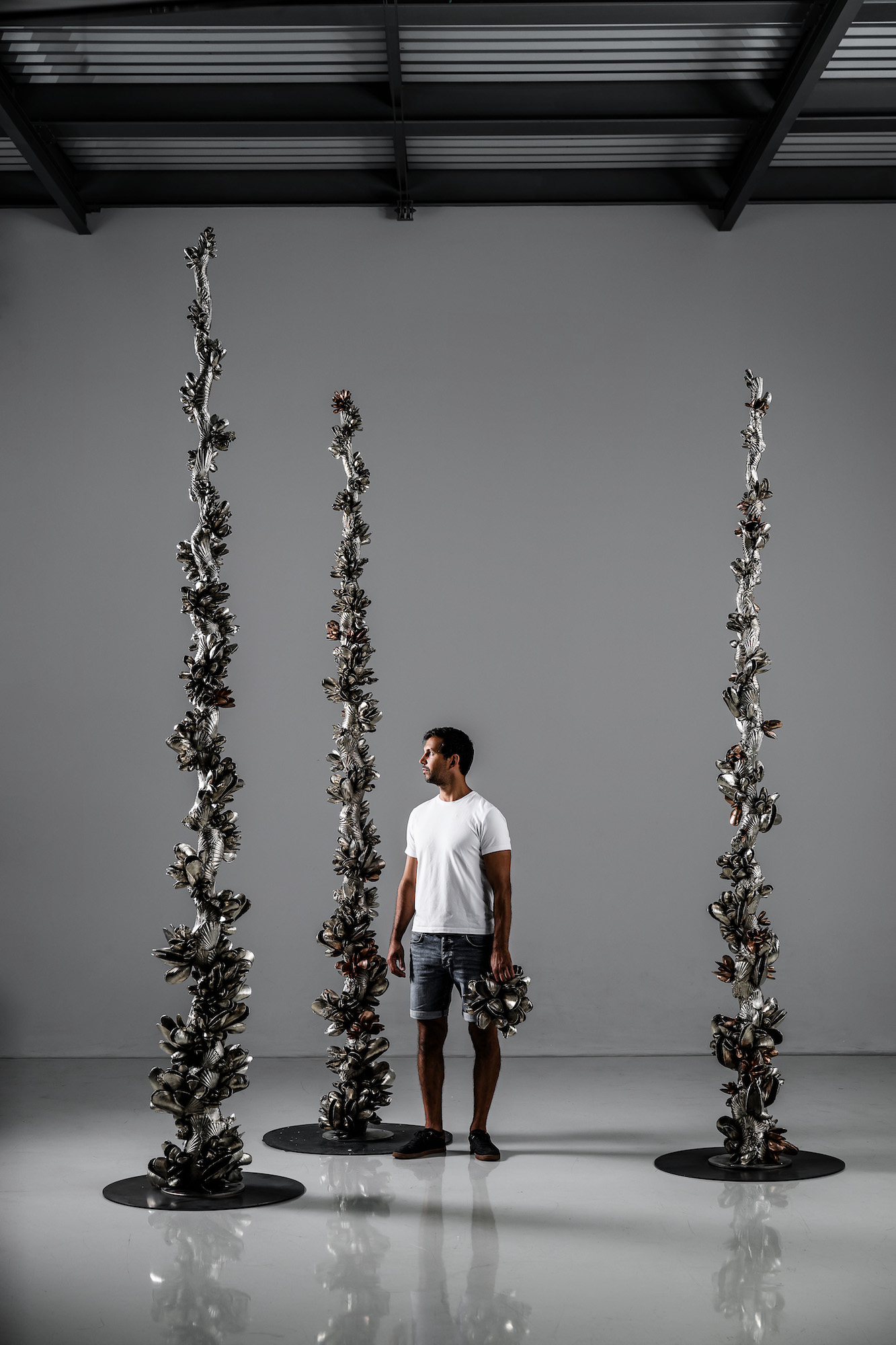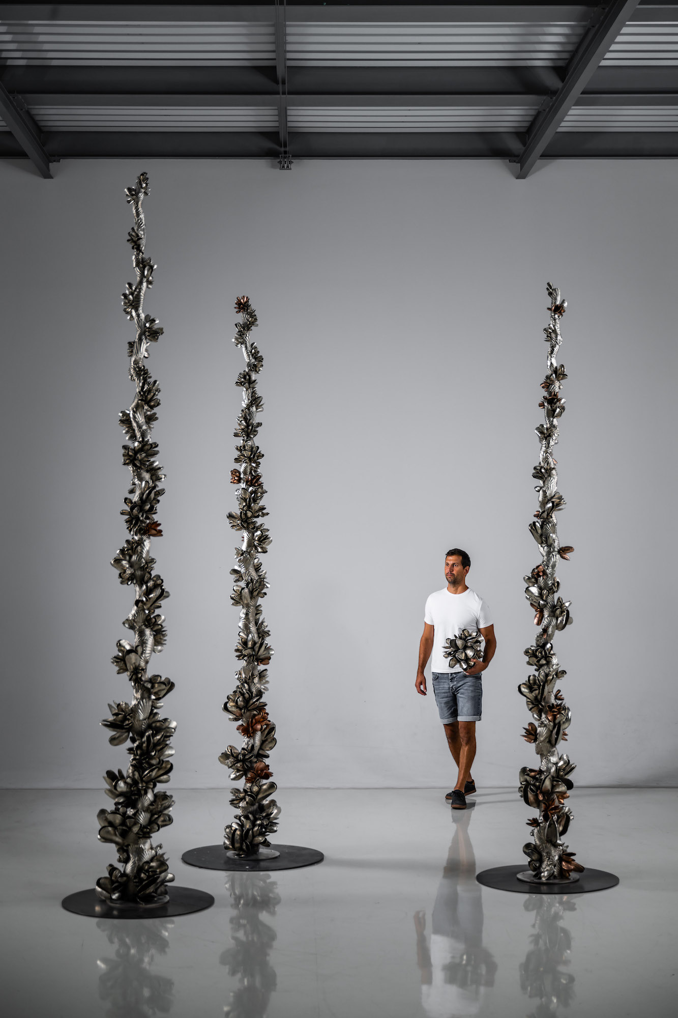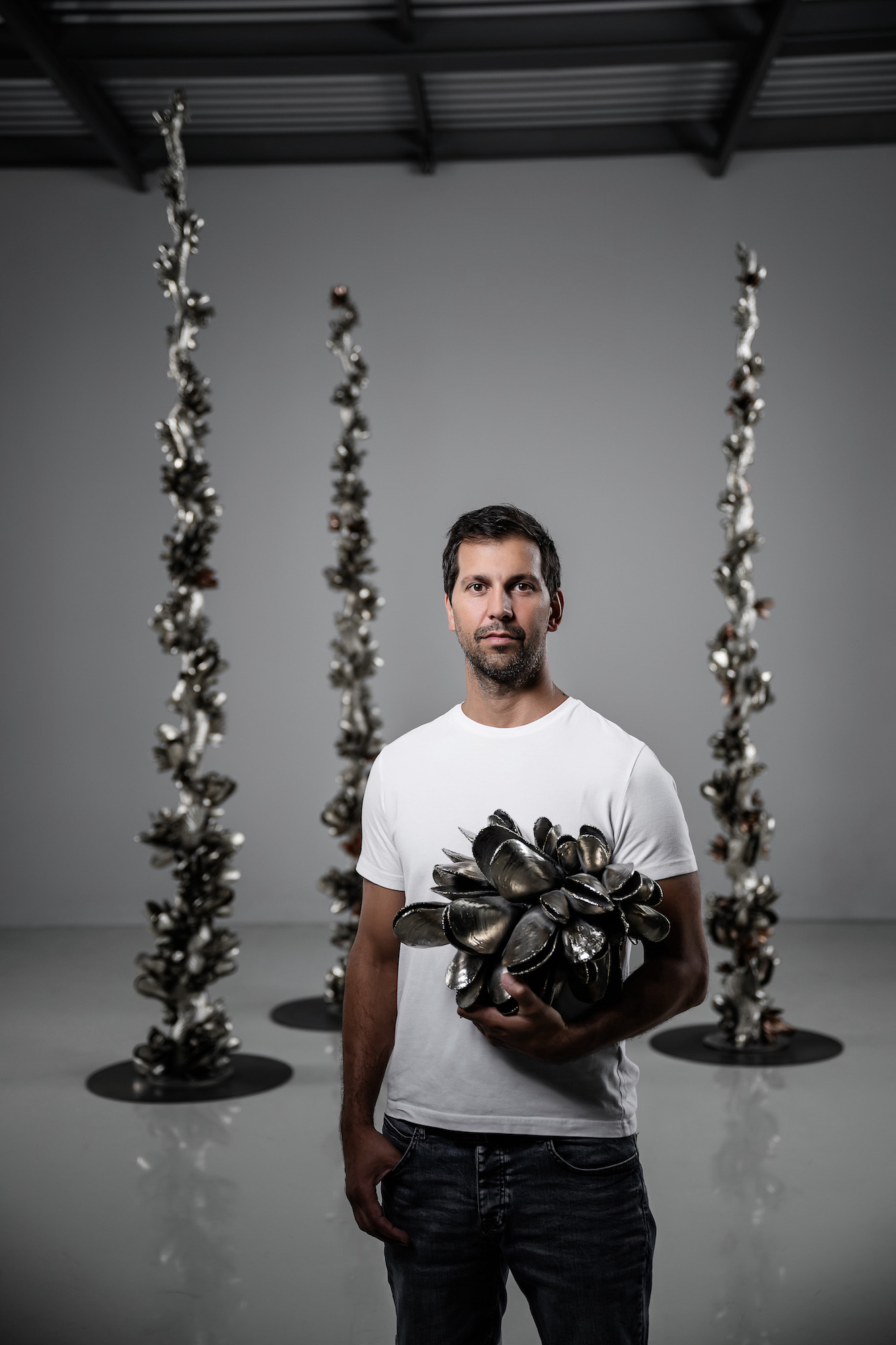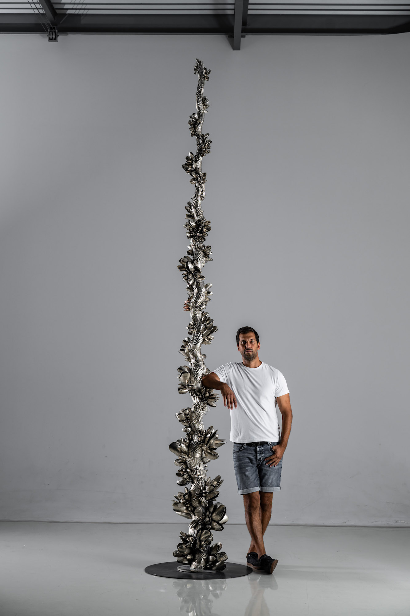 Les œuvres du sculpteur tchèque Ondřej Oliva sont inspirées par les éléments de la nature et par des sujets communs qui nous entourent dans la vie quotidienne, notamment certains aliments que l’artiste revisite afin de créer des sculptures originales et imprégnées de multiples allusions et références. Le choix du matériel est très important : Ondřej choisit le bronze ou l’aluminium pour inscrire ses œuvres dans une temporalité longue. L’aluminium, utilisé pour cette sculpture, est particulièrement apprécié par l’artiste puisqu’il lui permet d’atteindre une grande précision dans les plus petits détails.